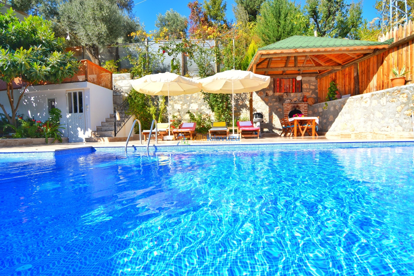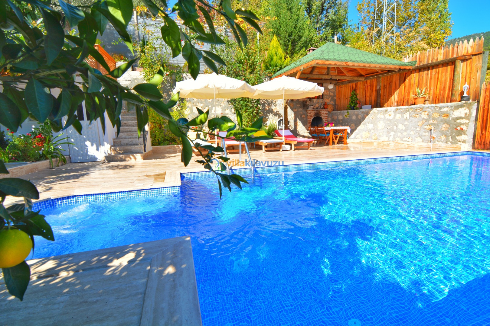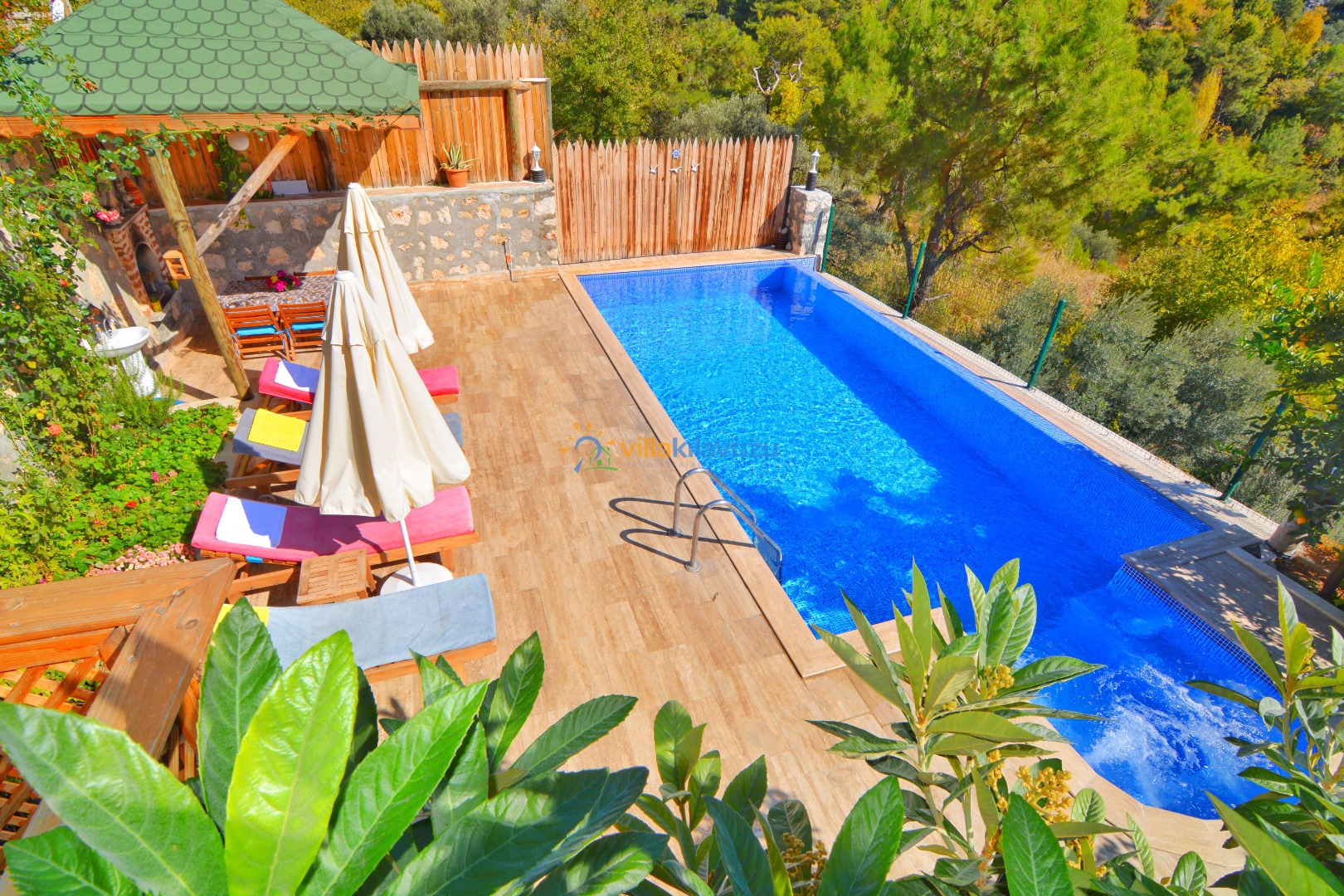 -Villamızın havuz terası korunaklıdır.