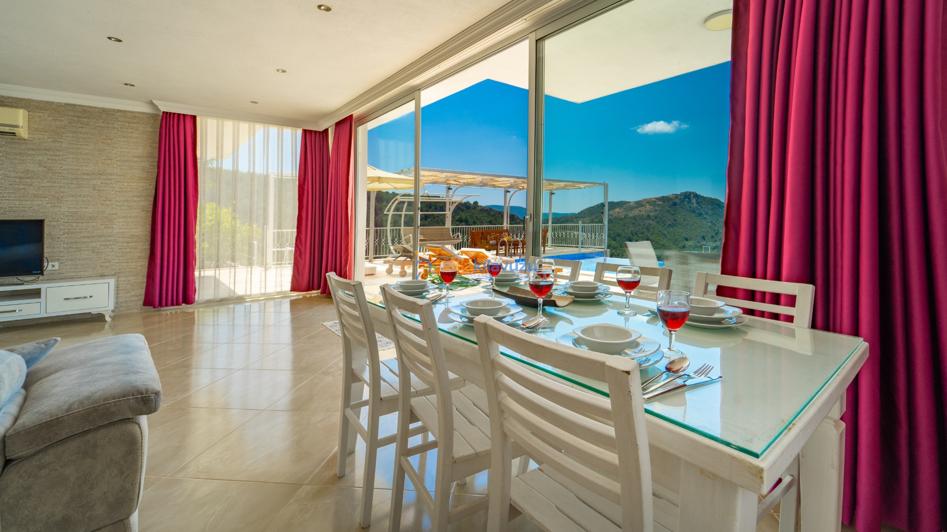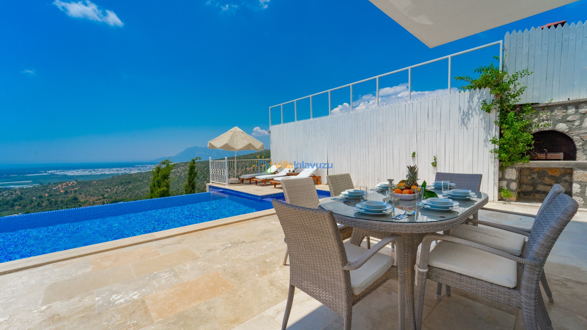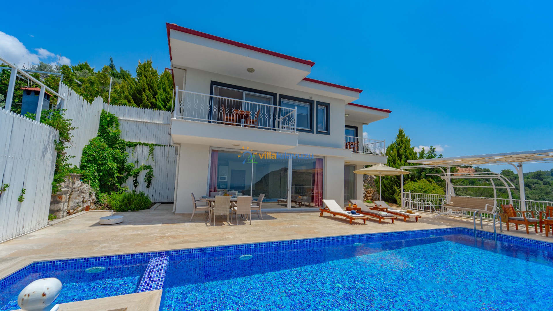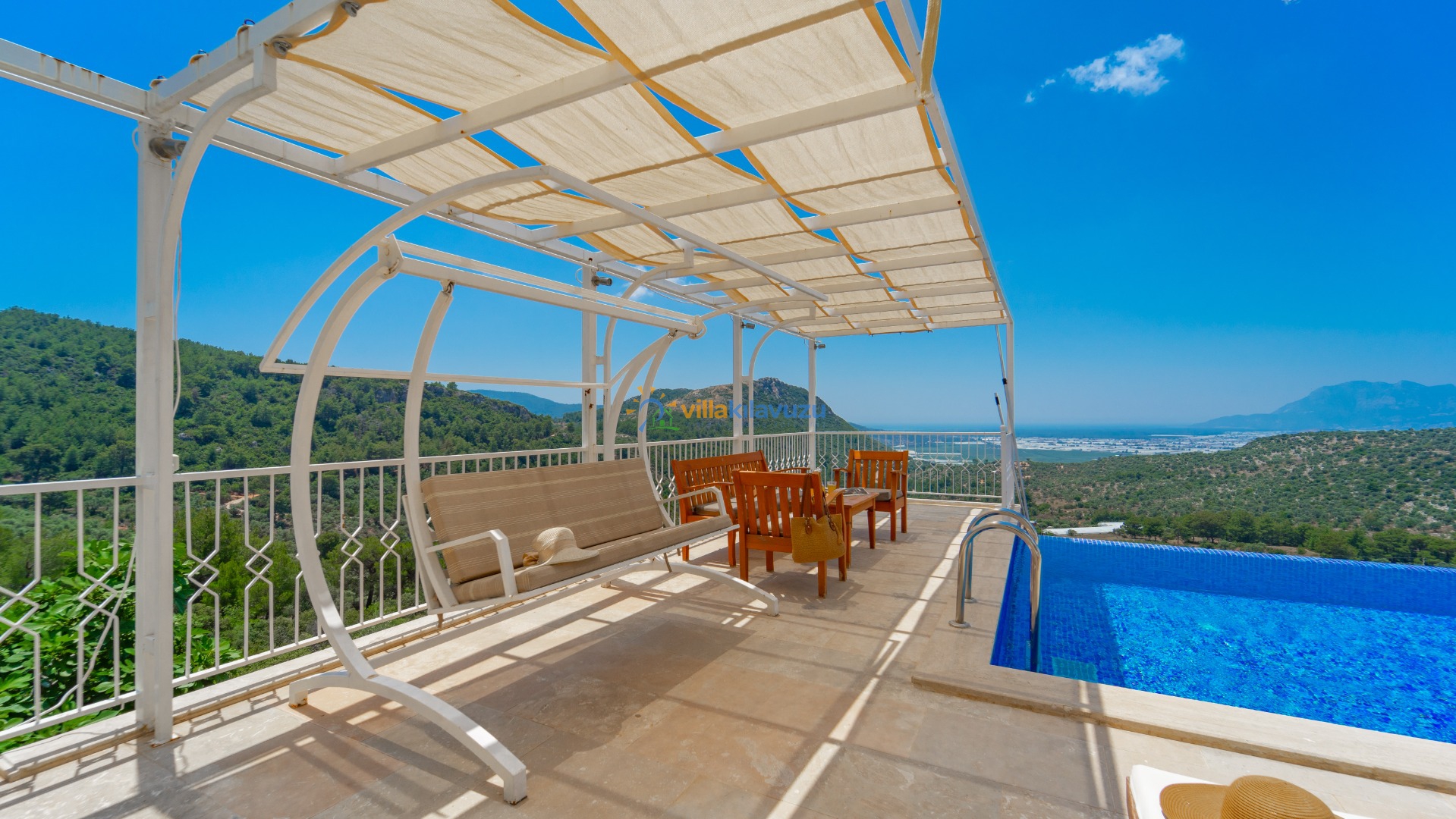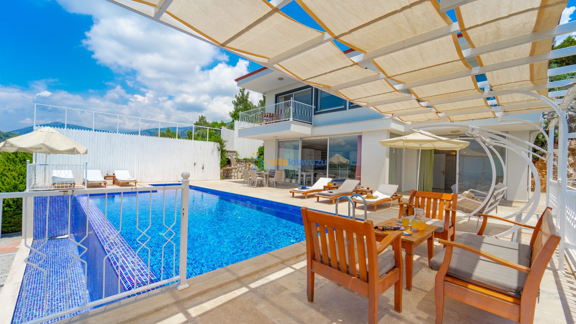 -Villamızın havuz terası korunaklıdır.