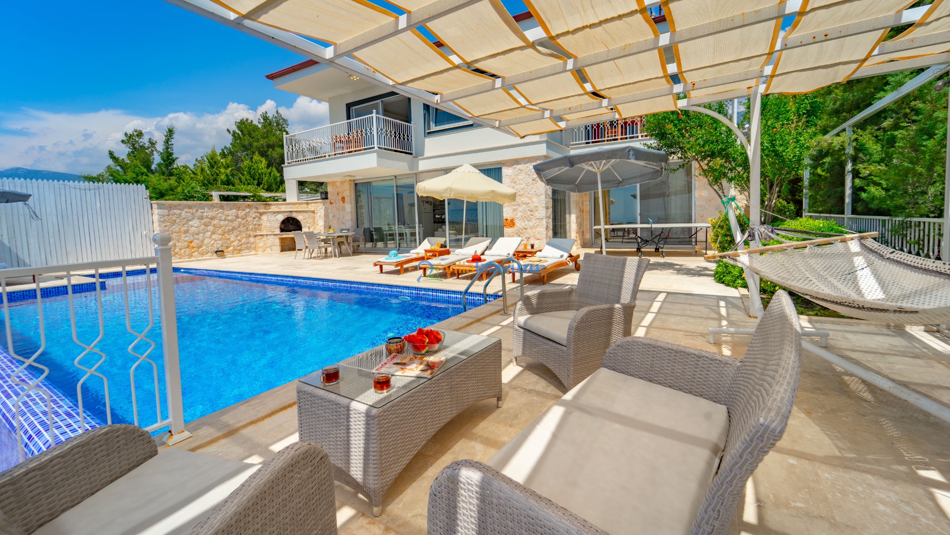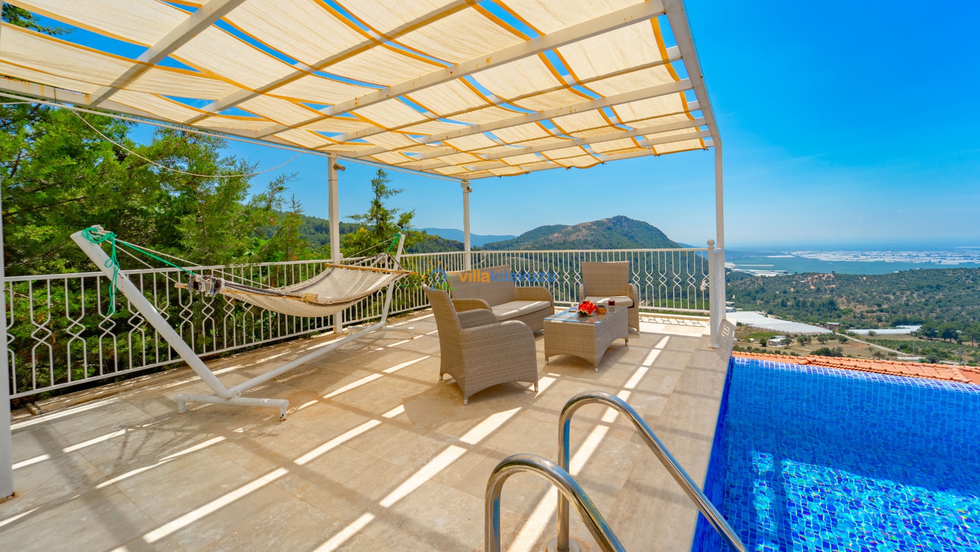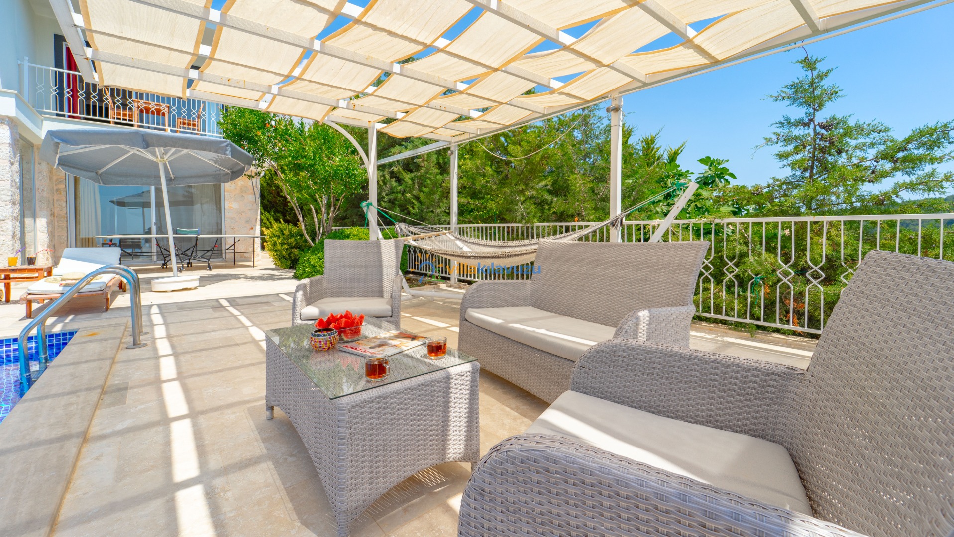 -Villamızın havuz terası korunaklıdır.