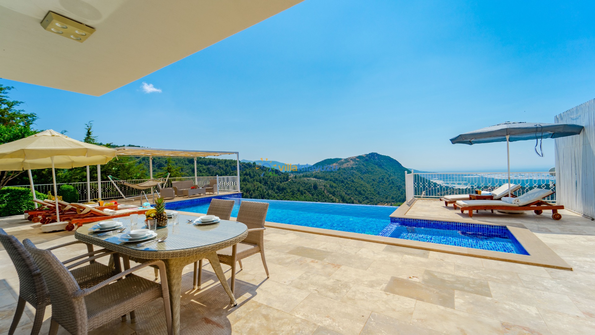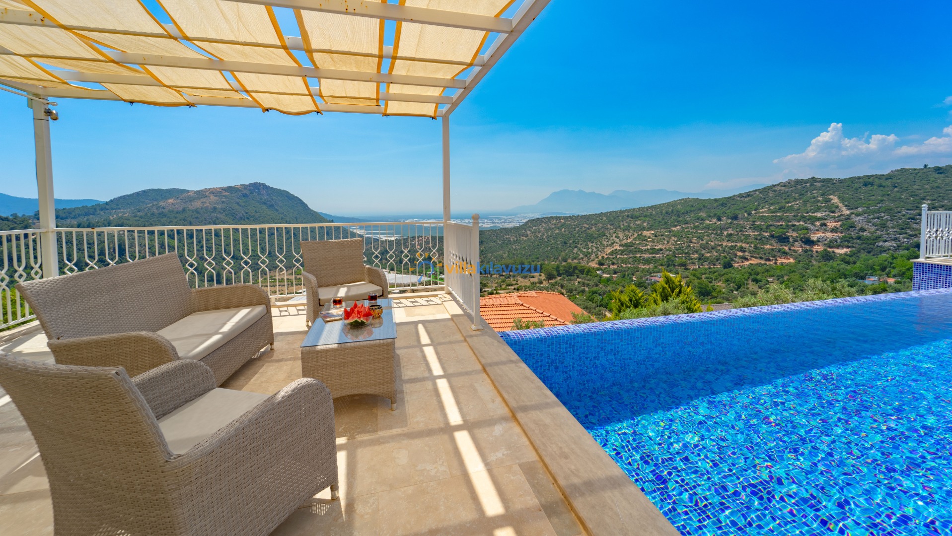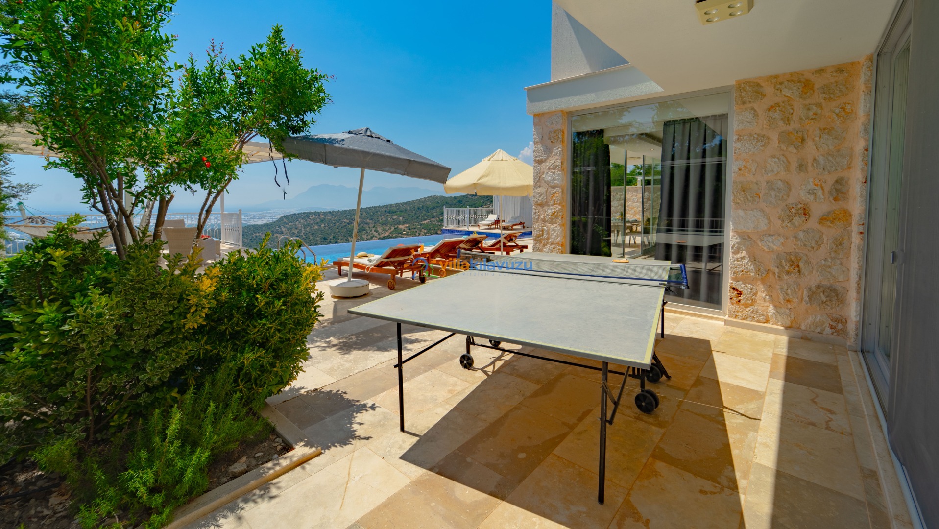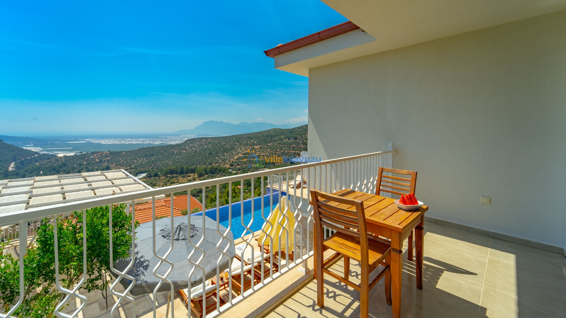 -Villamızın havuz terası korunaklıdır.