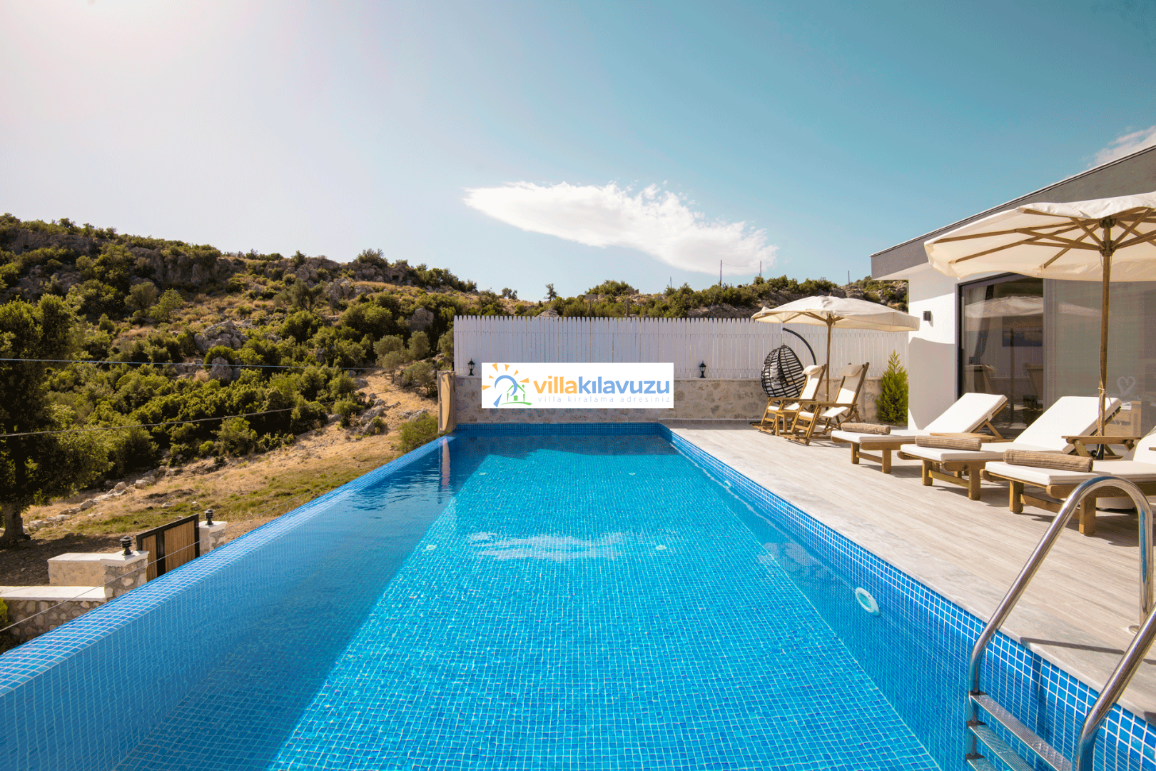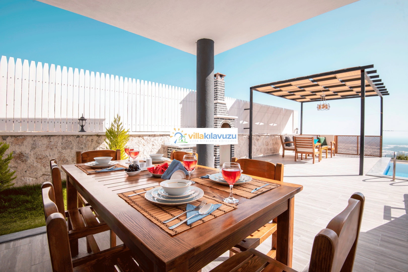-Villamızın havuz terası korunaklıdır.