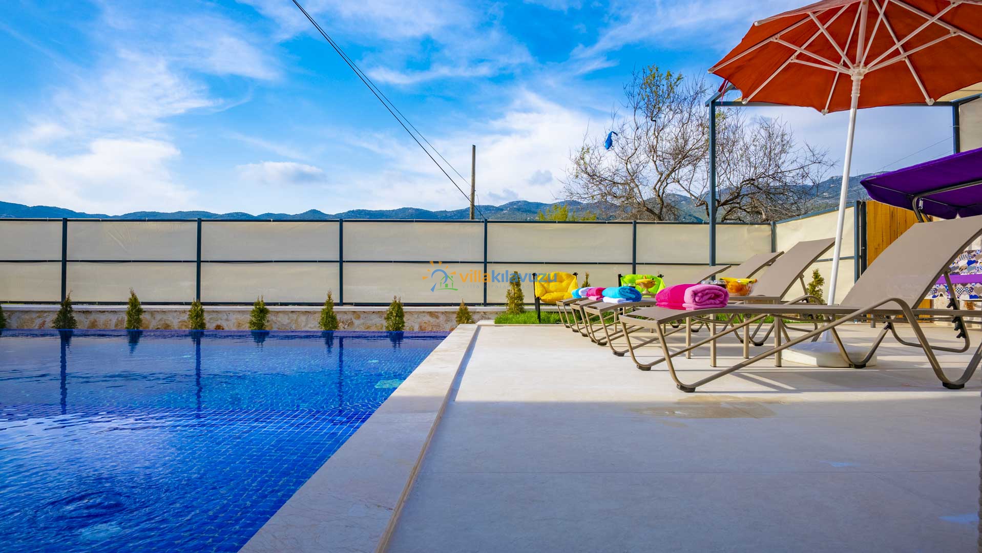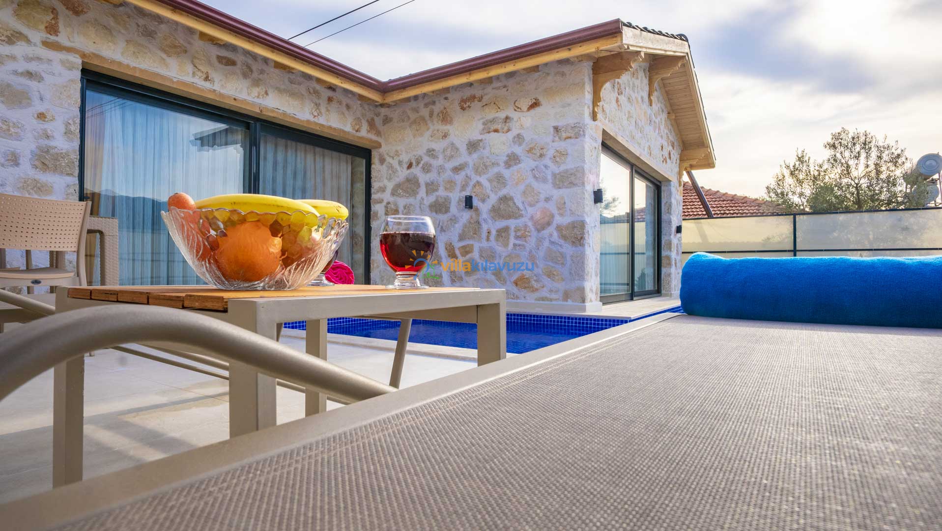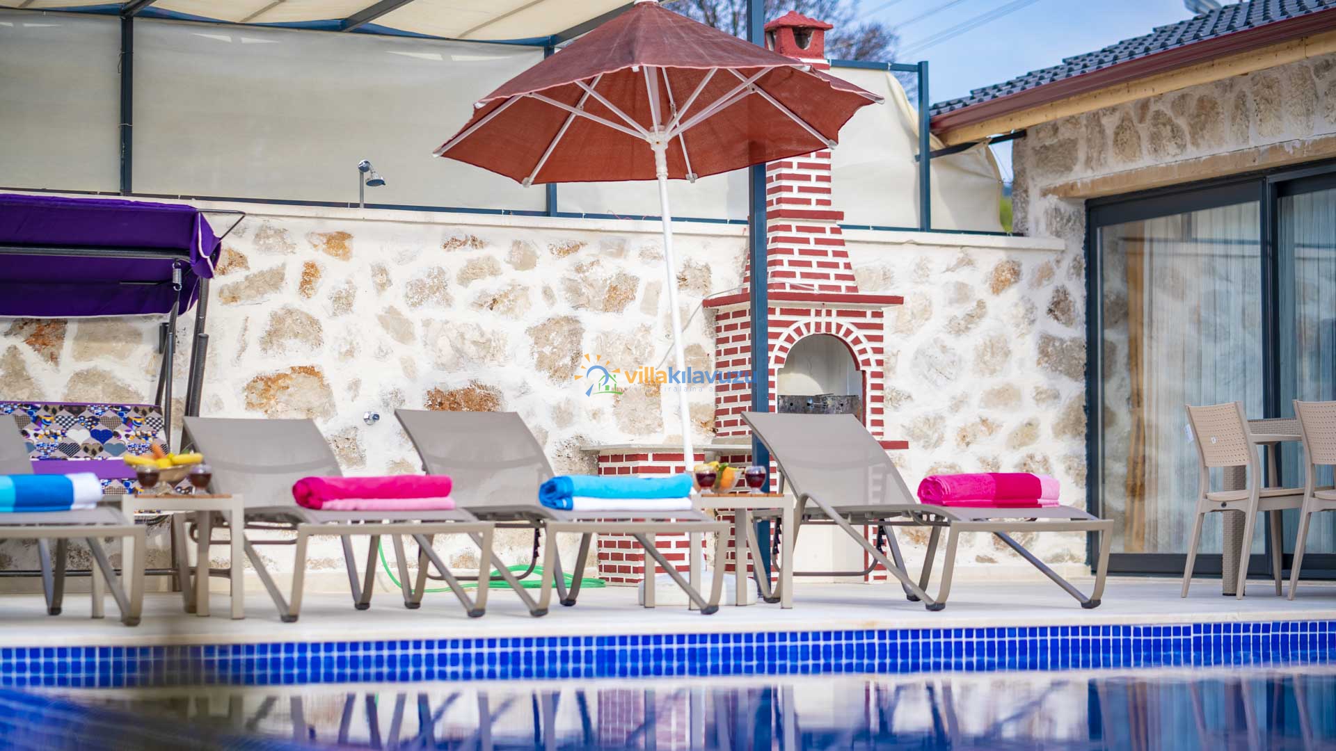 -Villamızın havuz terası korunaklıdır.