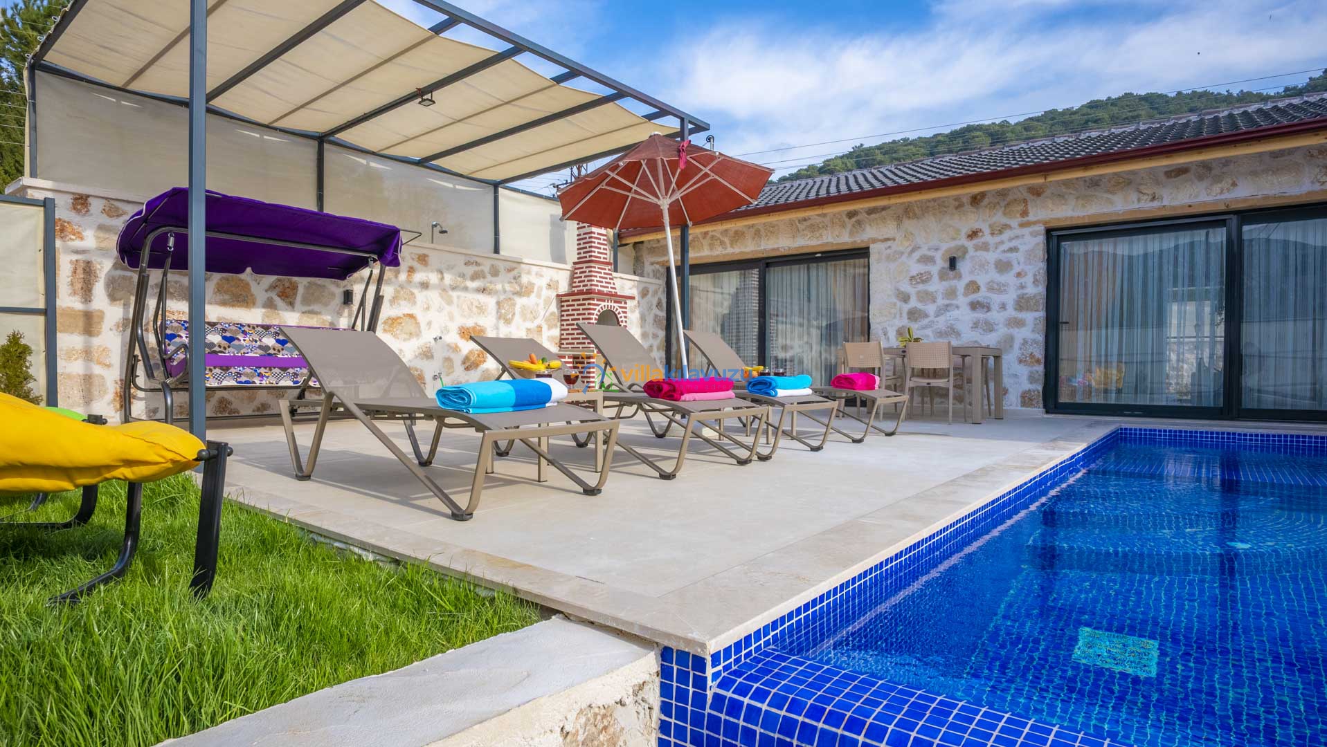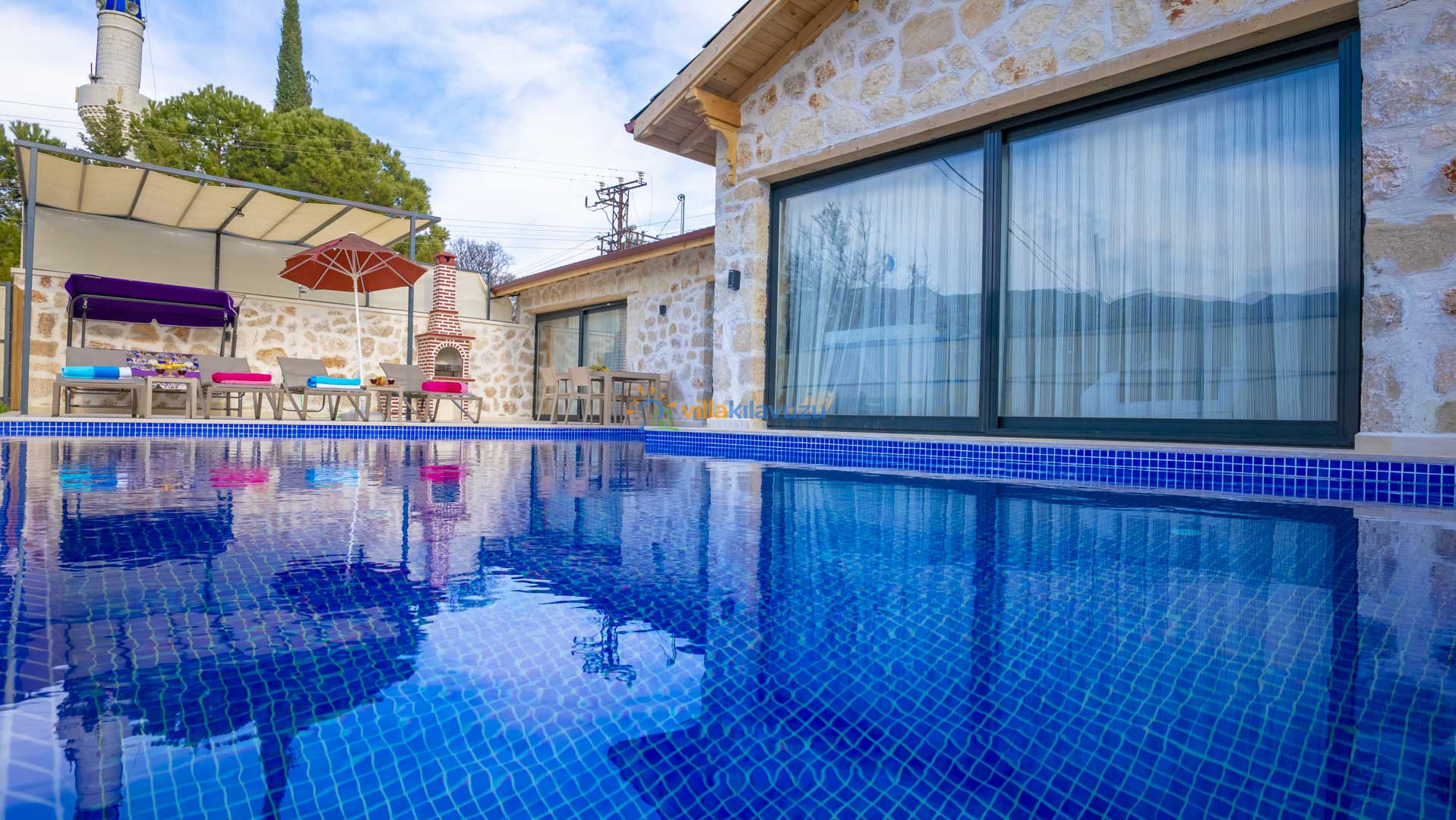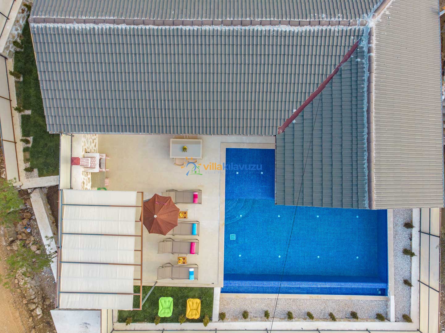 -Villamızın havuz terası korunaklıdır.