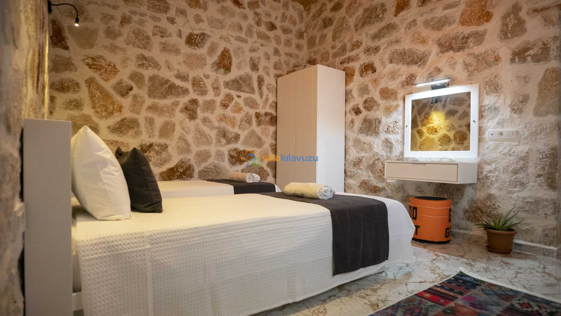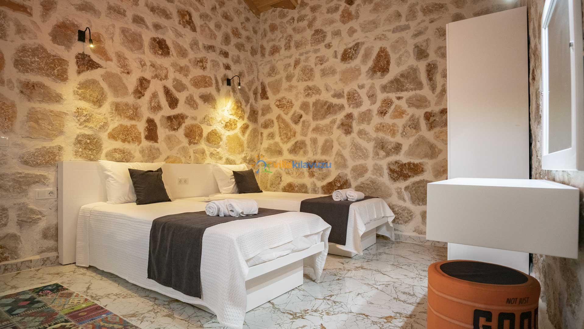 -Villamız 2 yatak odasına sahip olup 4 kişilik konaklama kapasitesine sahiptir.