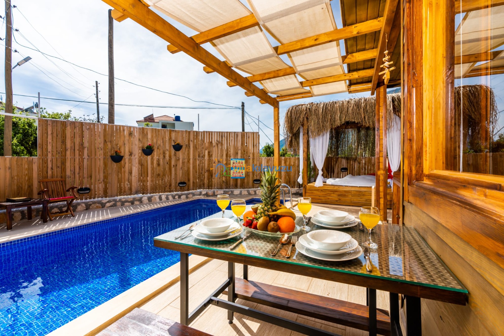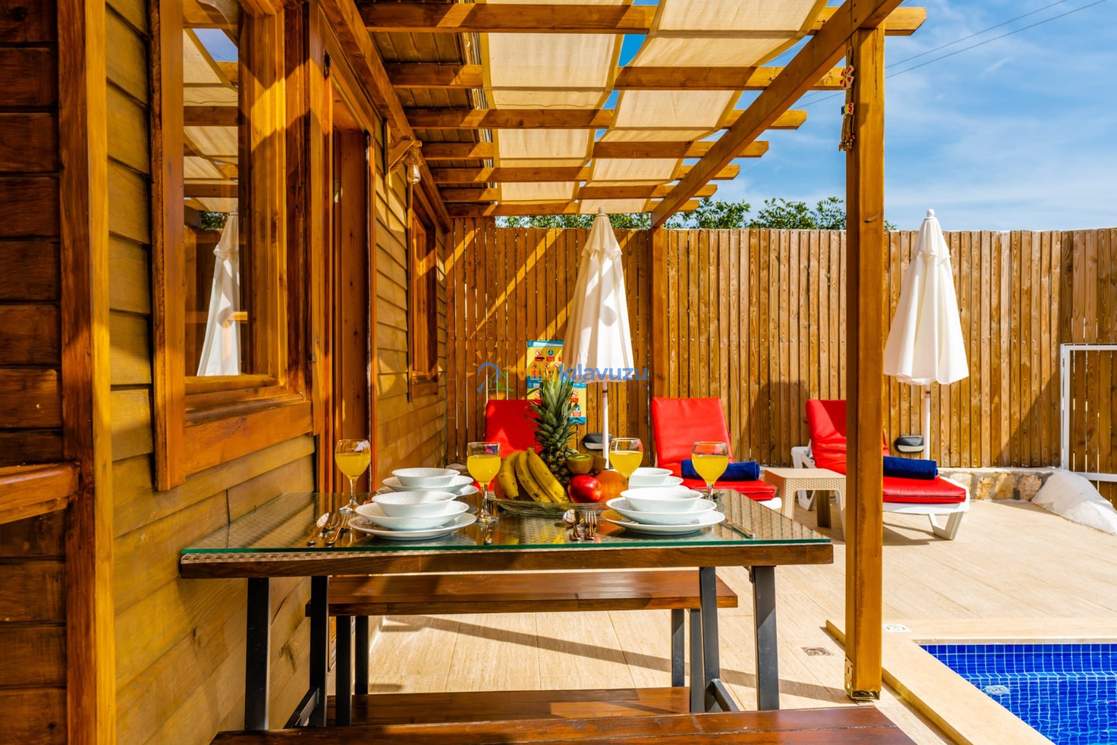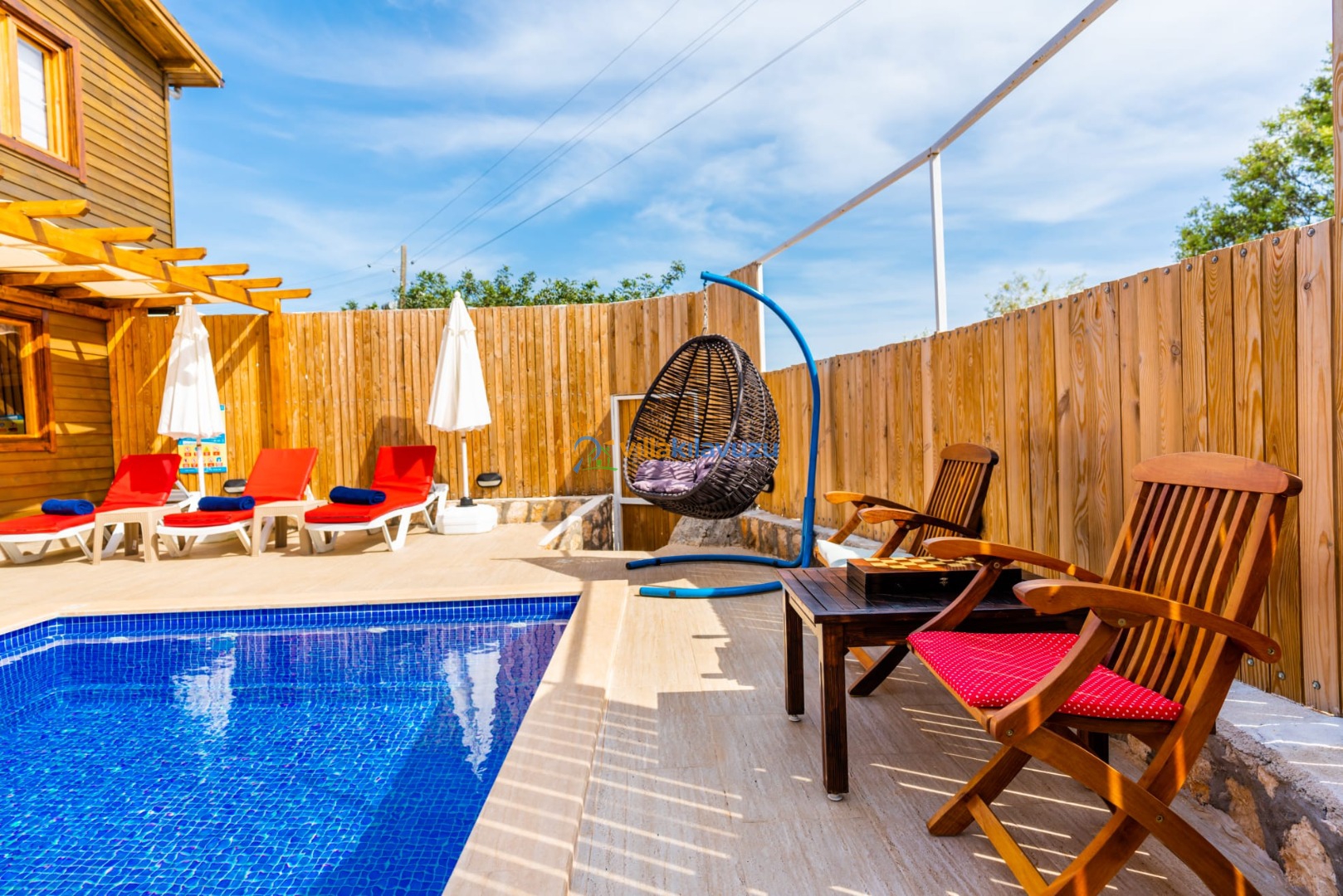 -Villamızın havuz terası korunaklıdır.