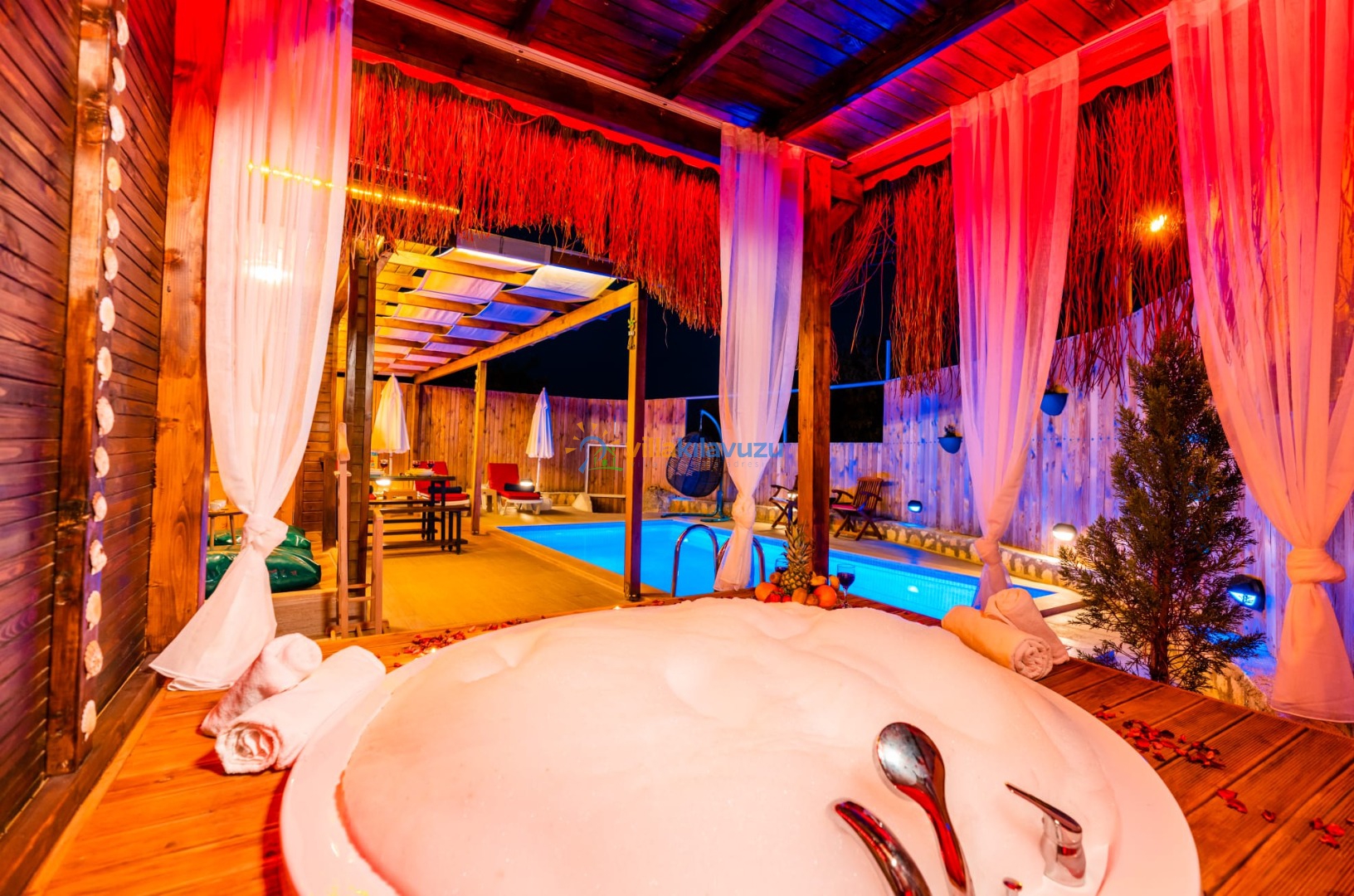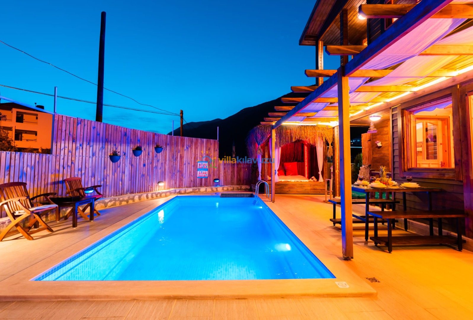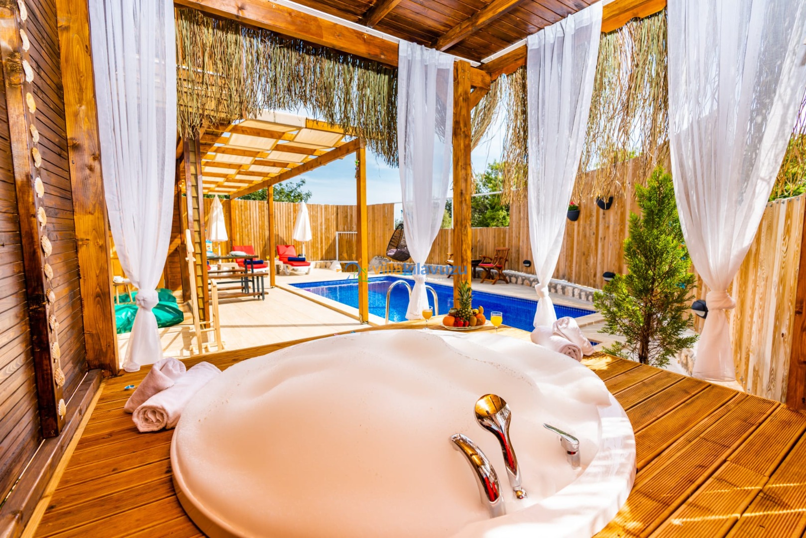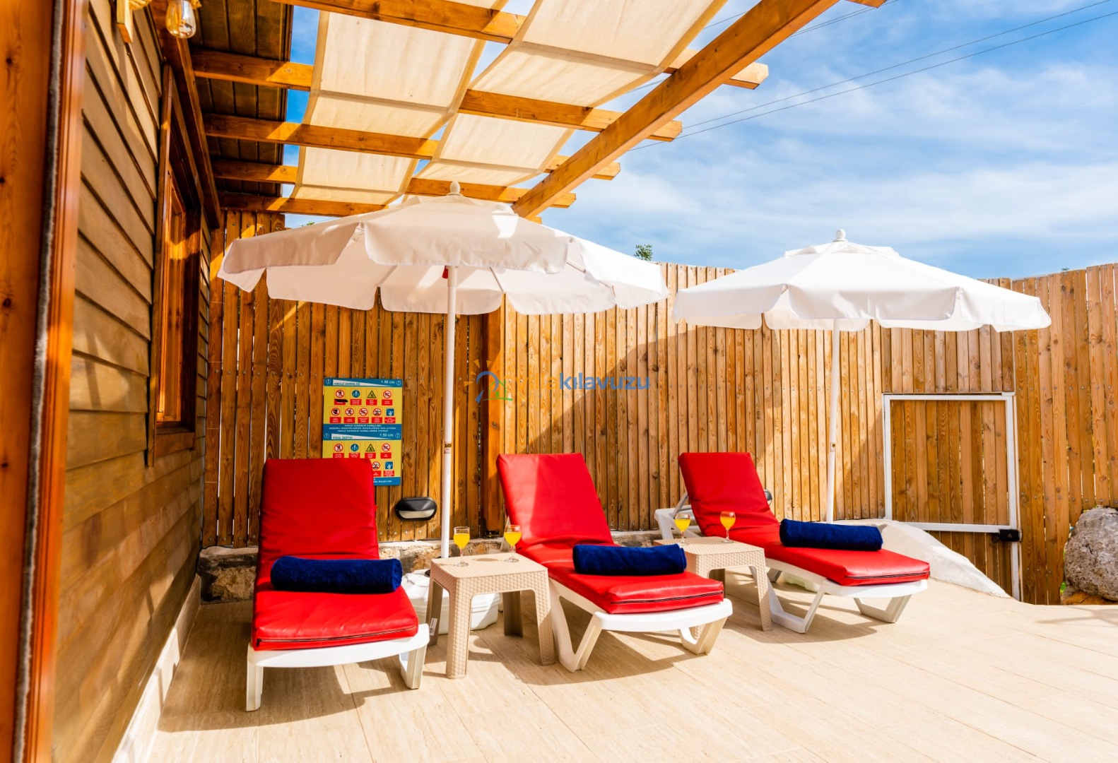 -Villamızın havuz terası korunaklıdır.