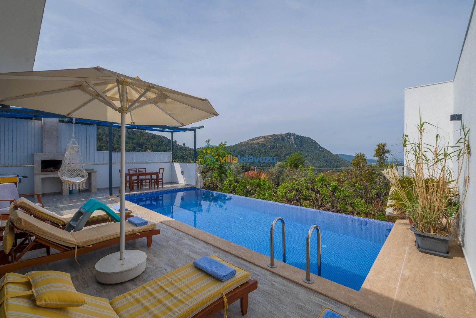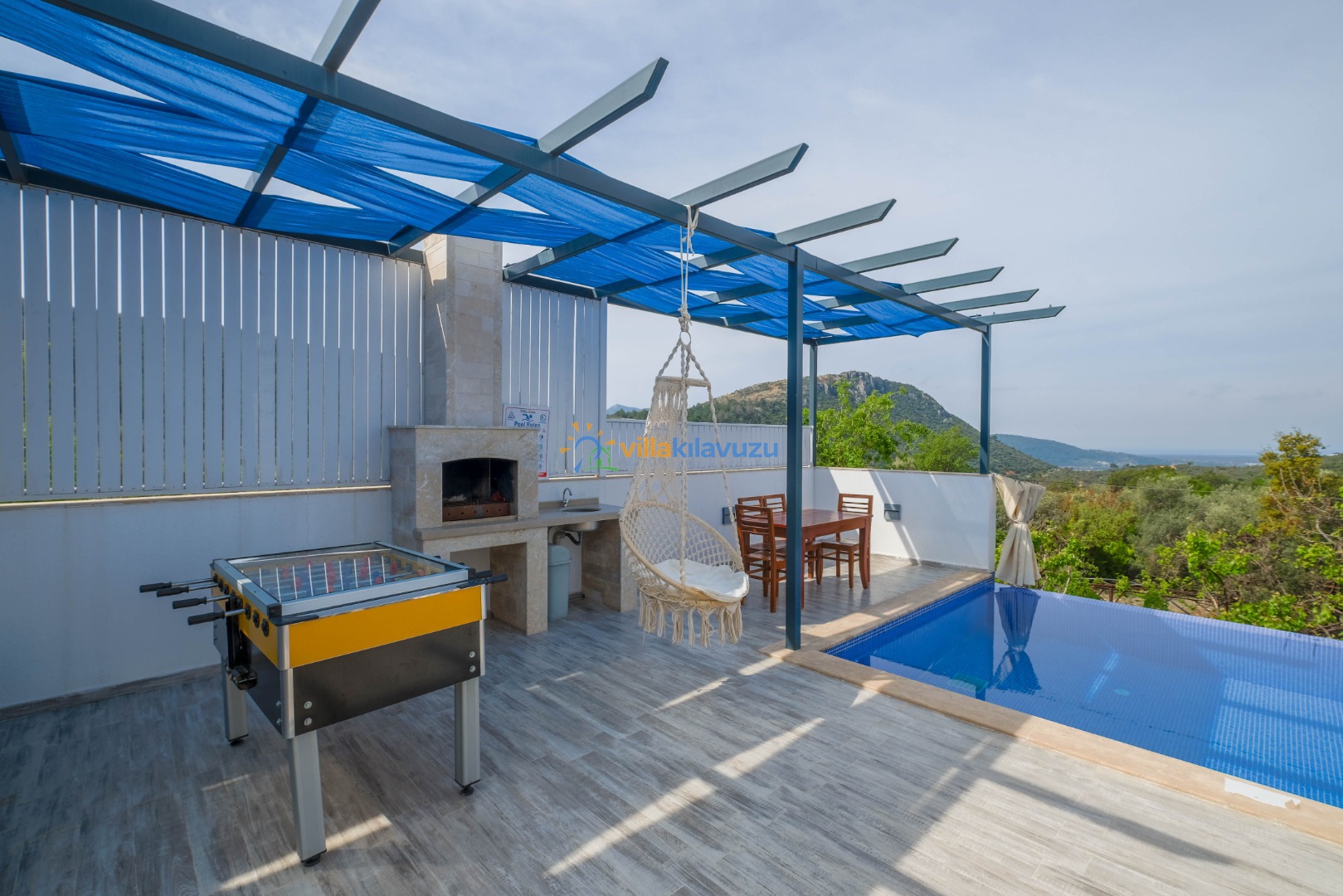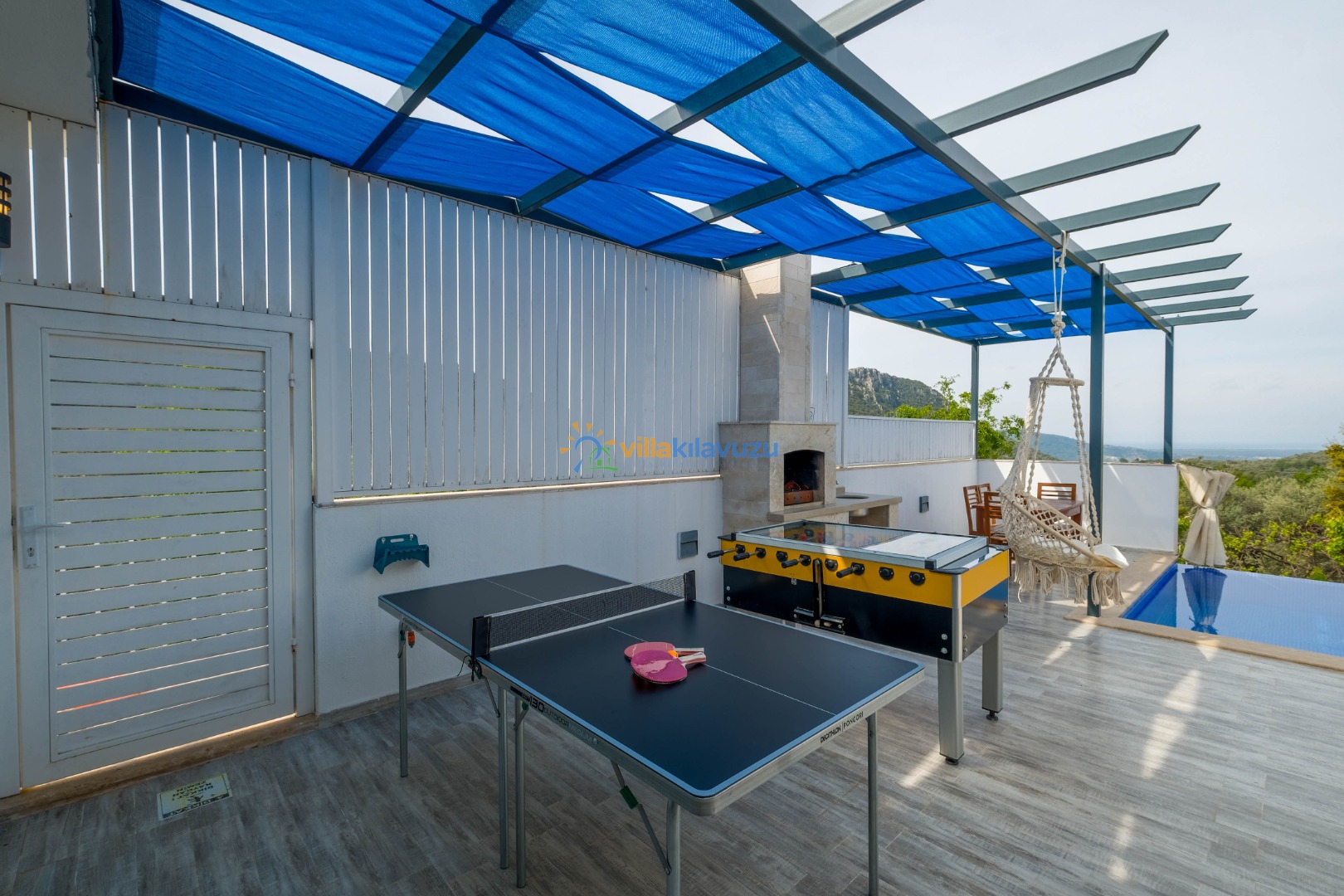 -Villamızın havuz terası korunaklıdır.