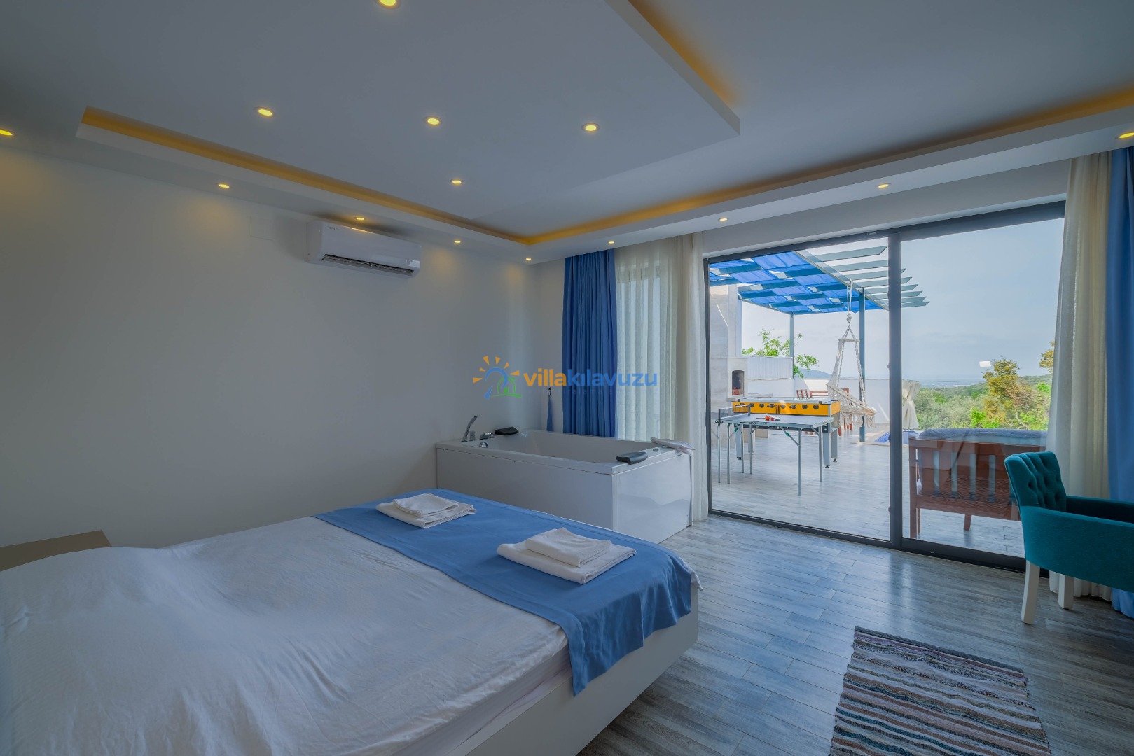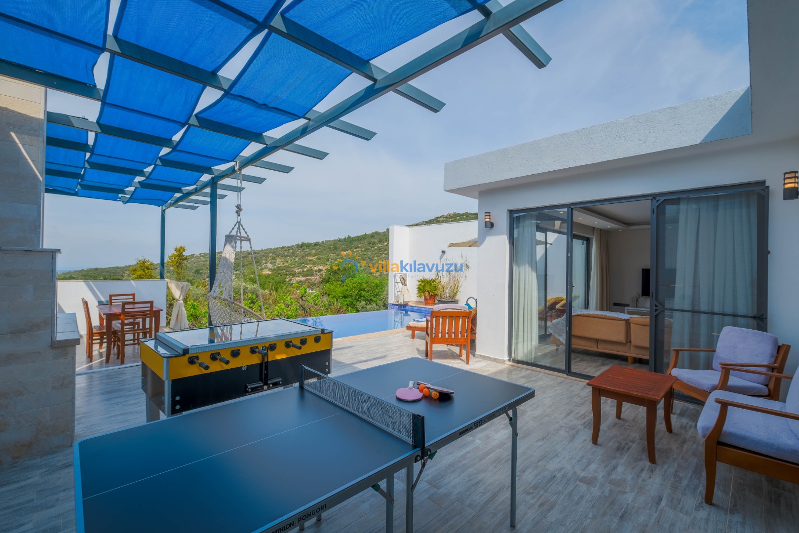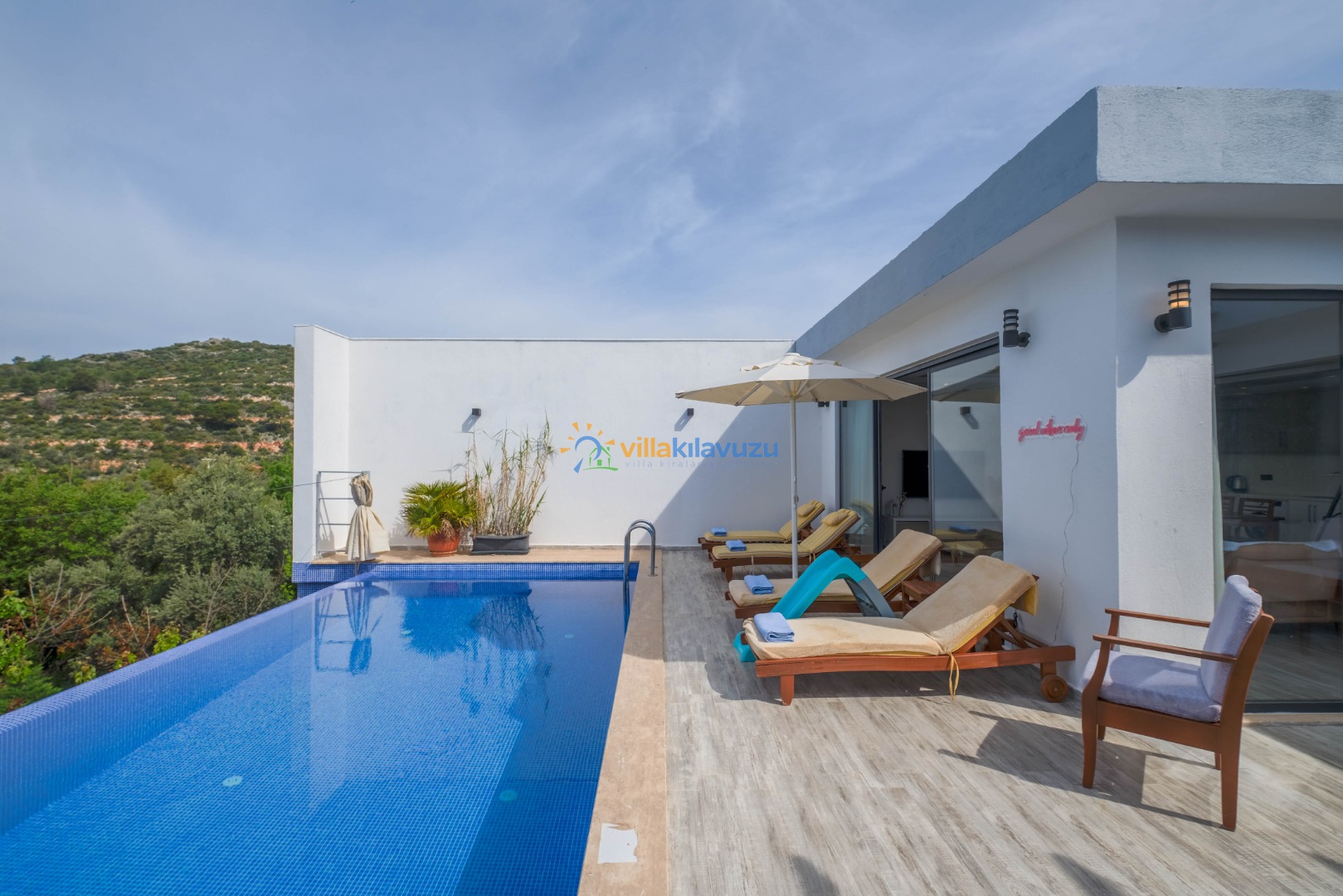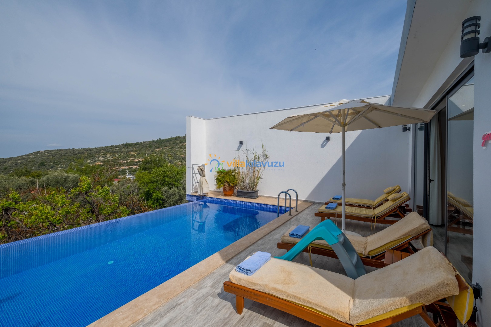 -Villamızın havuz terası korunaklıdır.