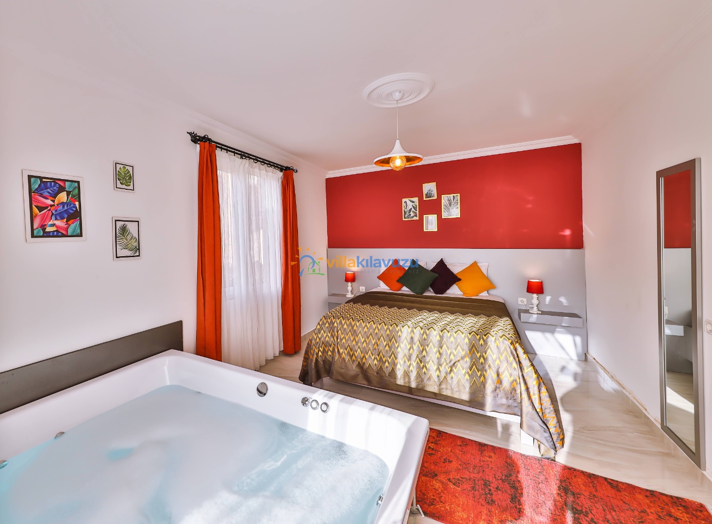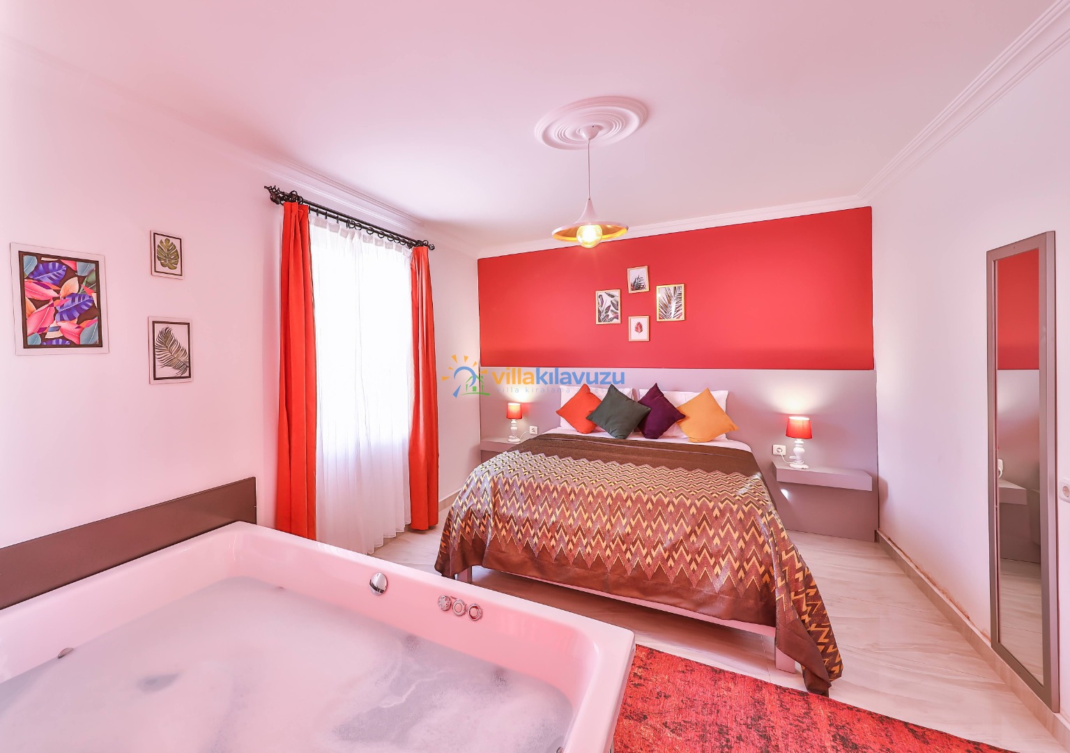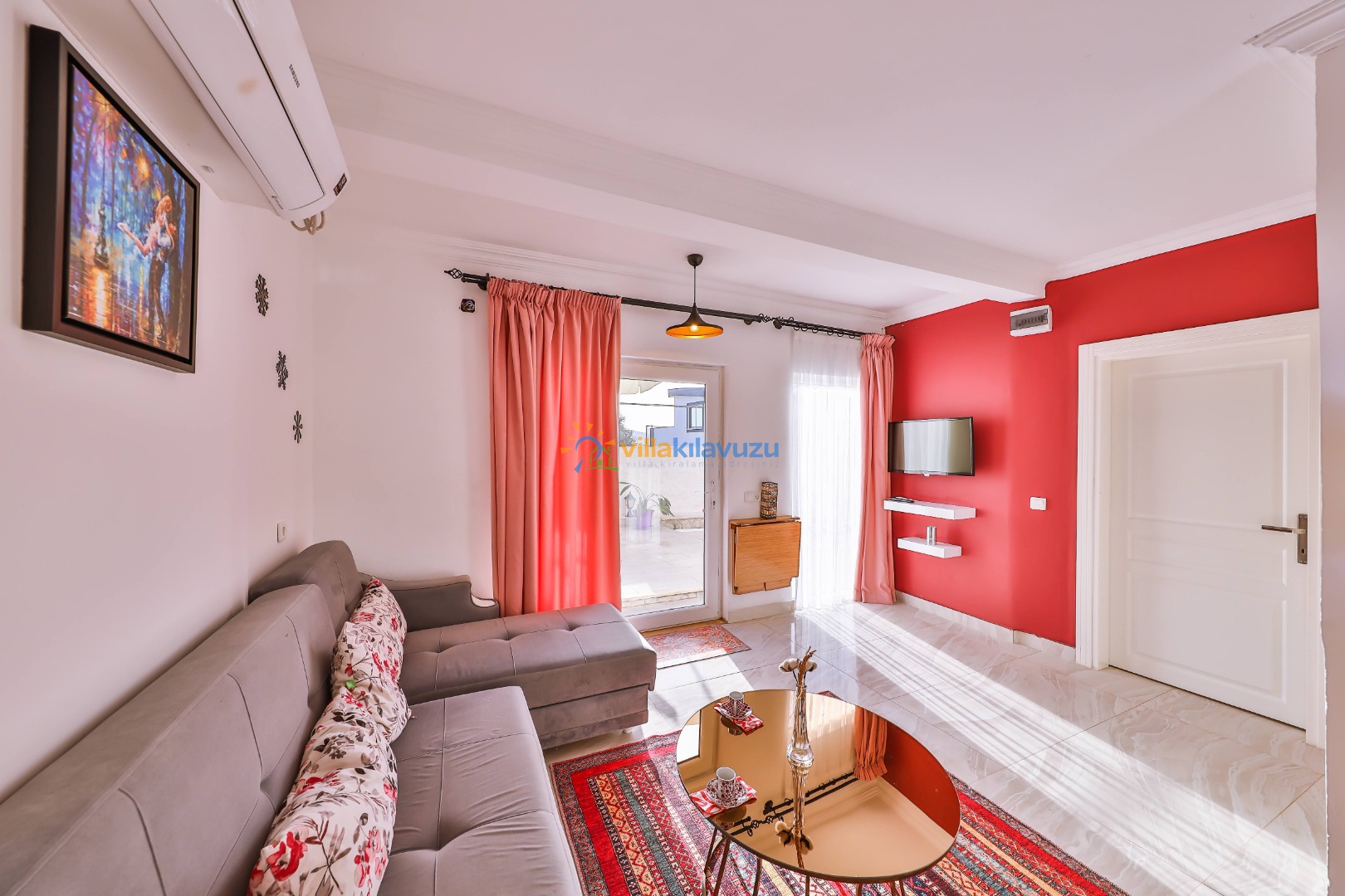 -Villamız 1 yatak odasına sahip olup 2 kişilik konaklama kapasitesine sahiptir.