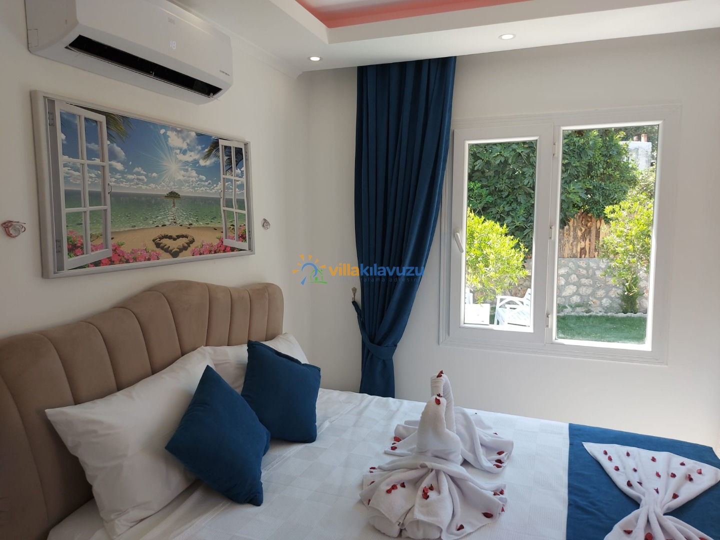 -Villamız 1 yatak odasına sahip olup 2 kişilik konaklama kapasitesine sahiptir.