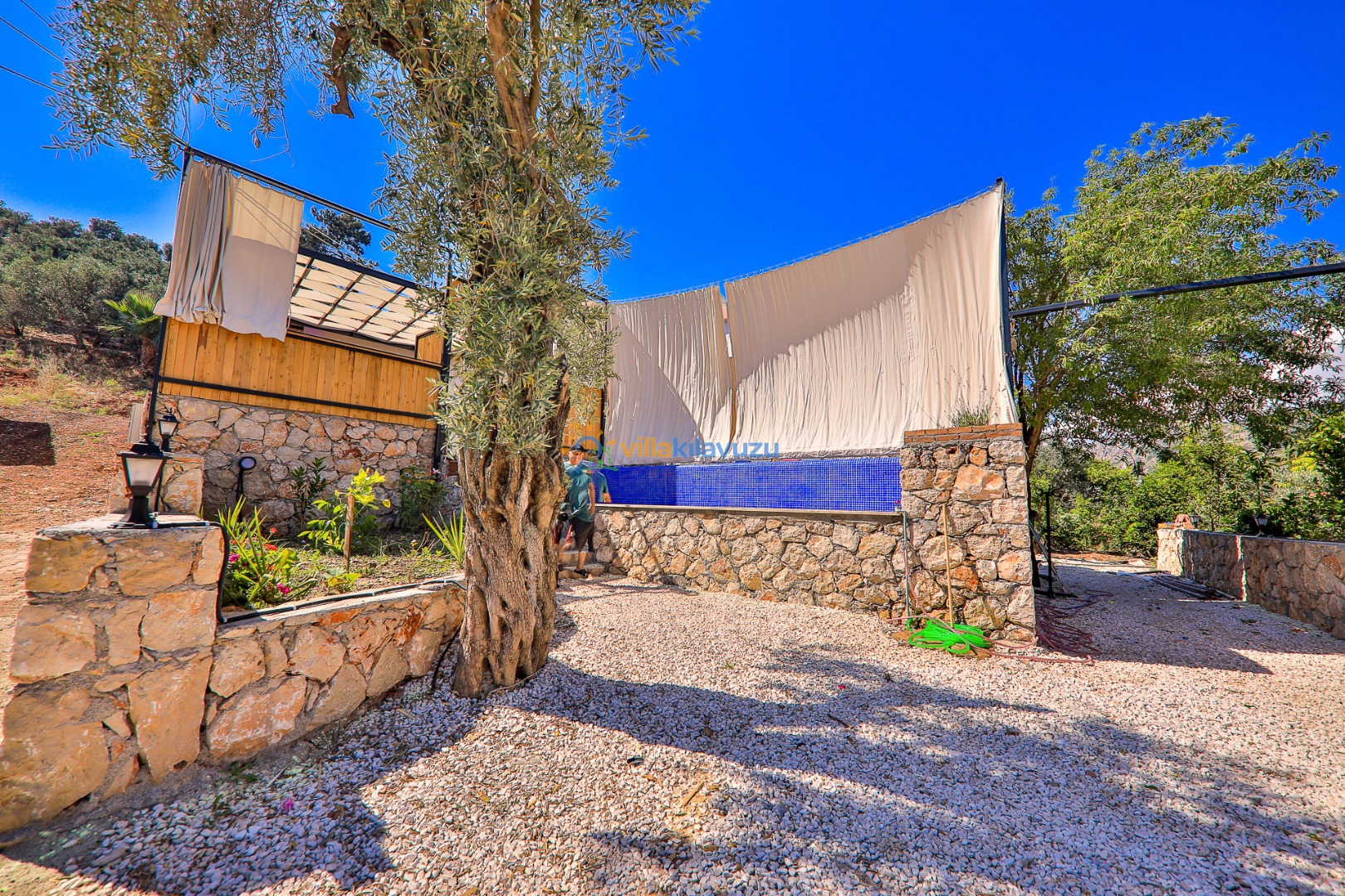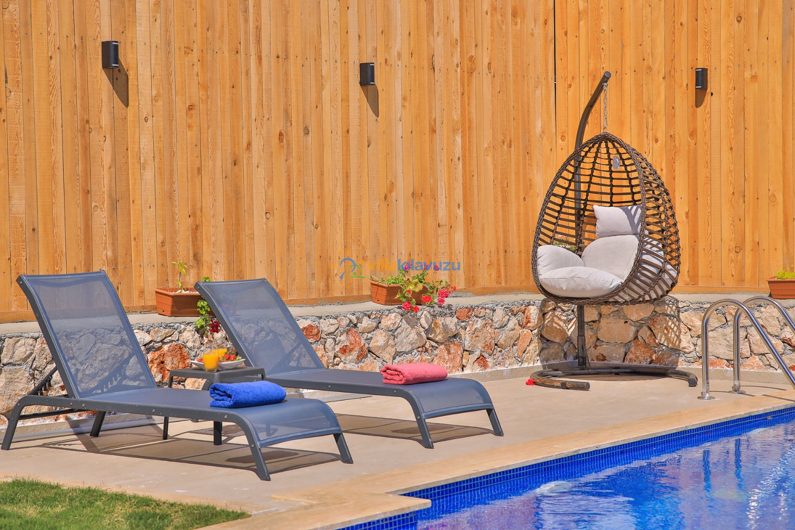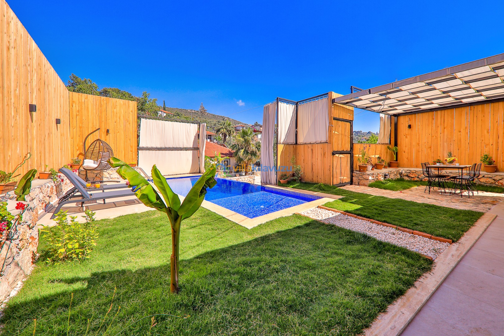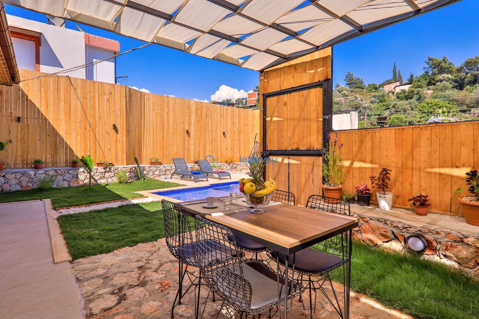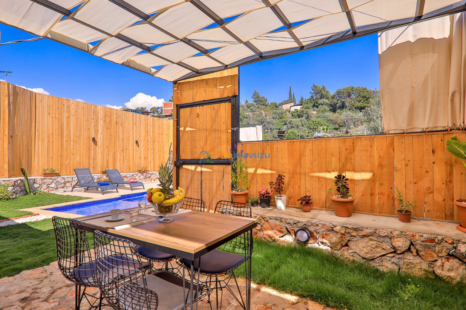 -Villamızın havuz terası korunaklıdır.