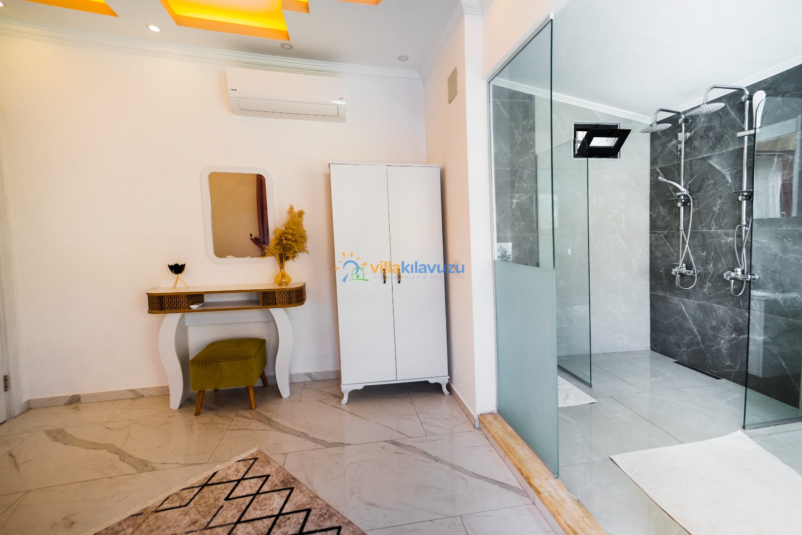-Villamız 1 yatak odasına sahip olup 2 kişilik konaklama kapasitesine sahiptir.