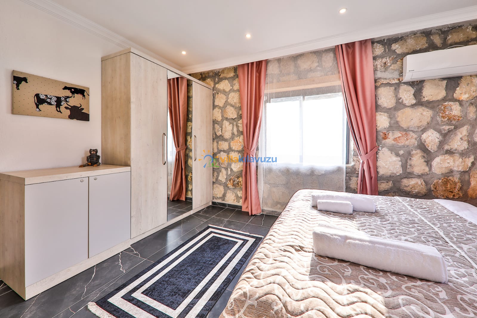 -Villamız 2 yatak odasına sahip olup 4 kişilik konaklama kapasitesine sahiptir.