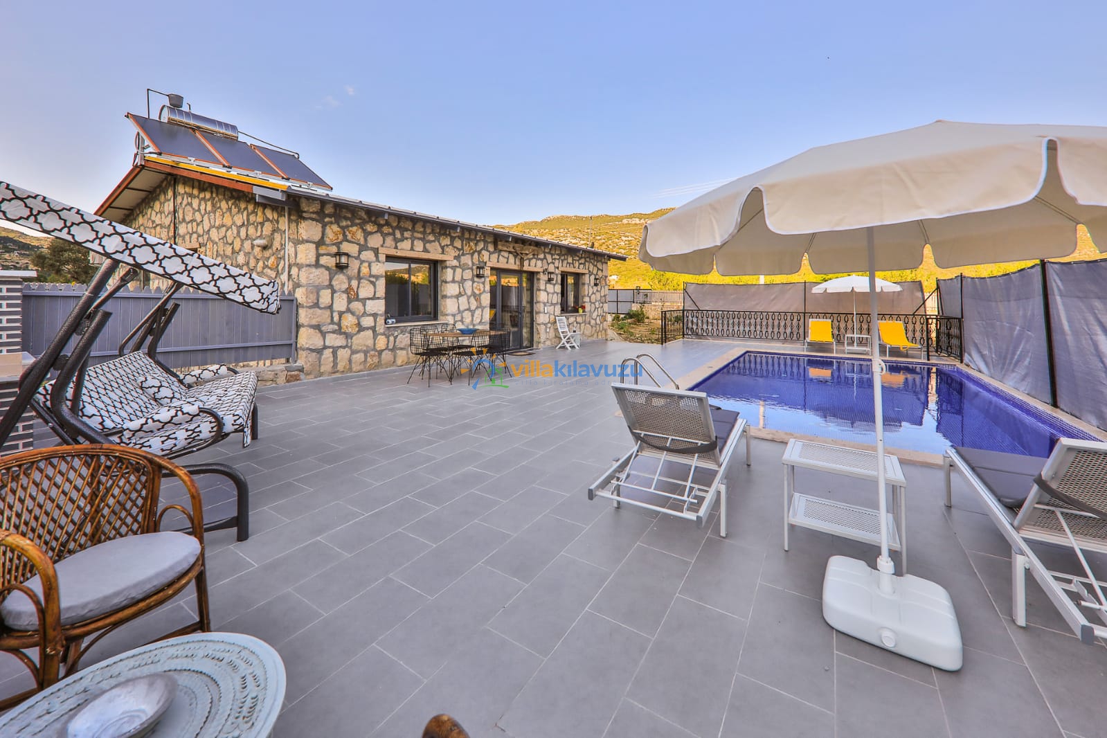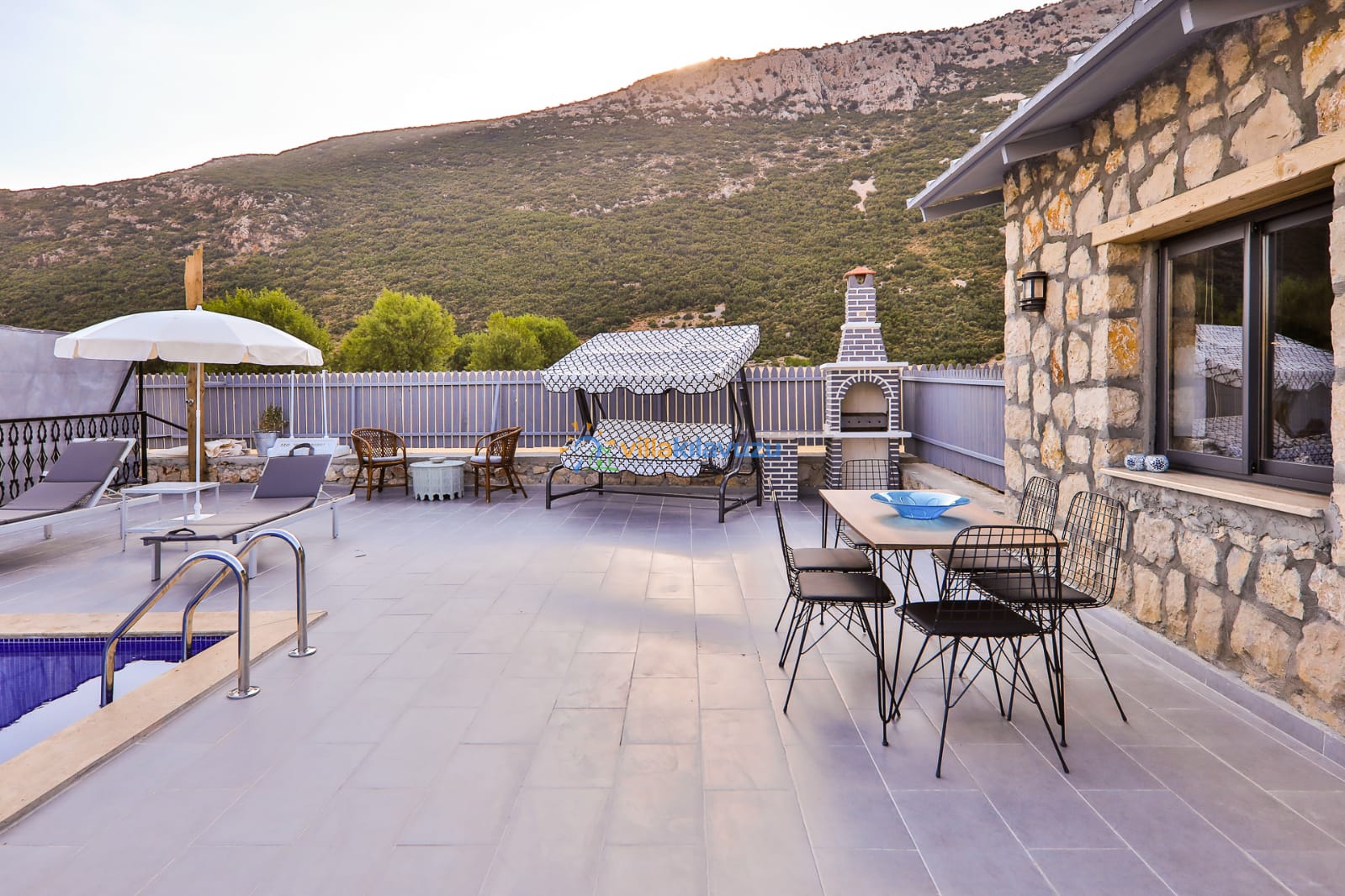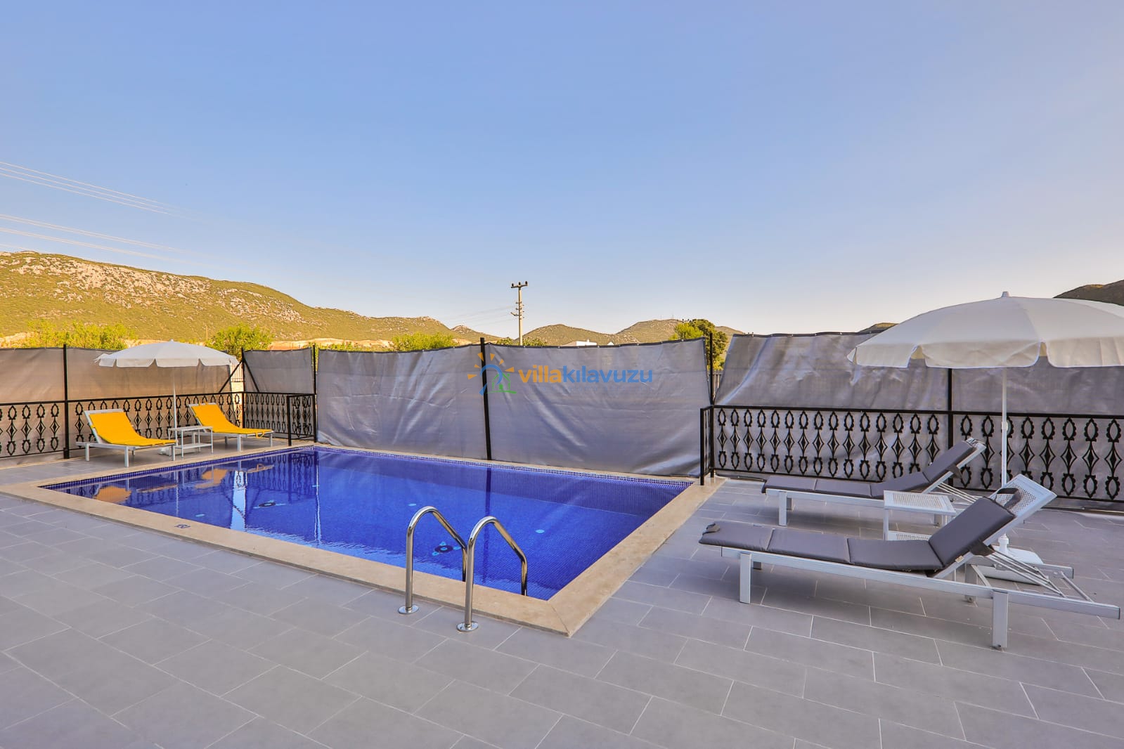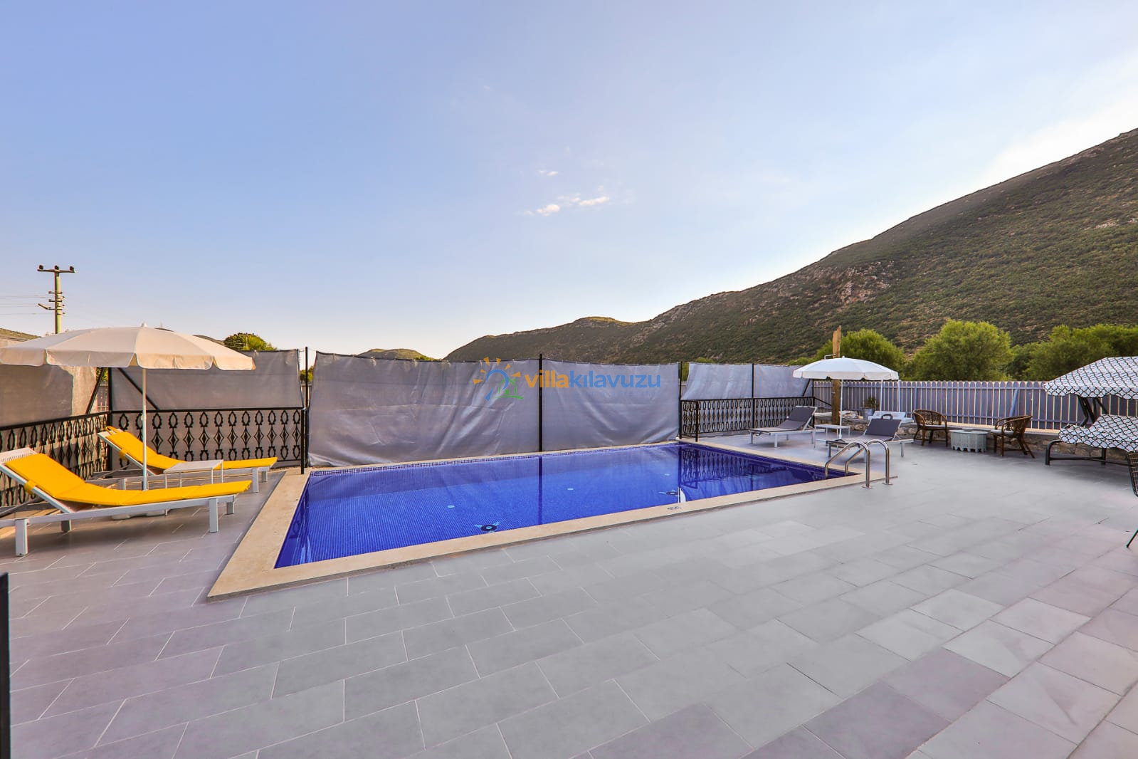 -Villamızın havuz terası korunaklıdır.