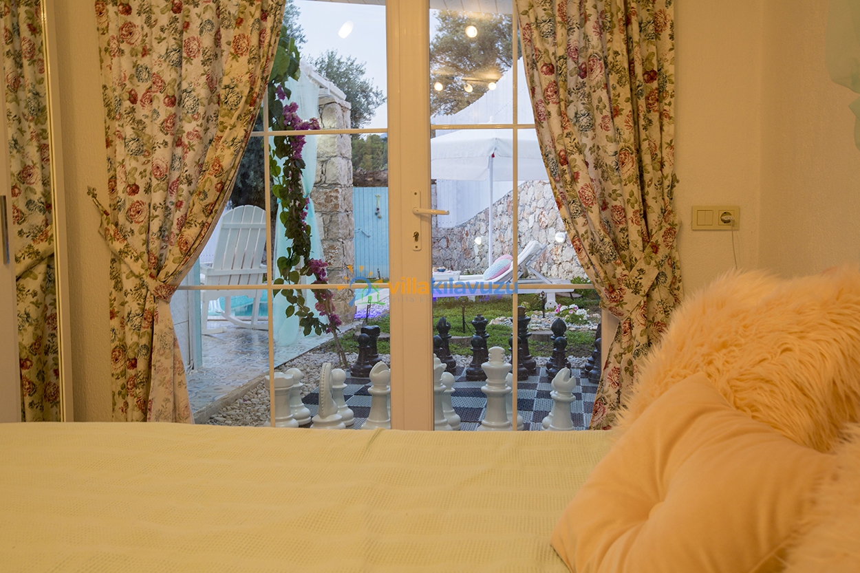 -Villamız 1 yatak odasına sahip olup 2 kişilik konaklama kapasitesine sahiptir.