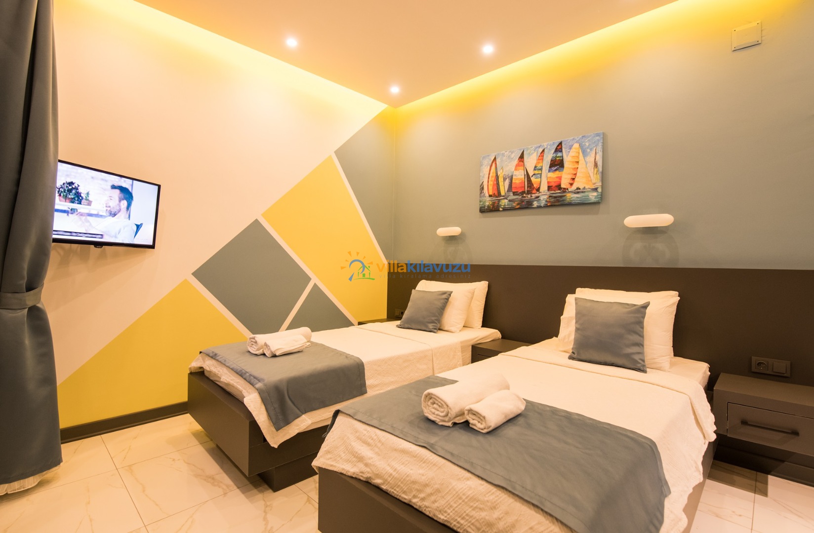-Villamız 2 yatak odasına sahip olup 4 kişilik konaklama kapasitesine sahiptir.