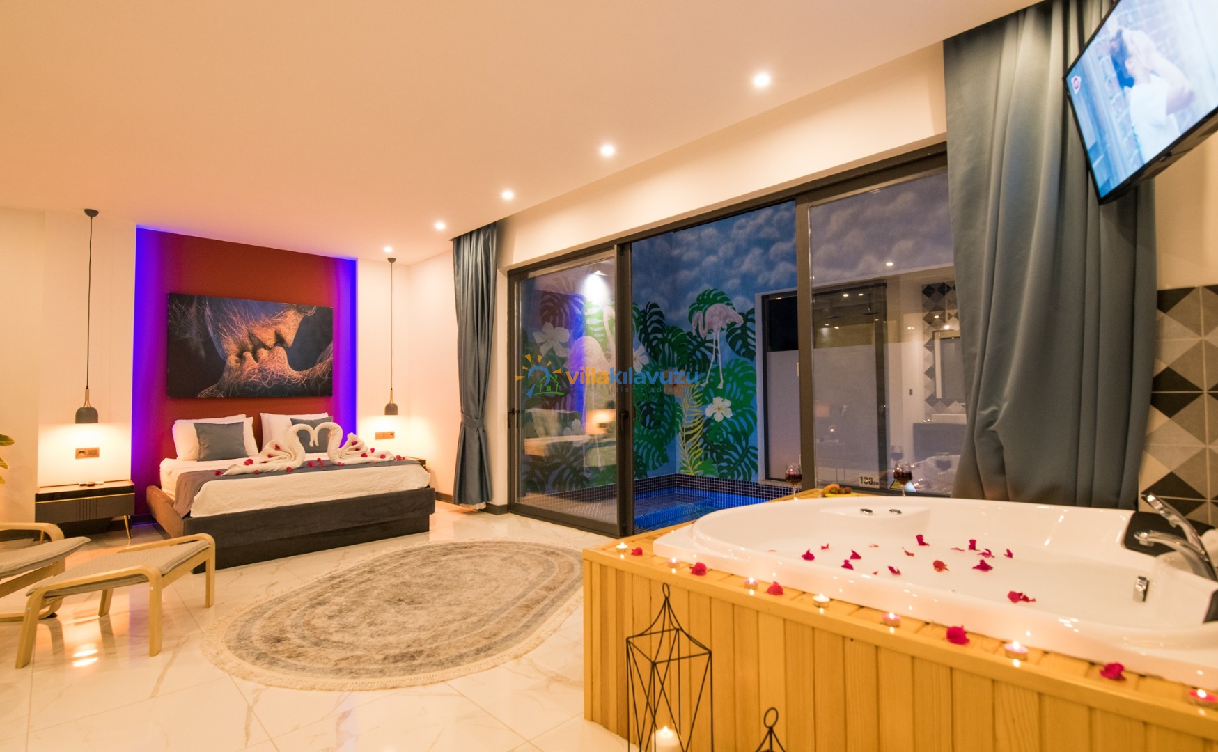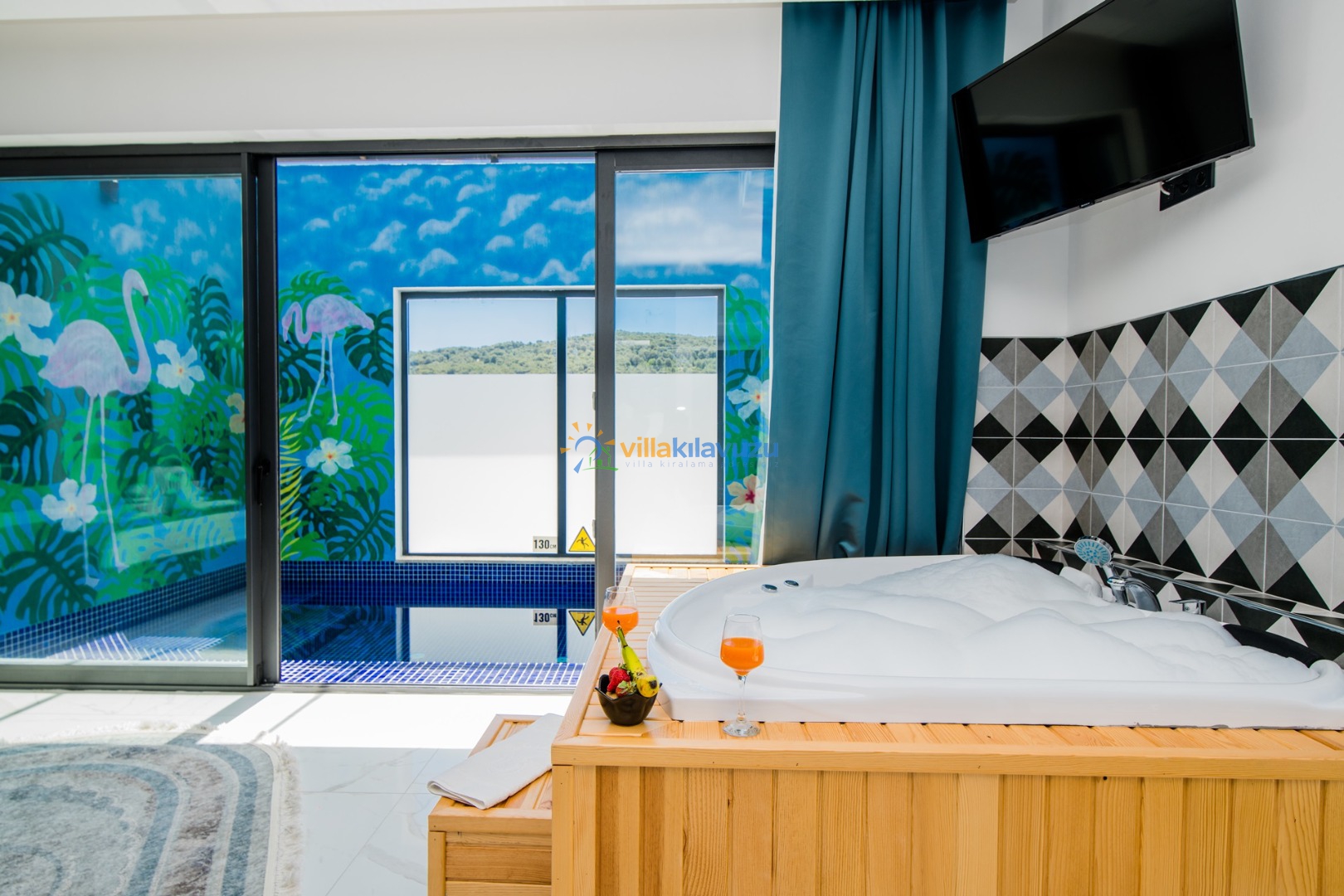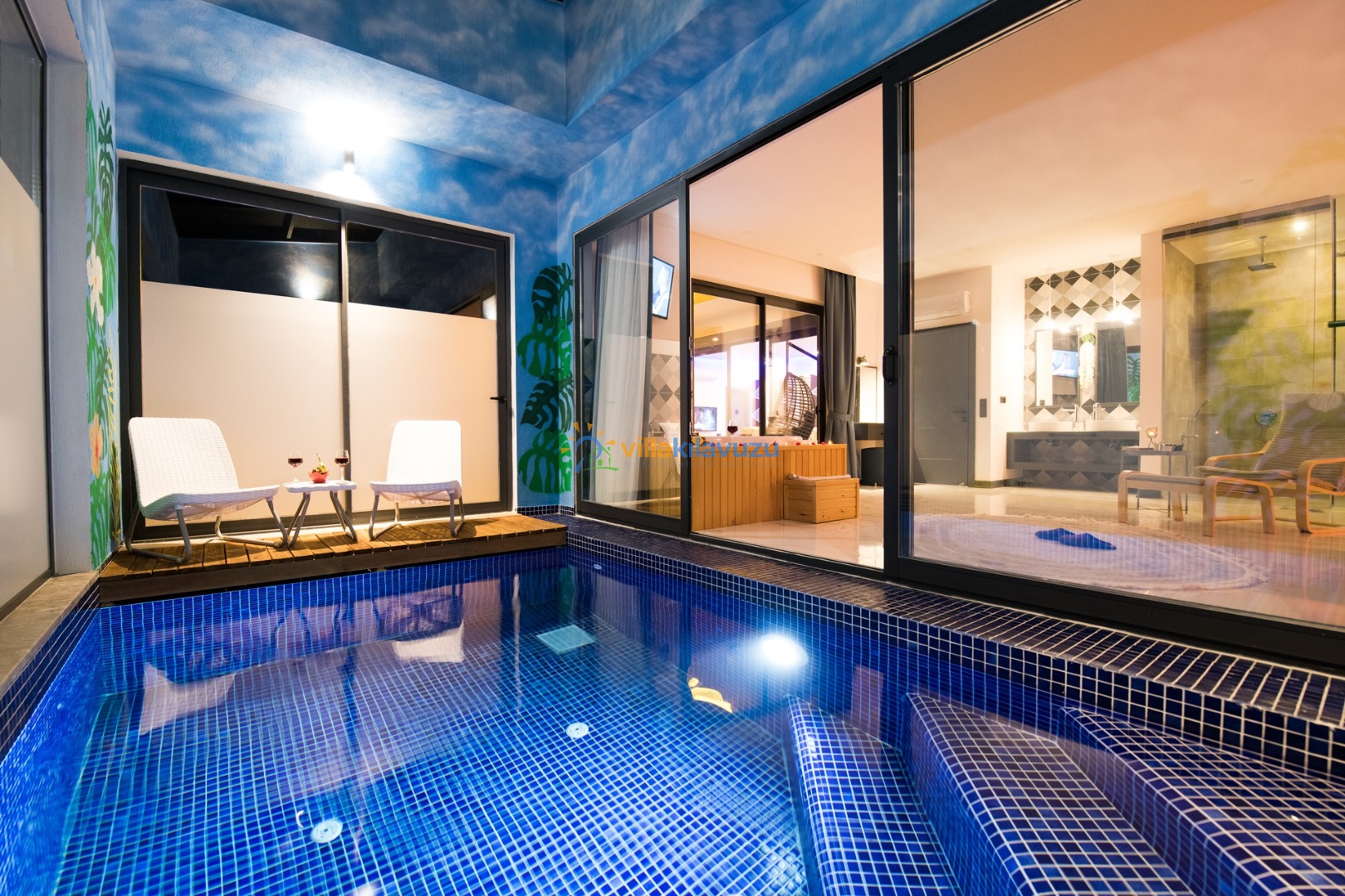 -Villamızda kapalı havuz, sauna ve jakuzi bulunmaktadır.