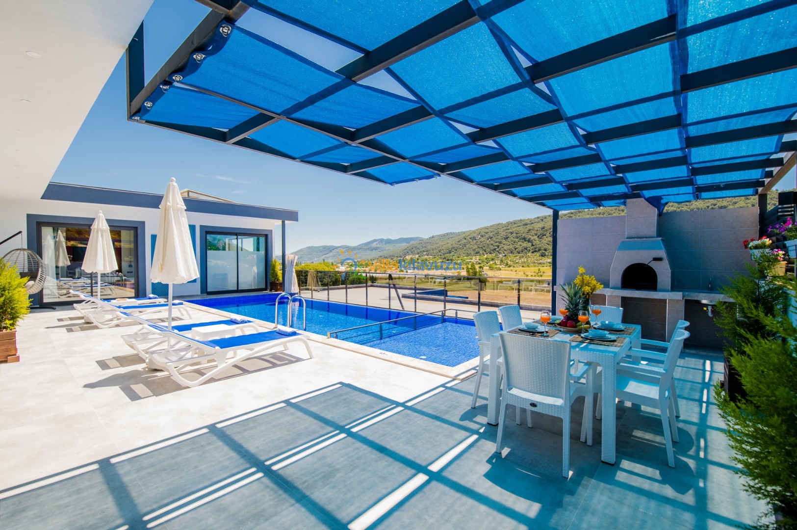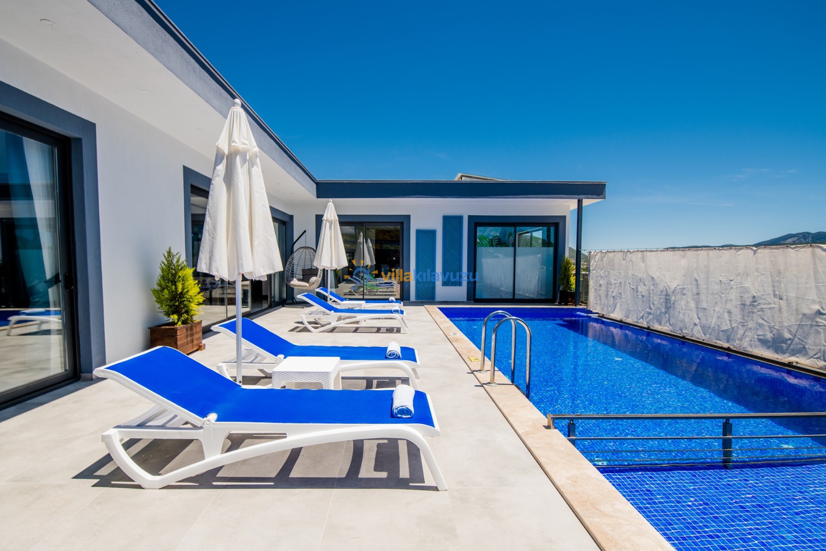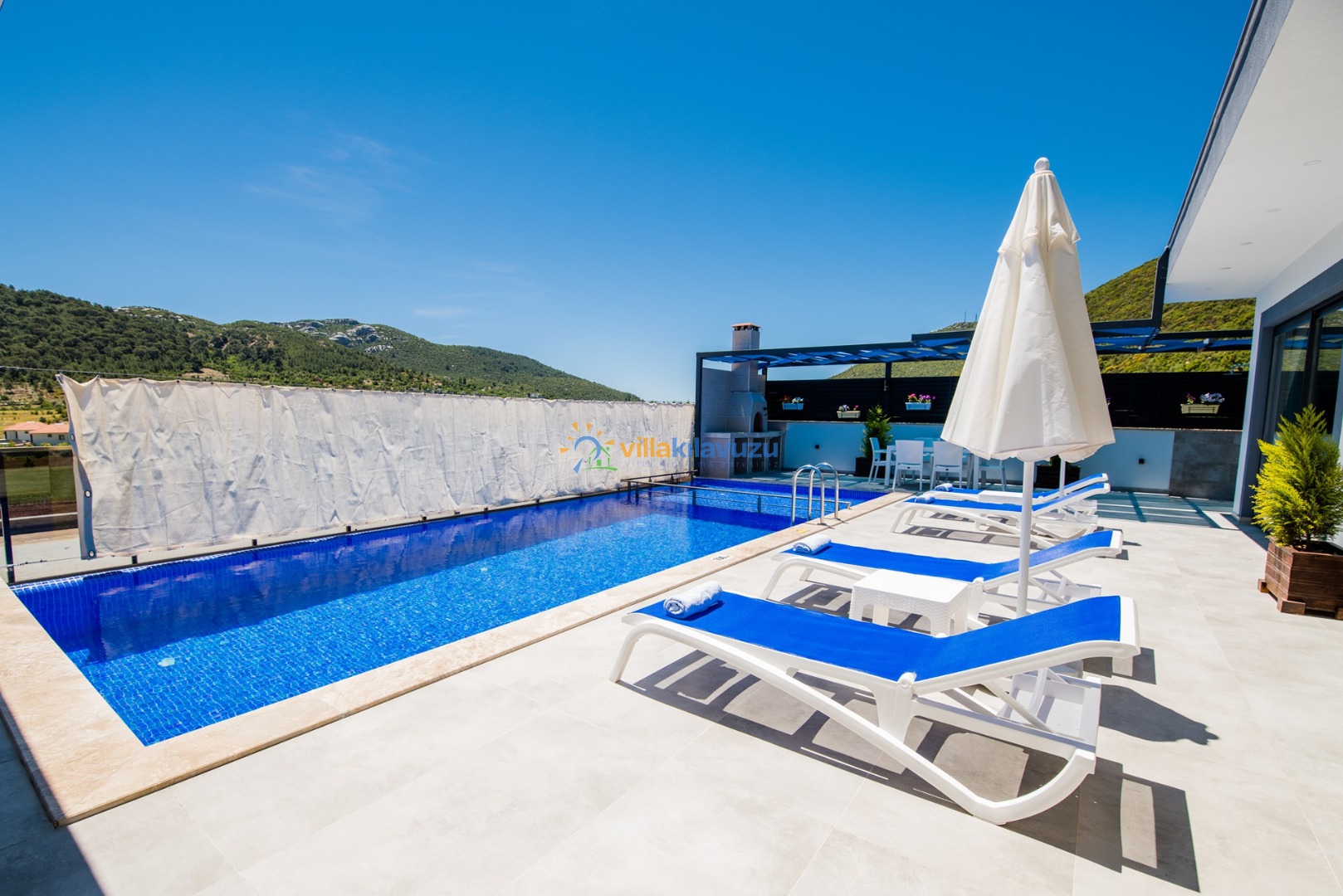 -Villamızın havuz terası korunaklıdır.