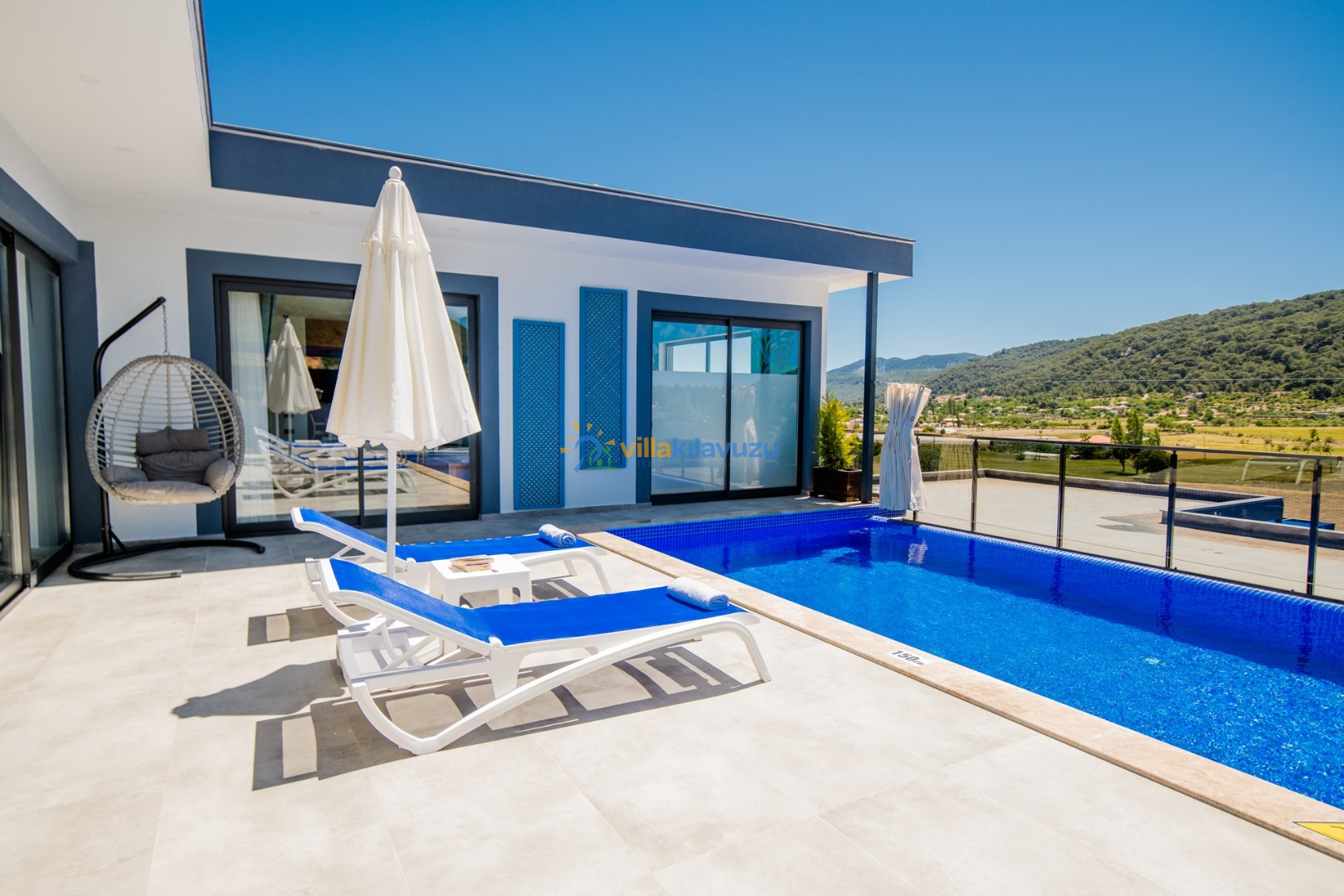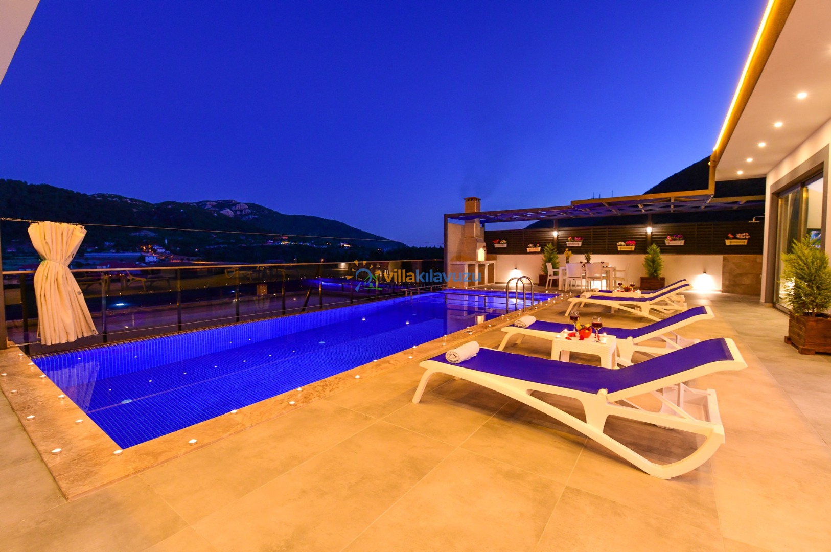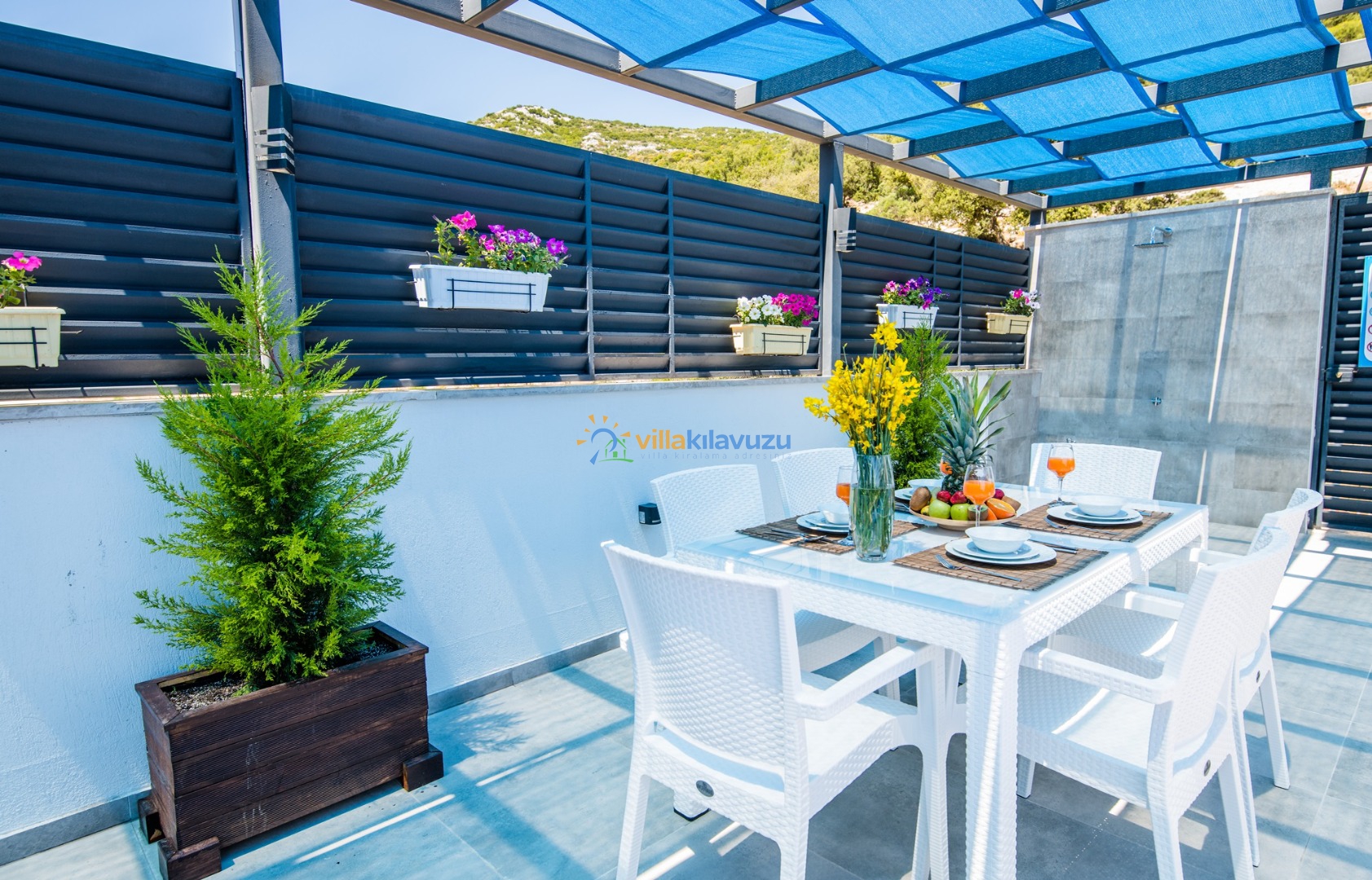 -Villamızın havuz terası korunaklıdır.