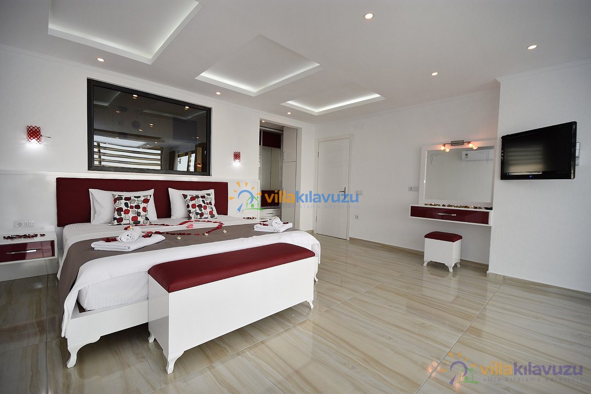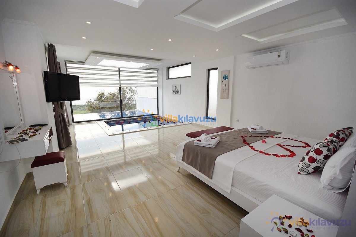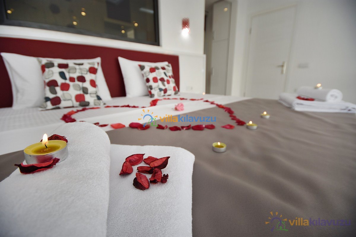 -Villamız 1 yatak odasına sahip olup 2 kişilik konaklama kapasitesine sahiptir.