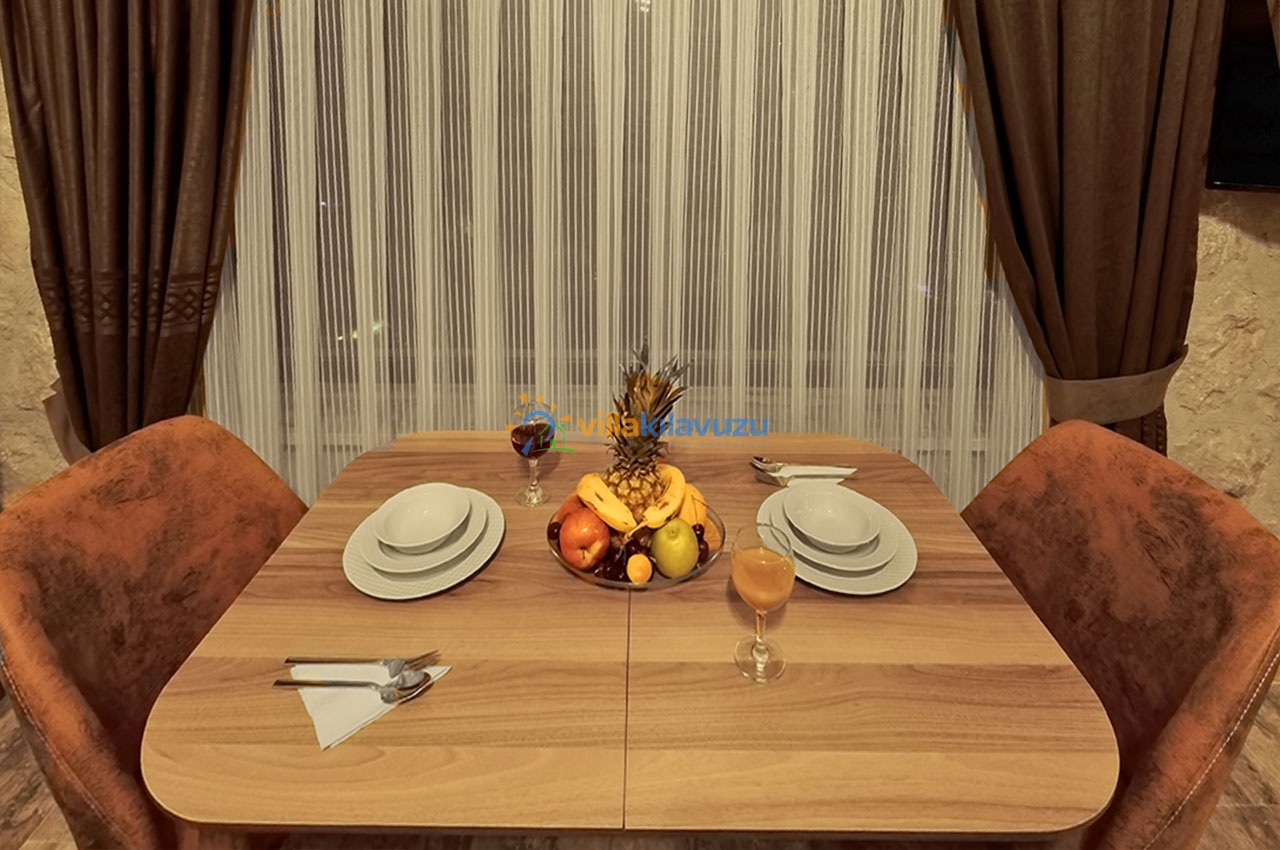 -Villamız 1 yatak odasına sahip olup 2 kişilik konaklama kapasitesine sahiptir.