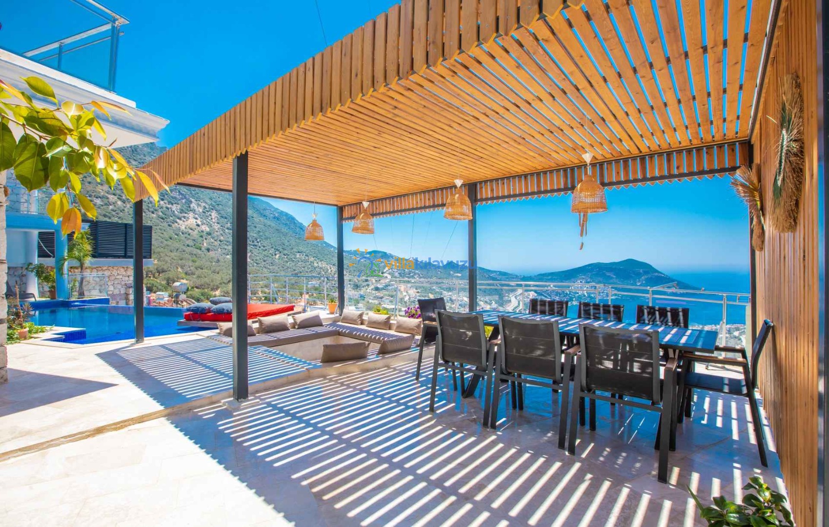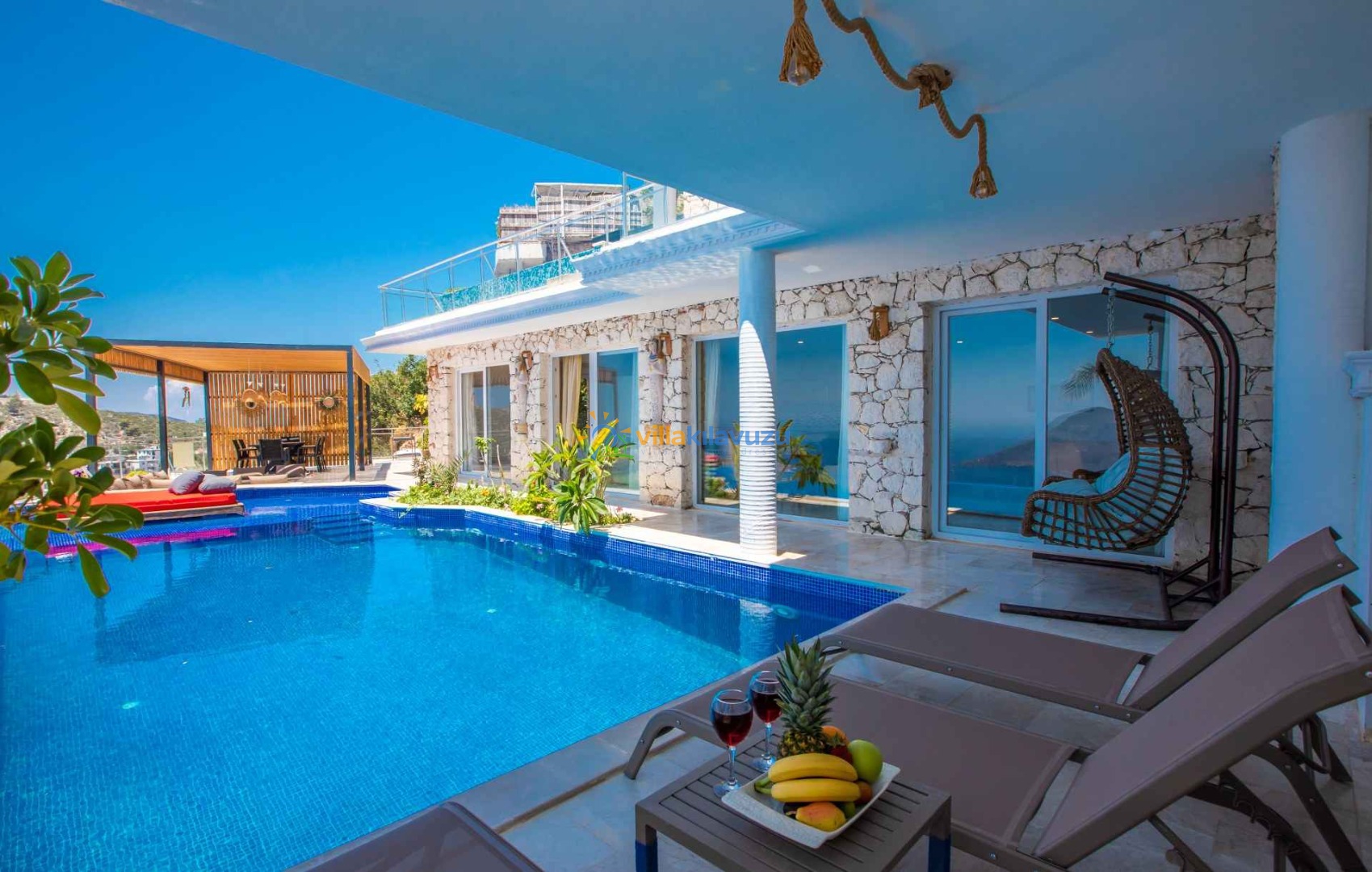 -Villamızın havuz terası korunaklıdır.