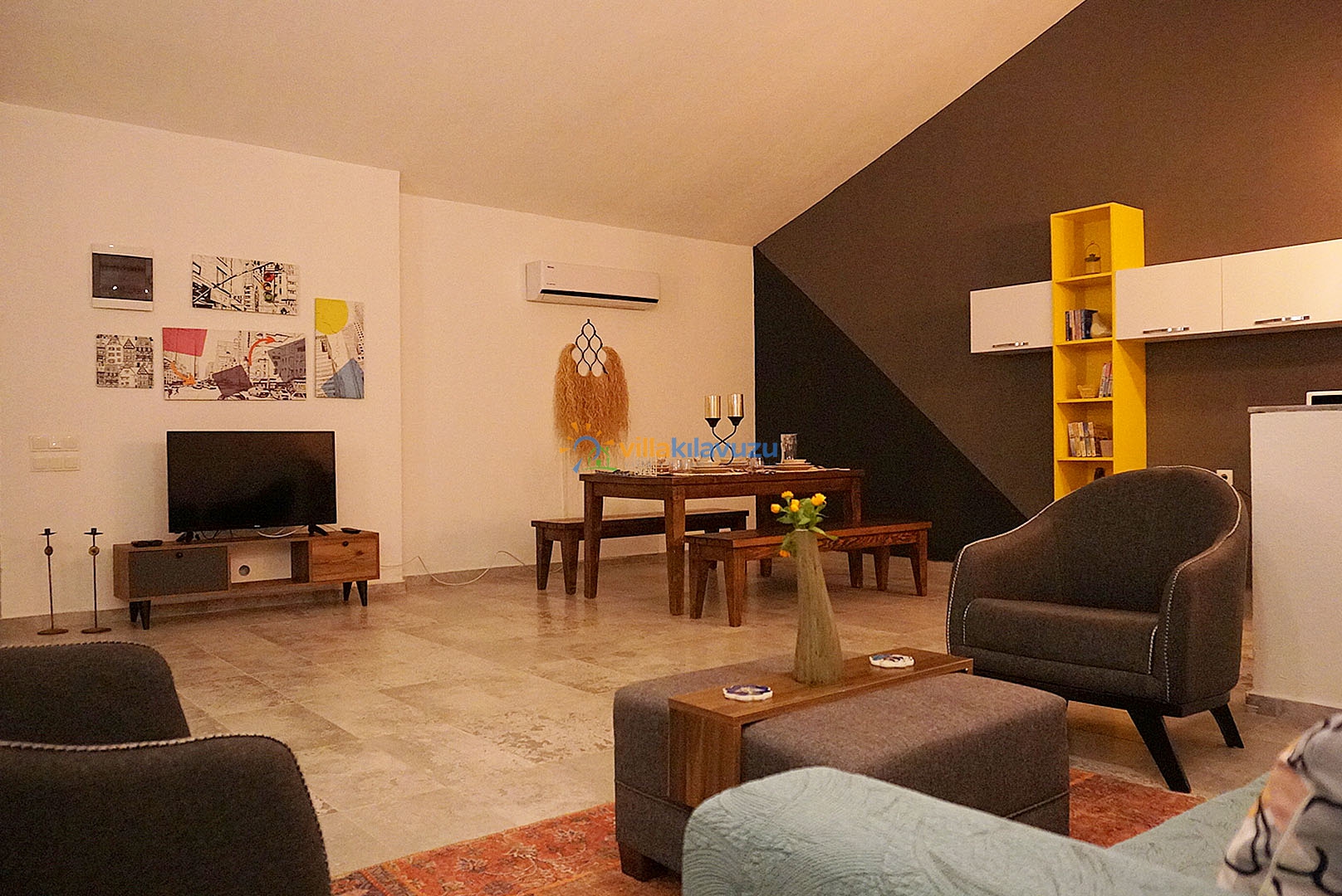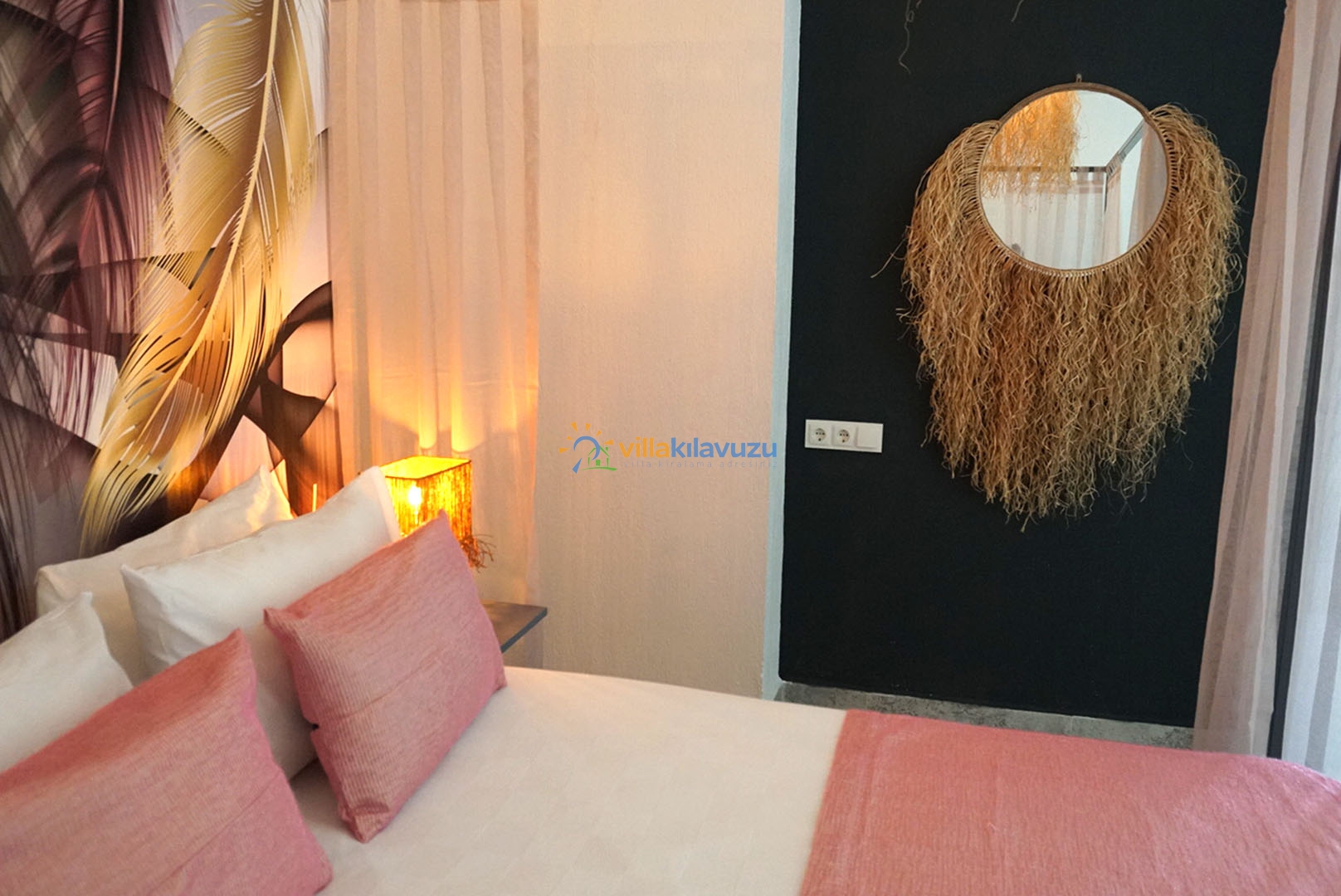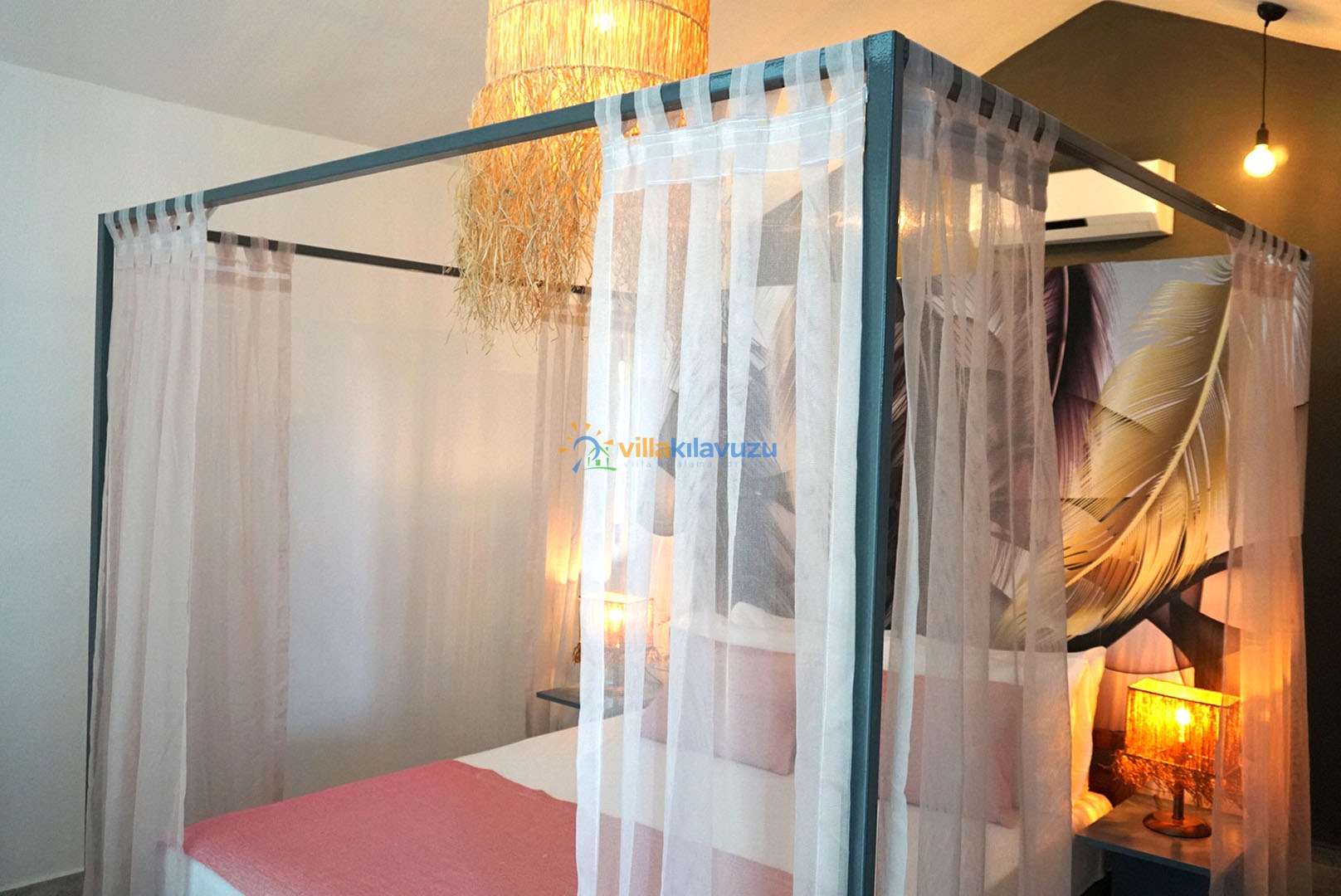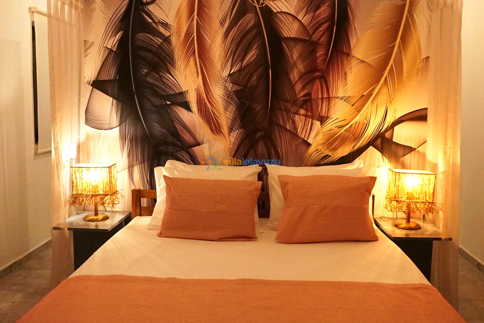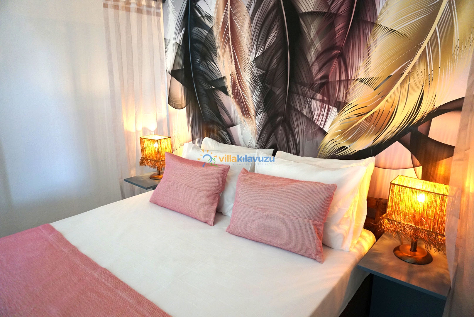 -Villamız 1 yatak odasına sahip olup 2 kişilik konaklama kapasitesine sahiptir.