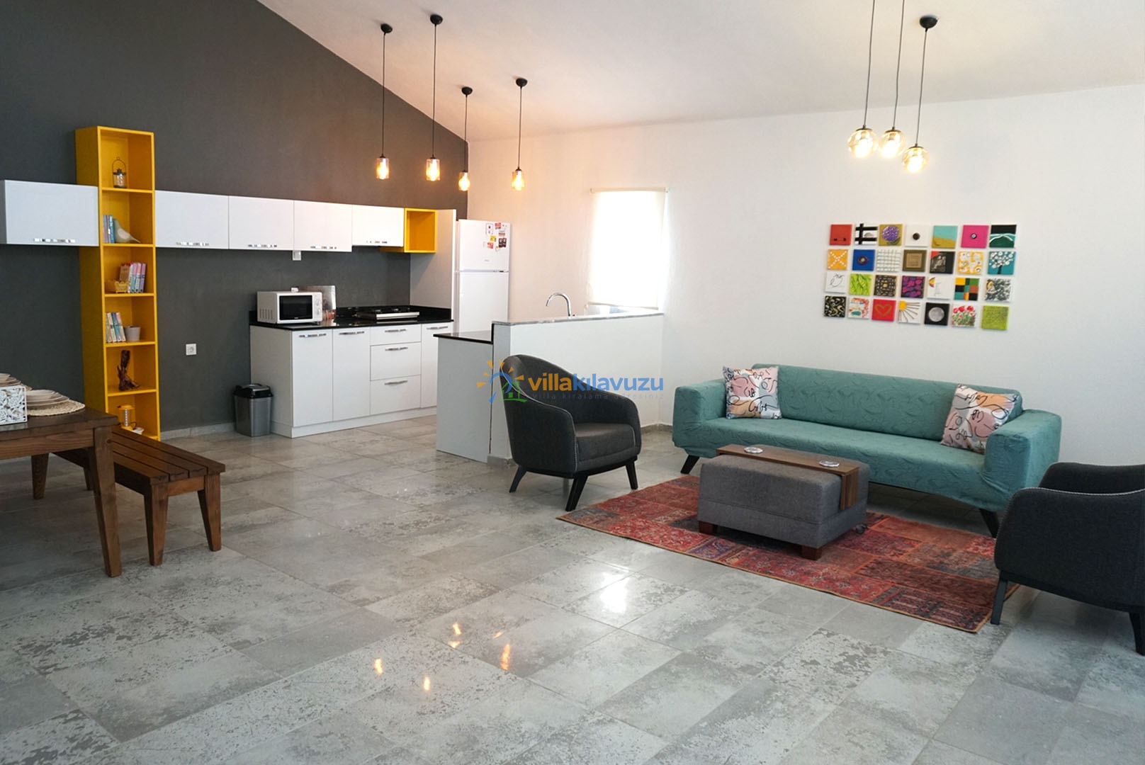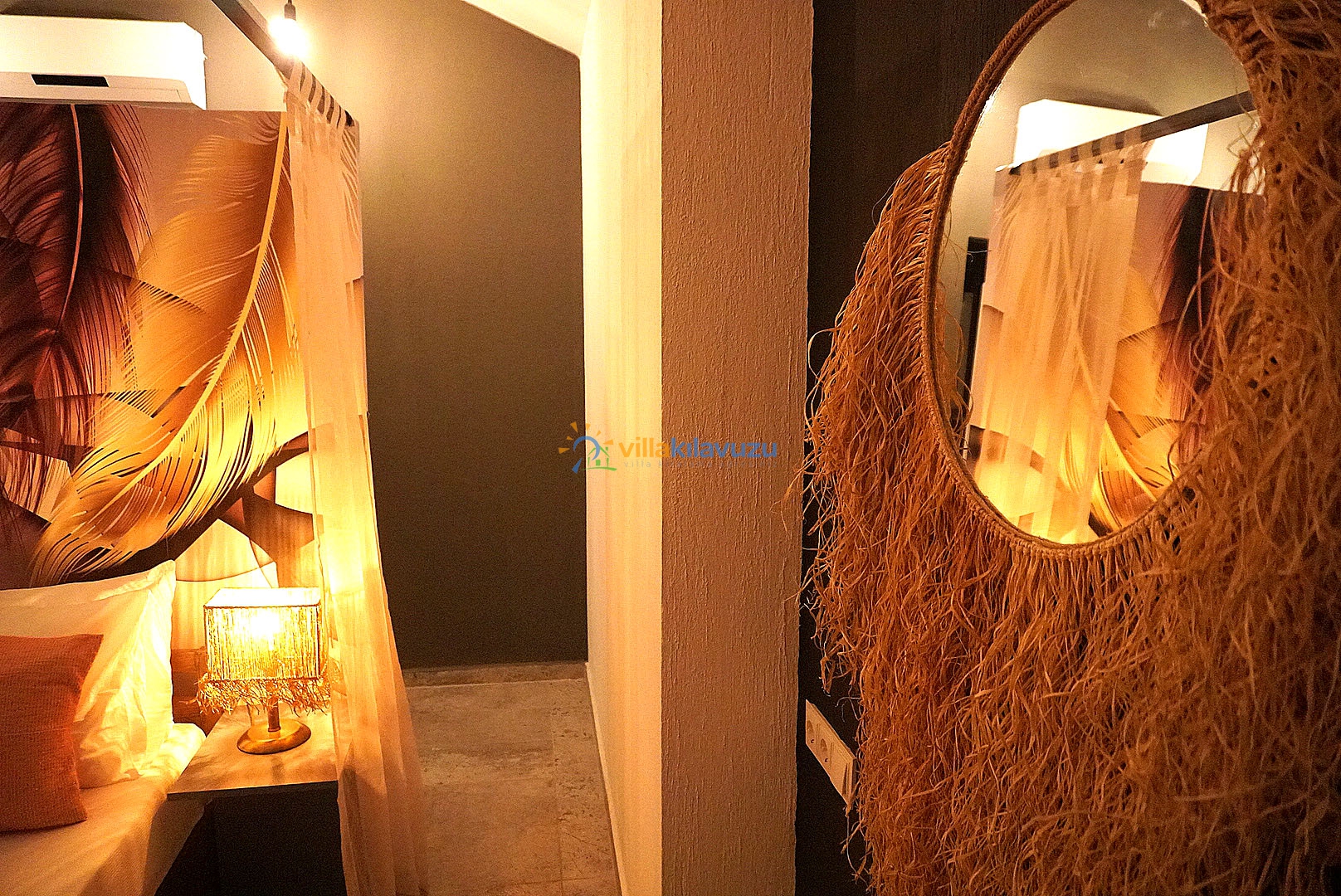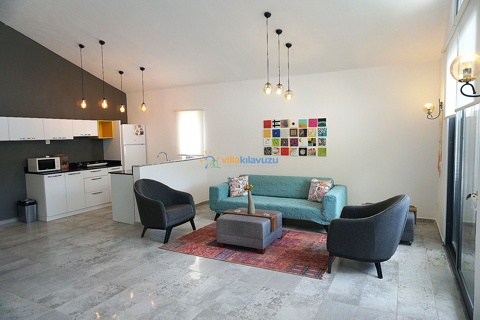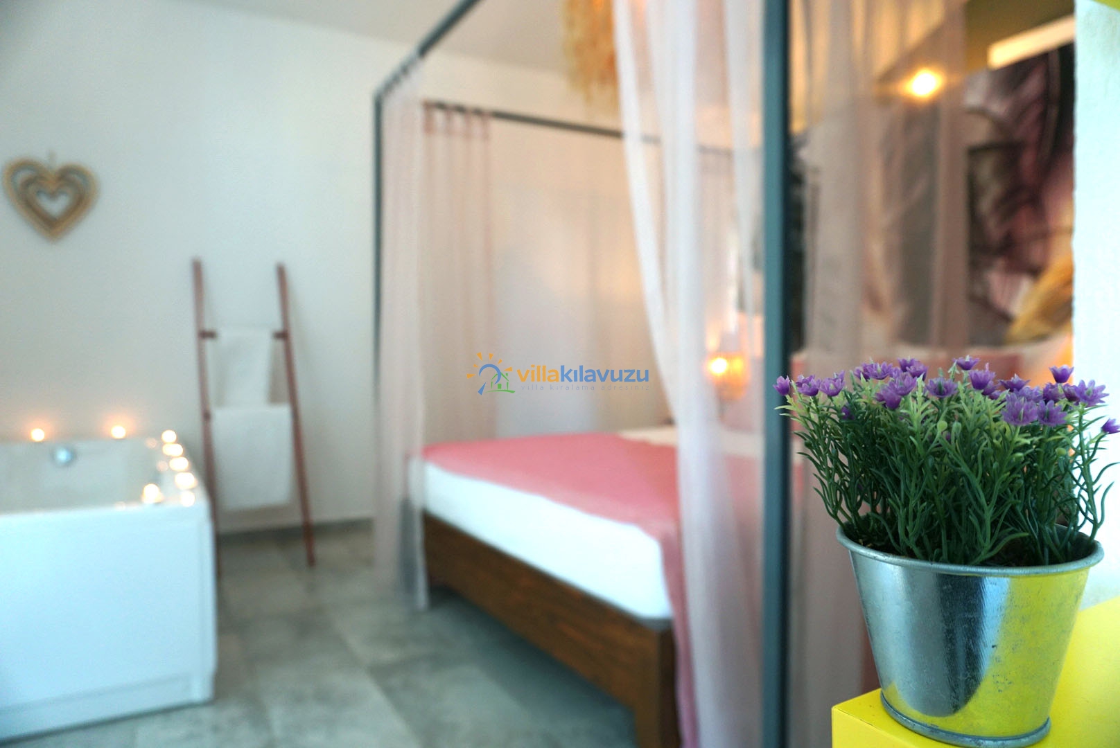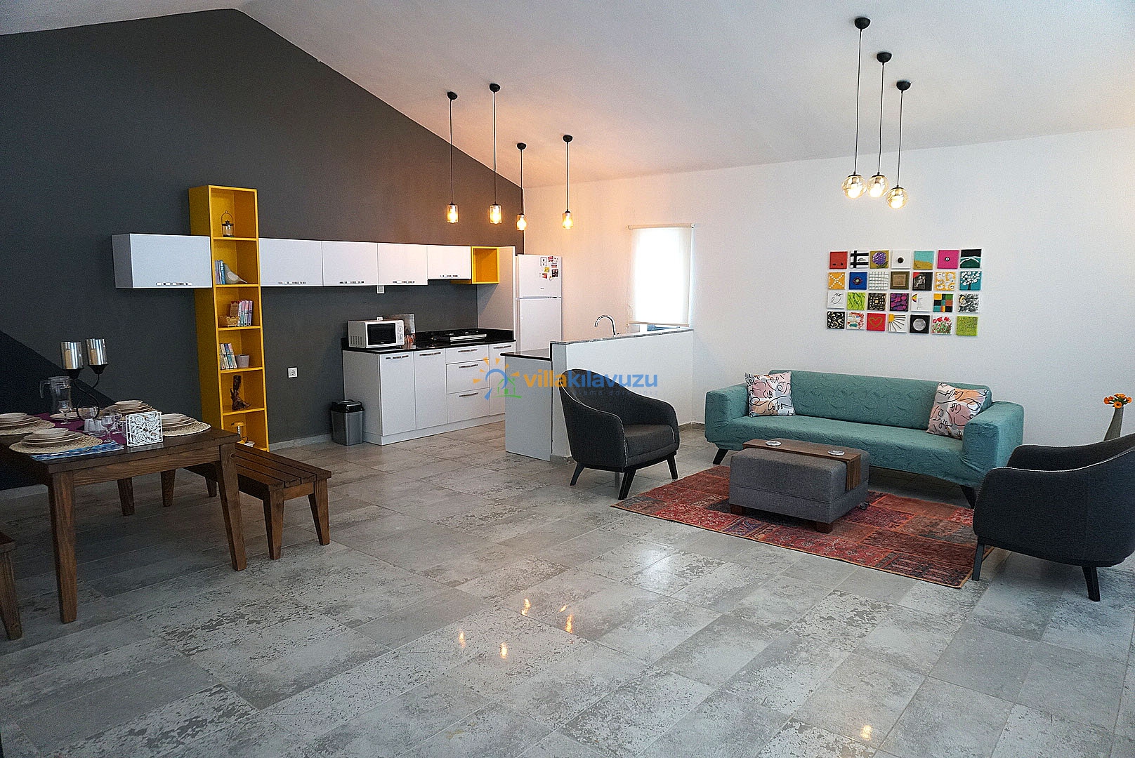 -Villamız 1 yatak odasına sahip olup 2 kişilik konaklama kapasitesine sahiptir.