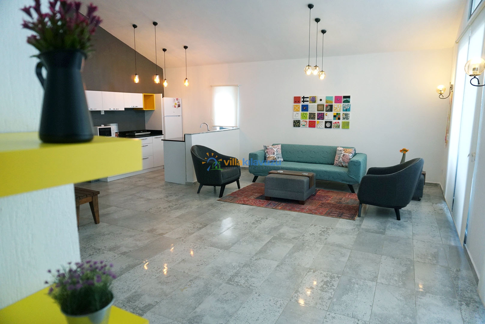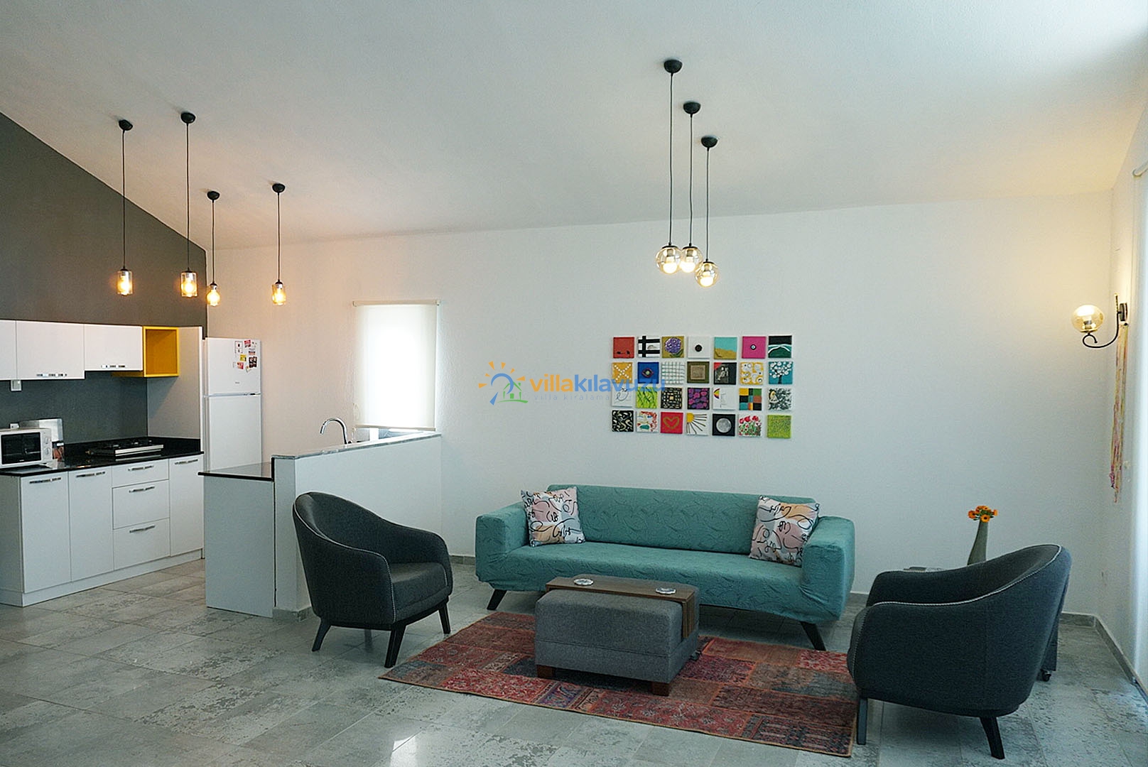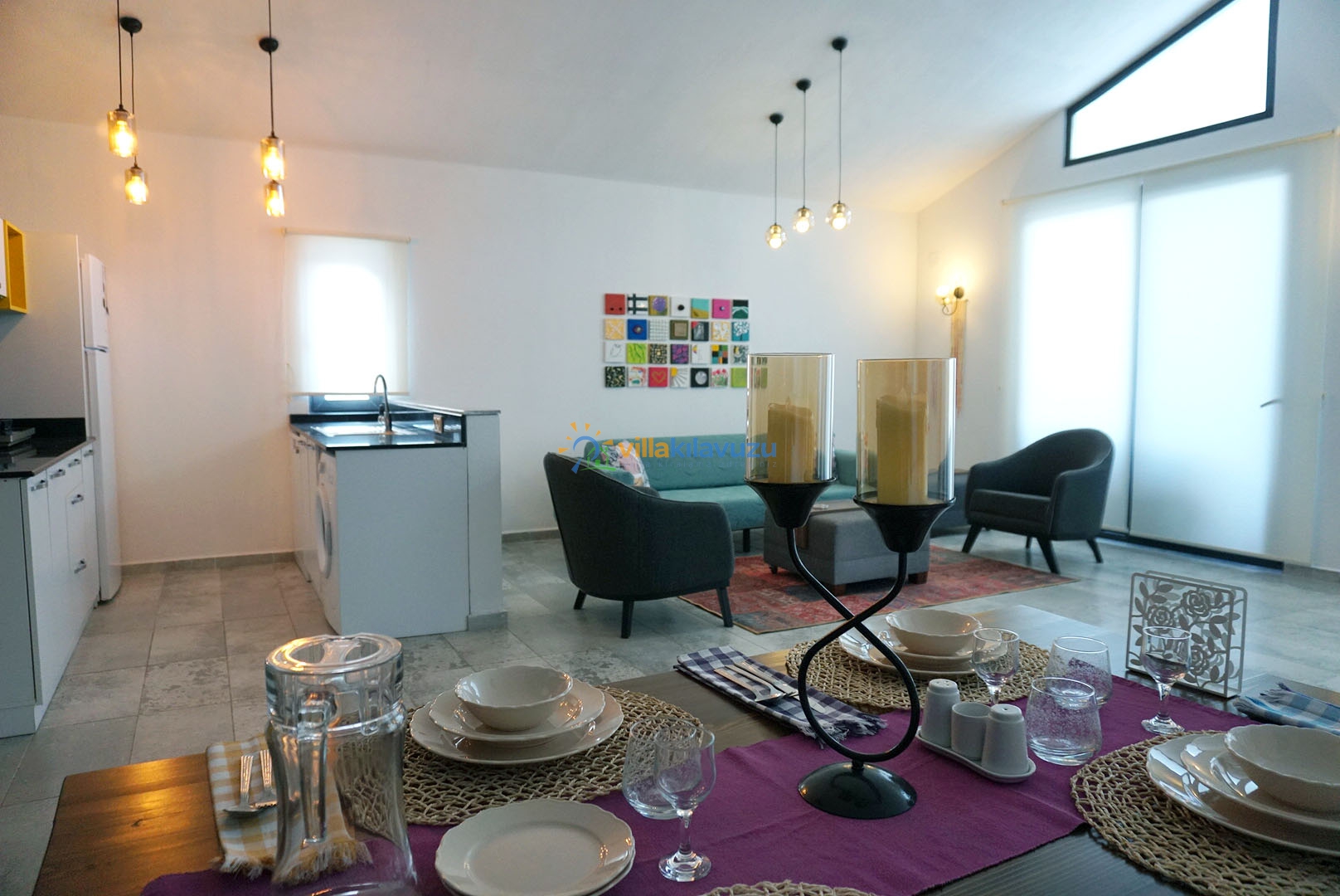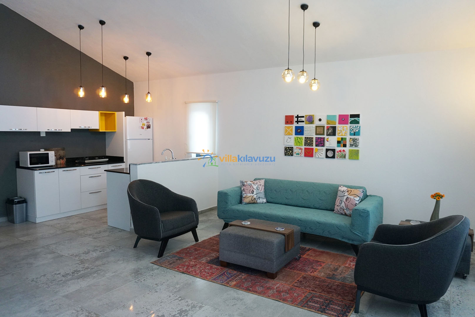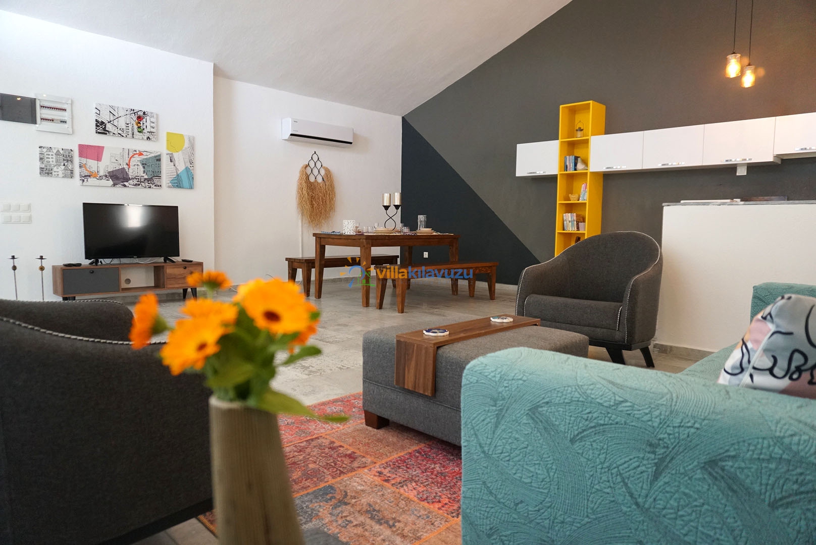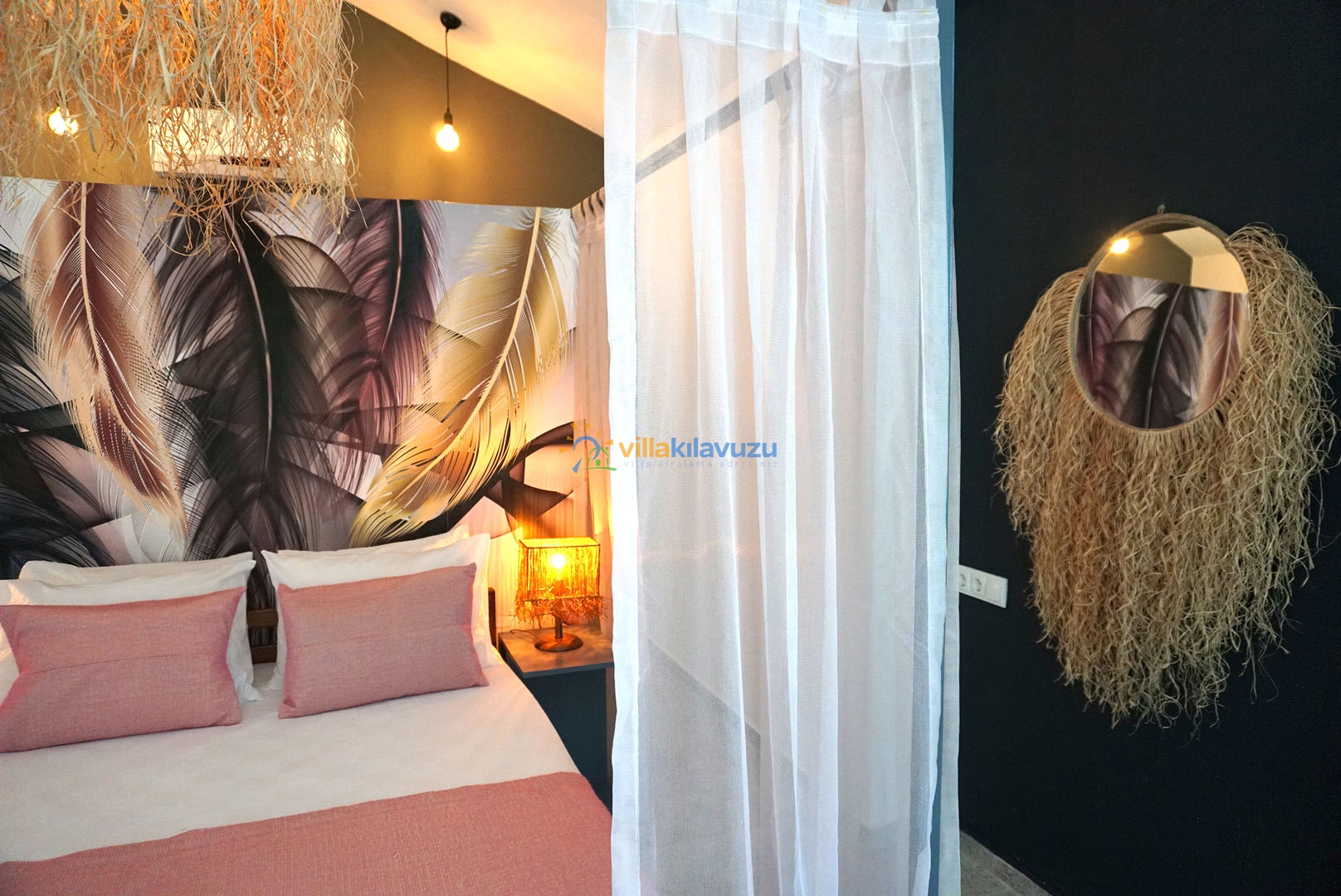 -Villamız 1 yatak odasına sahip olup 2 kişilik konaklama kapasitesine sahiptir.