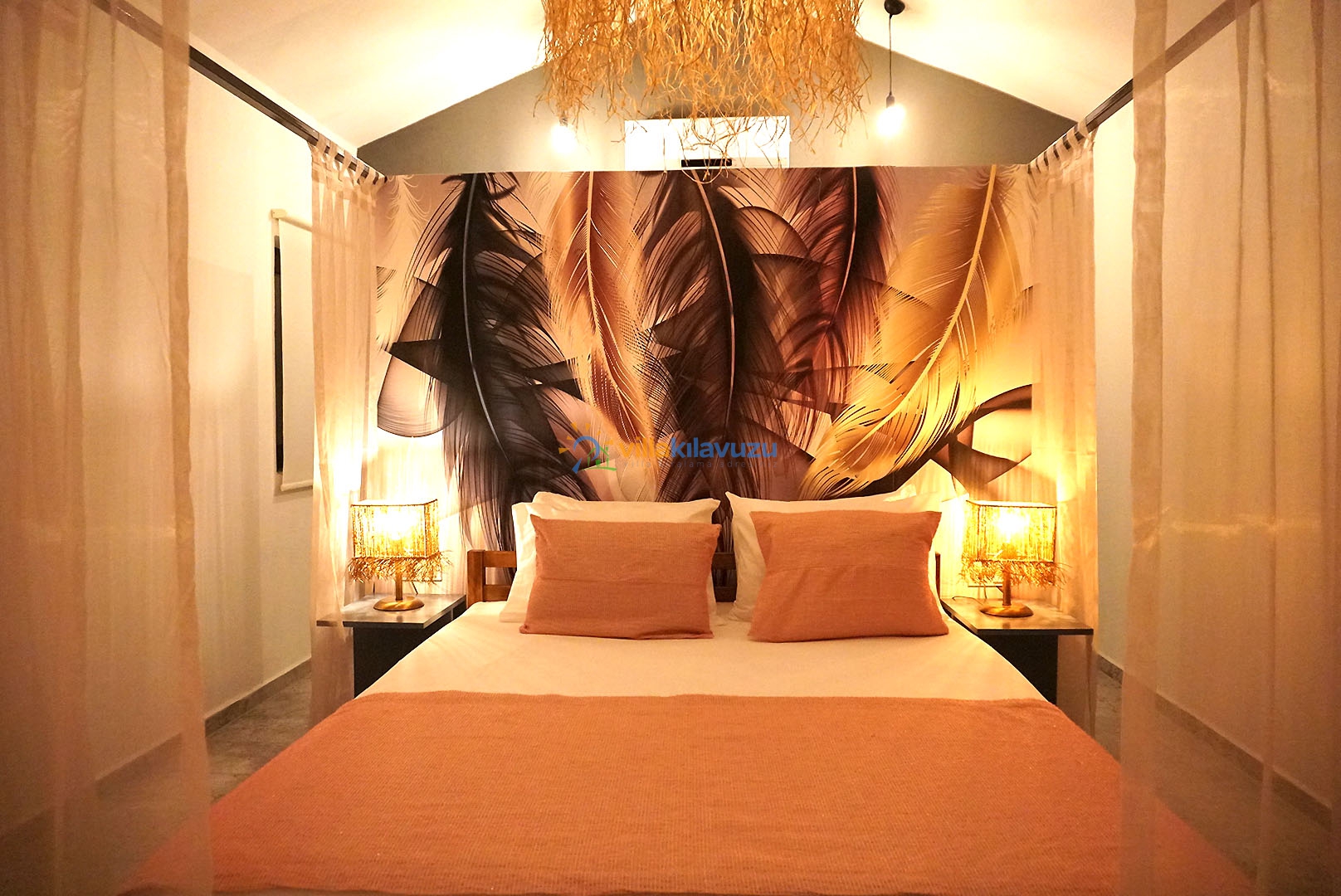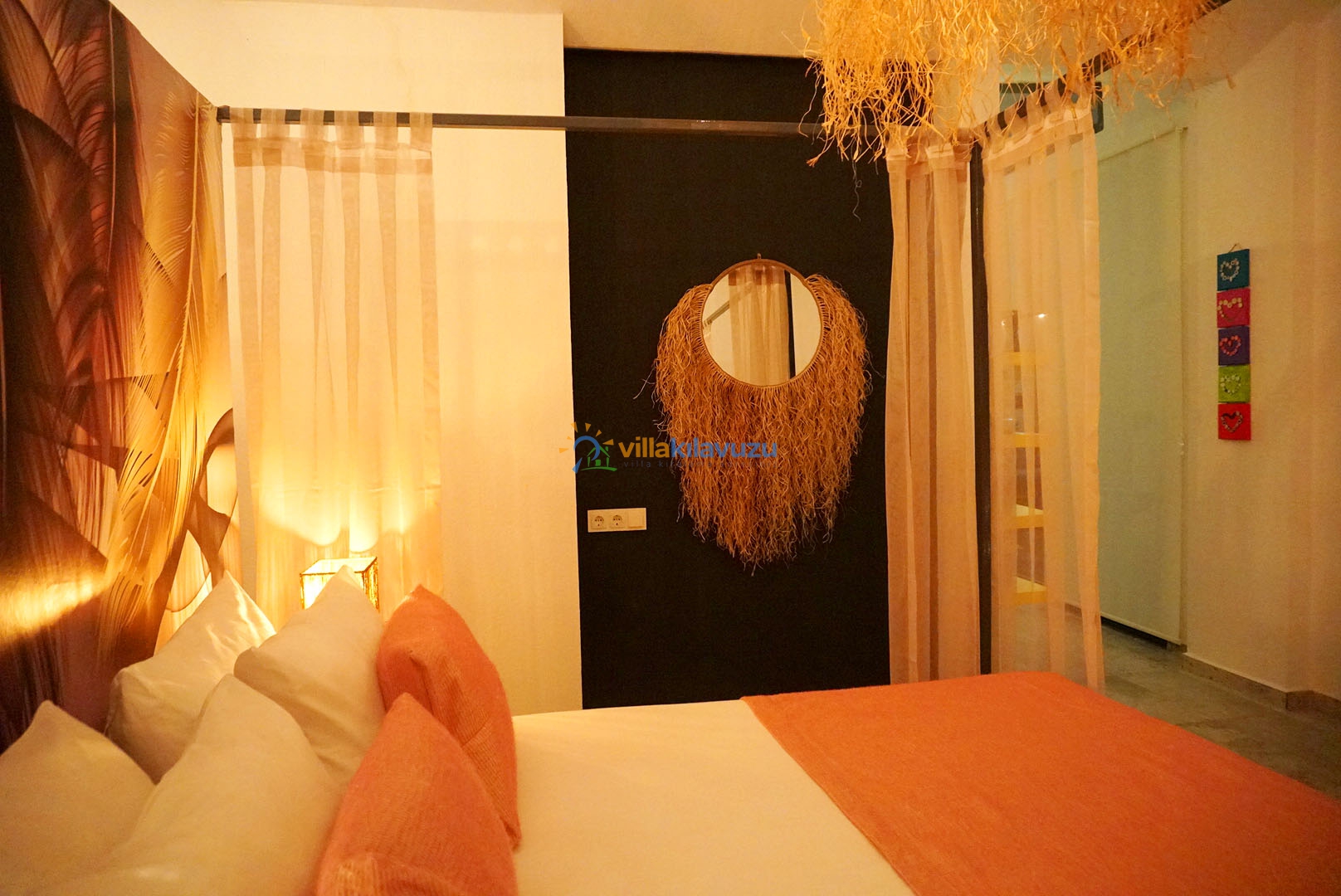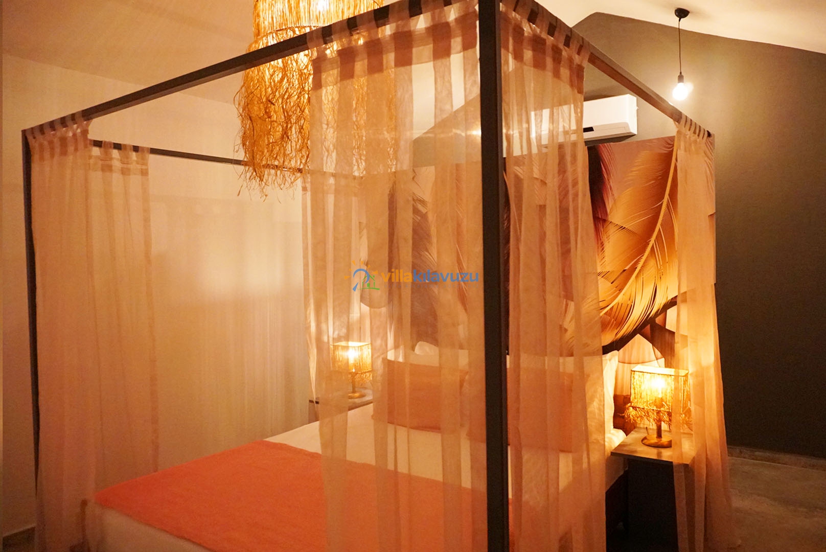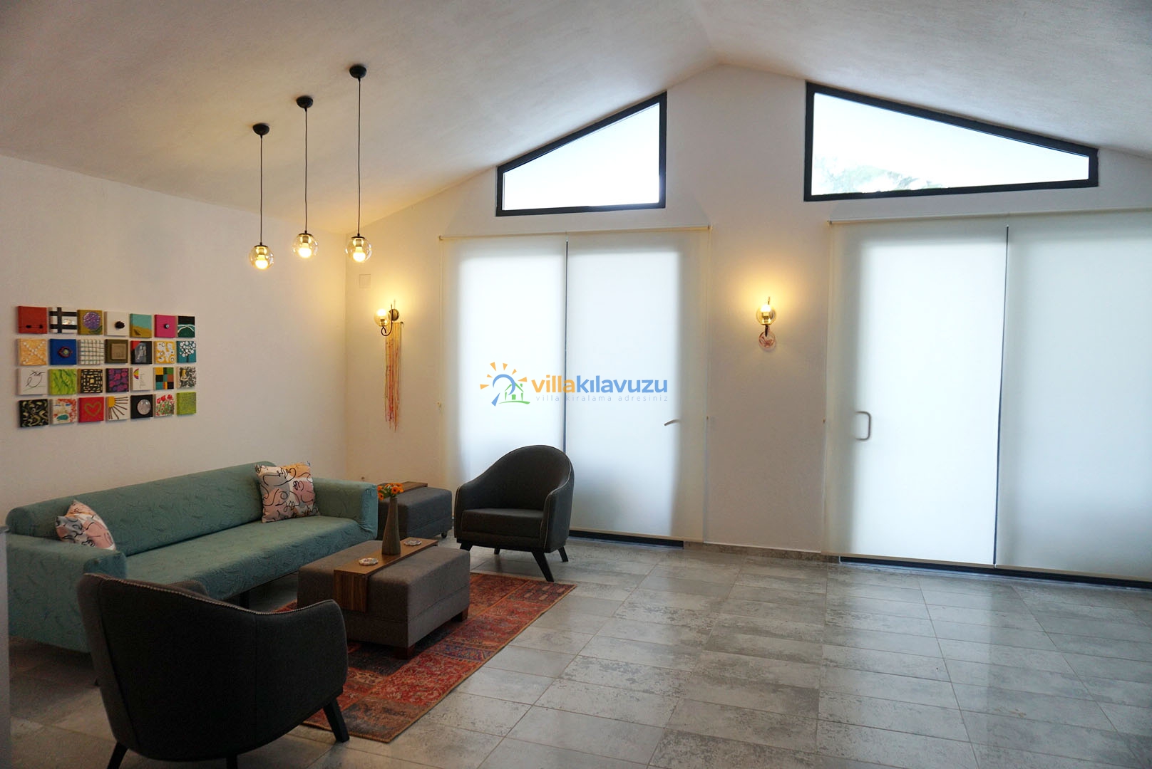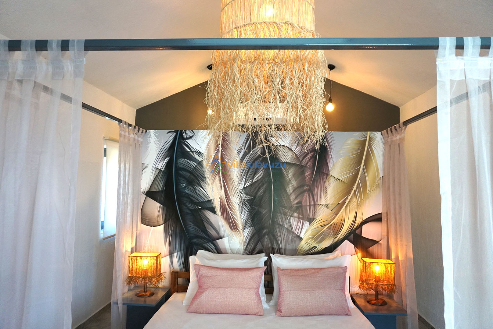 -Villamız 1 yatak odasına sahip olup 2 kişilik konaklama kapasitesine sahiptir.