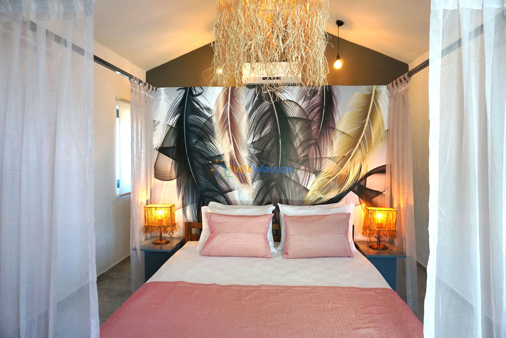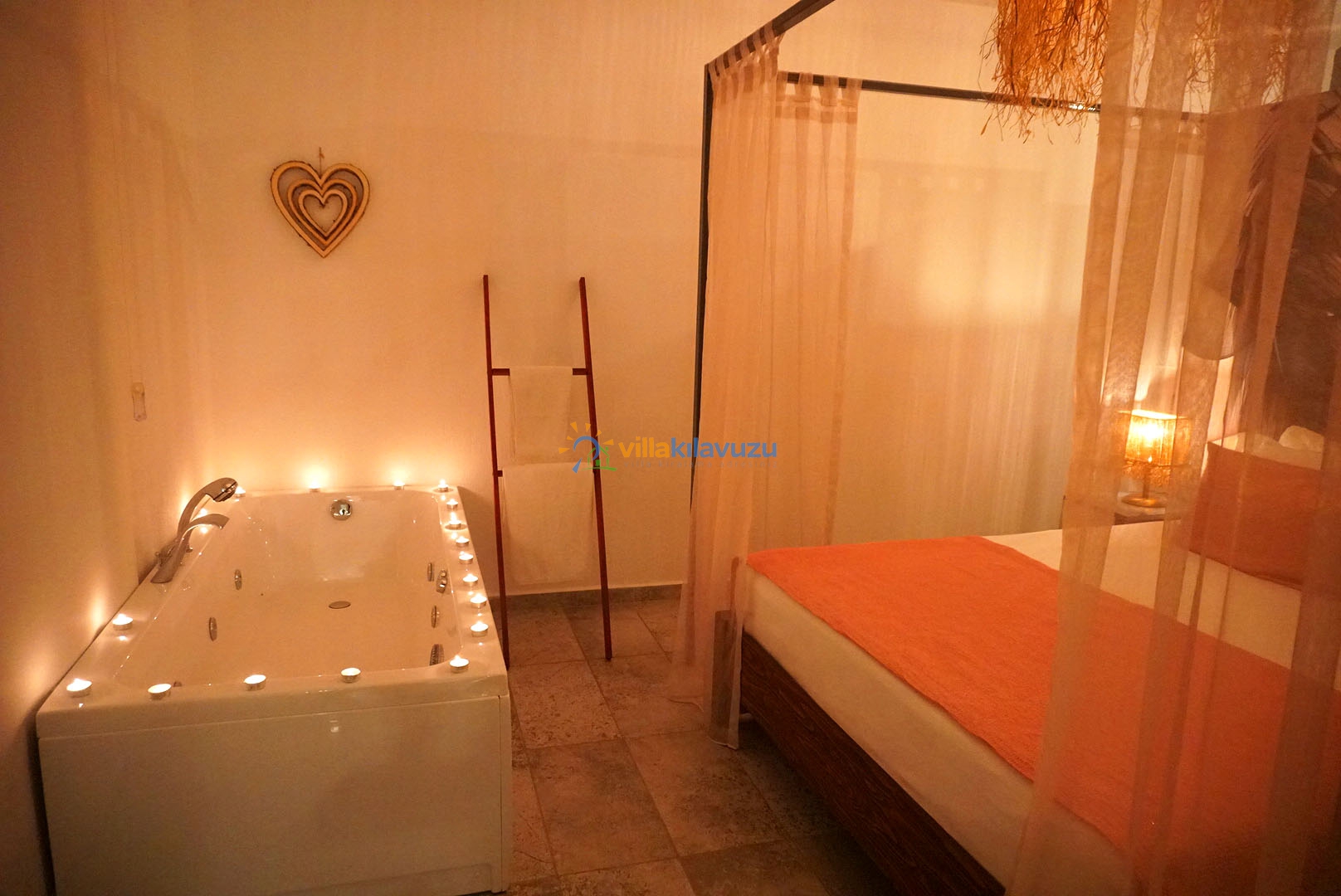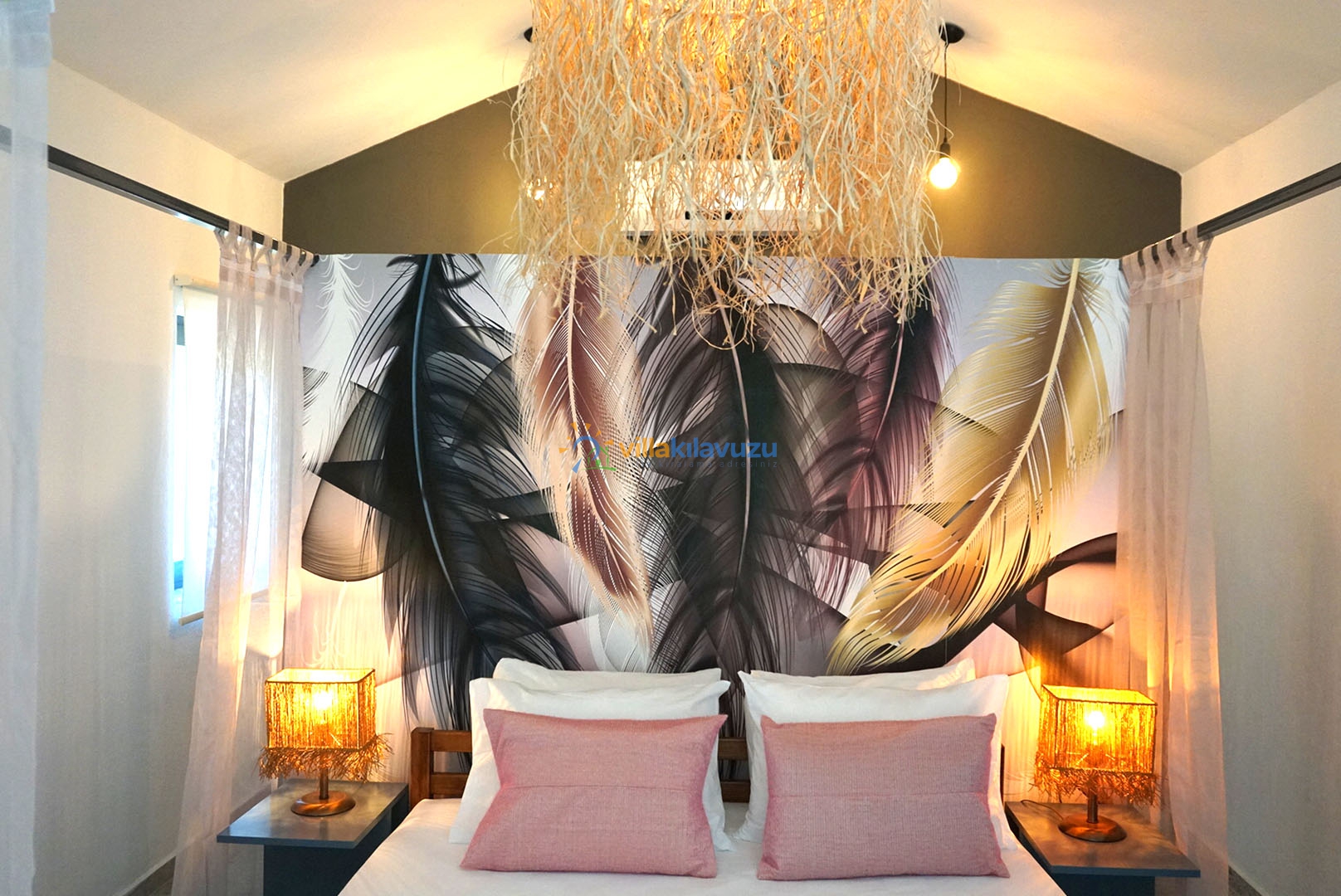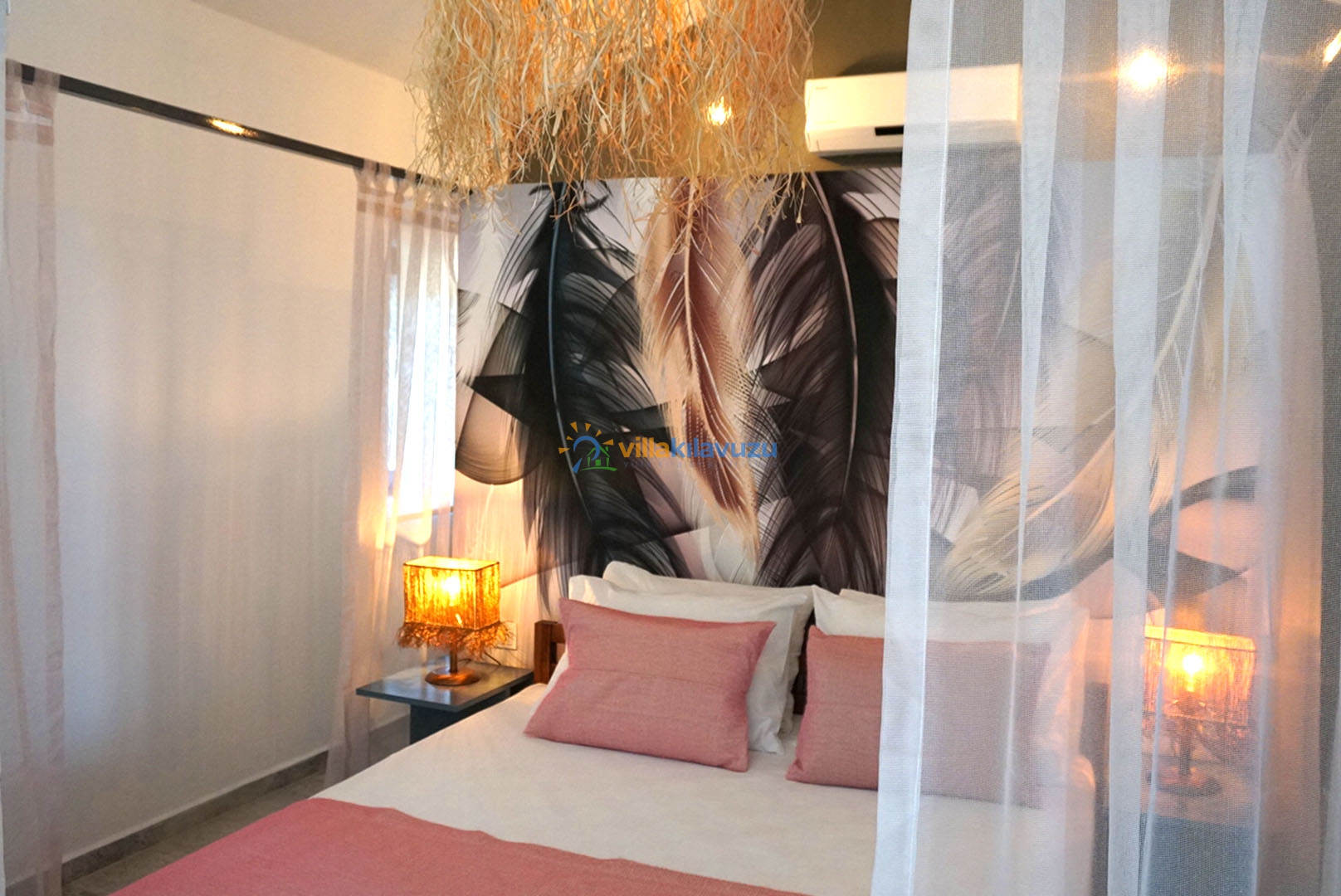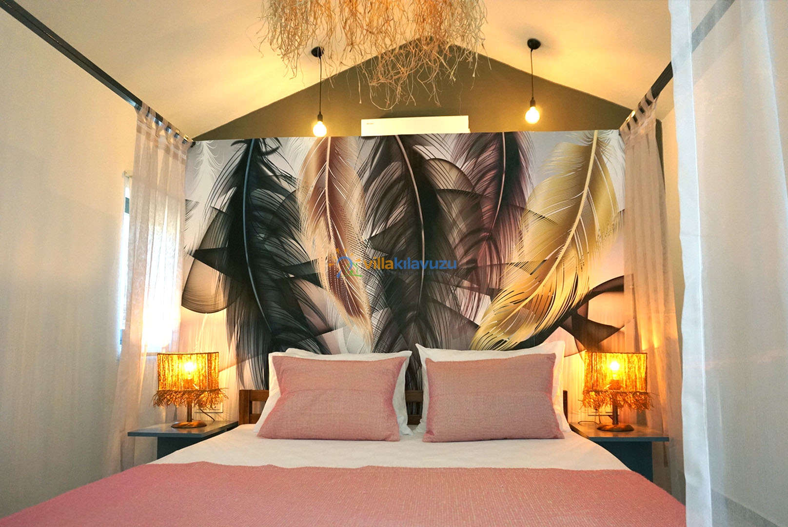 -Villamız 1 yatak odasına sahip olup 2 kişilik konaklama kapasitesine sahiptir.