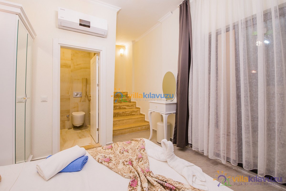 -Villamız 3 yatak odasına sahip olup 5 kişilik konaklama kapasitesine sahiptir.
