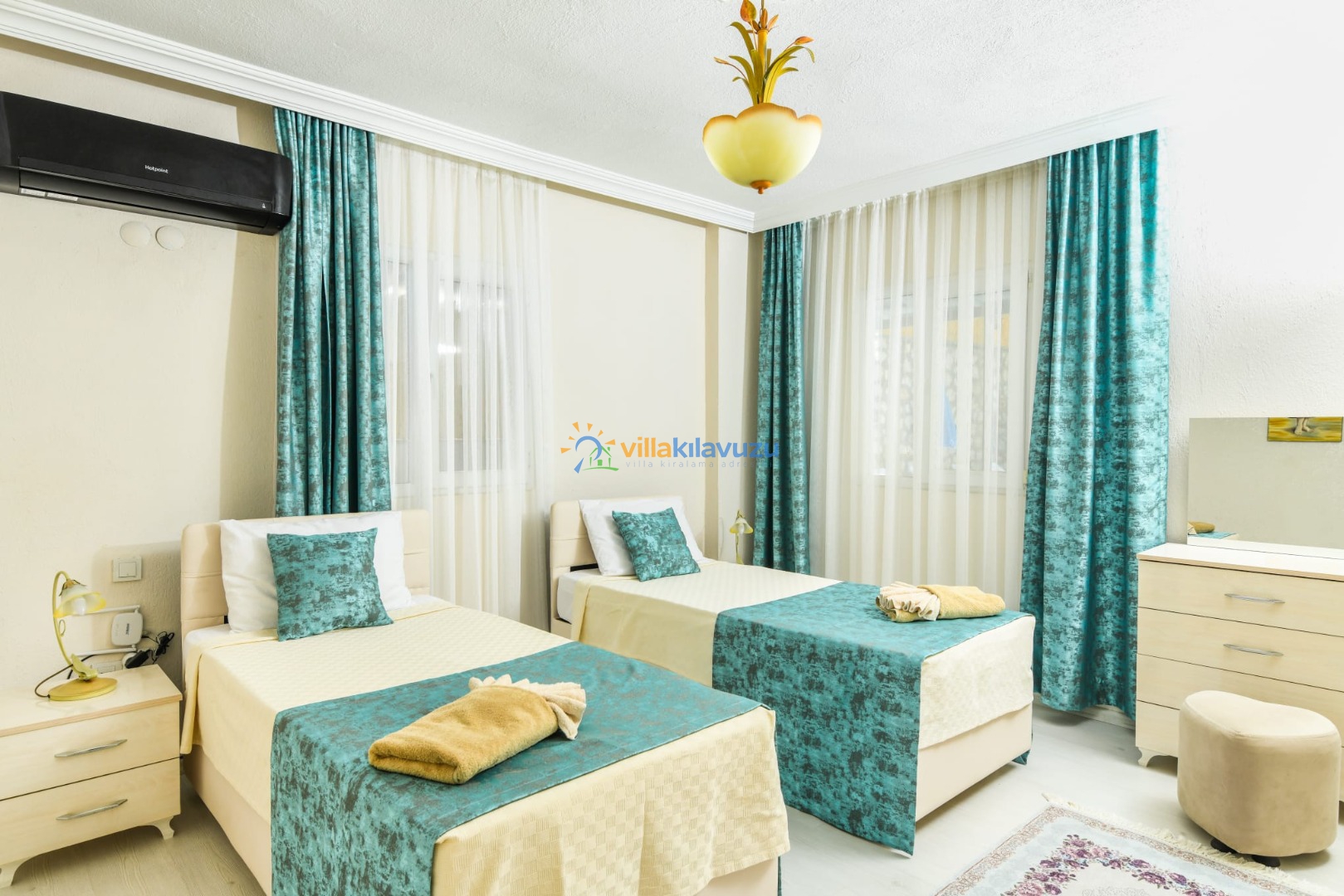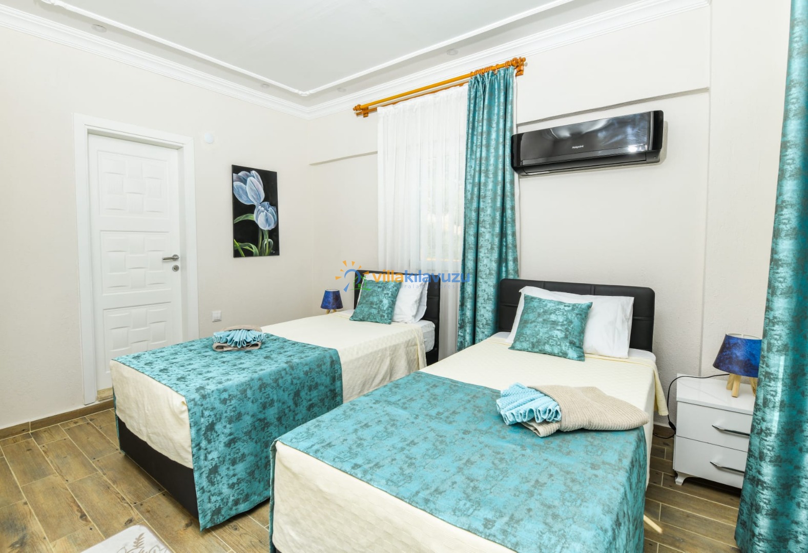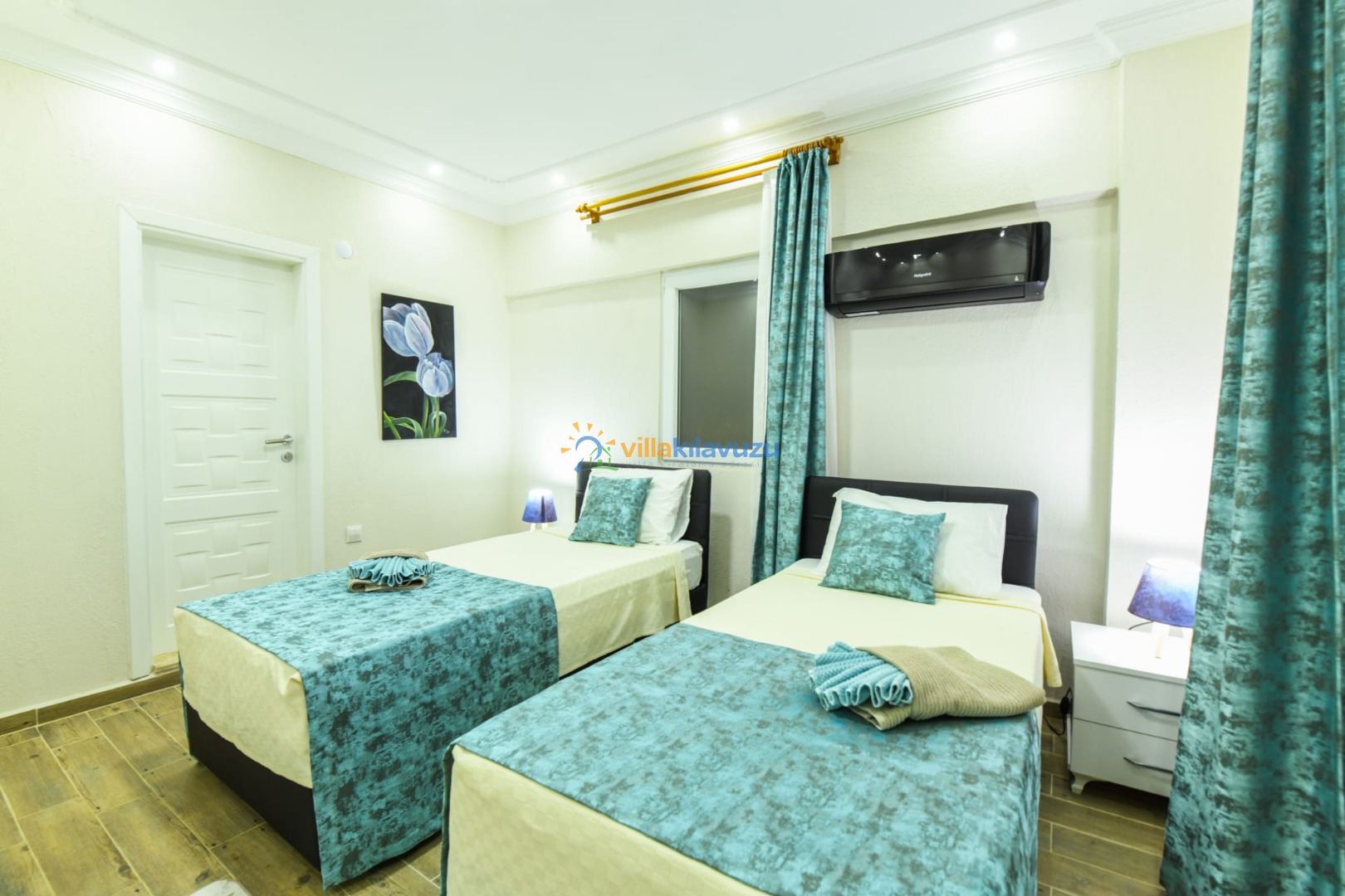 -Villamız 3 yatak odasına sahip olup 6 kişilik konaklama kapasitesine sahiptir.