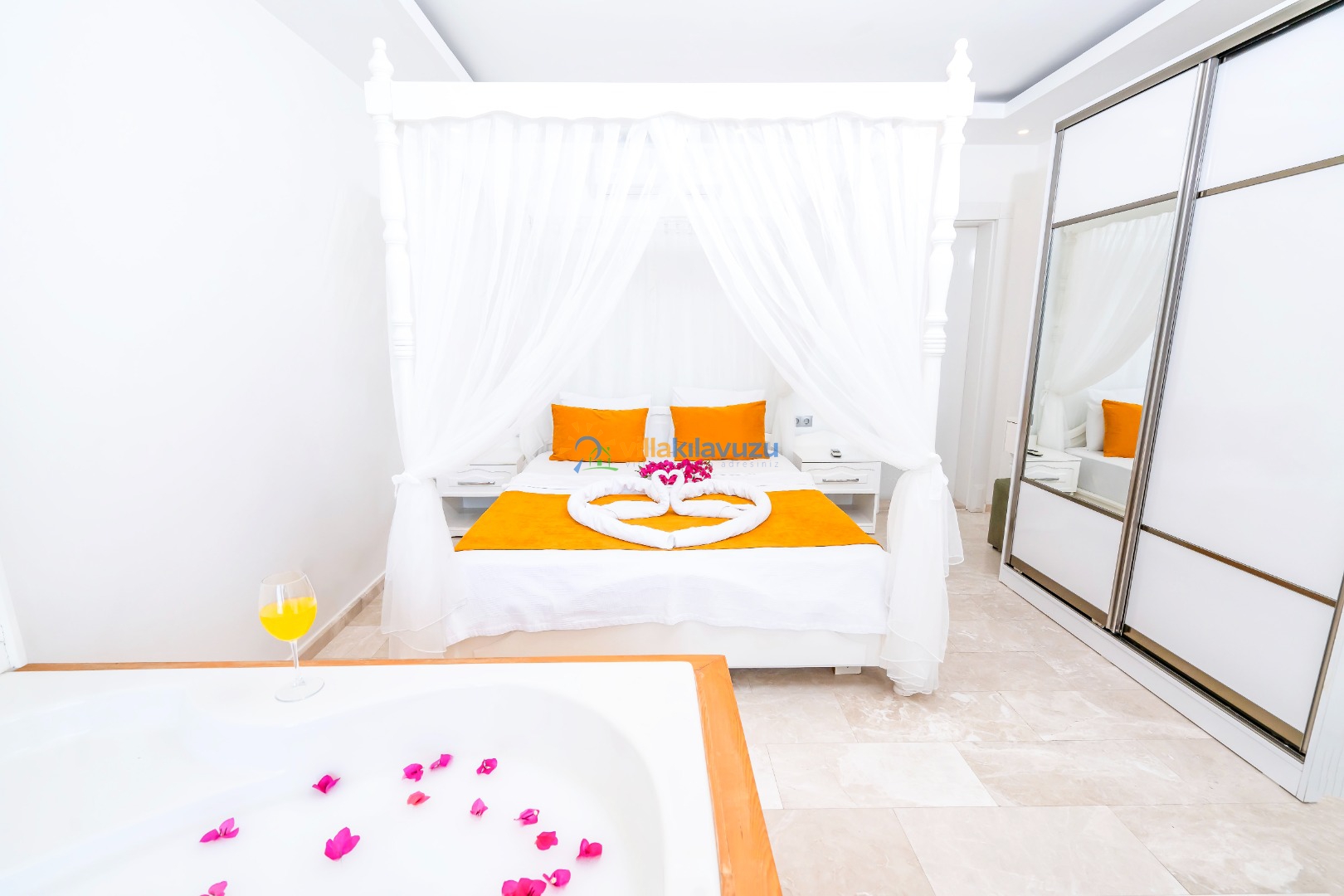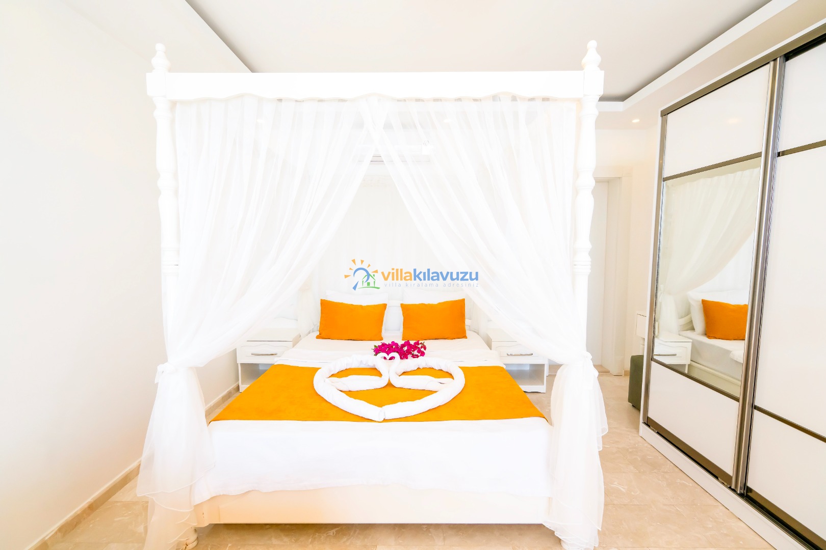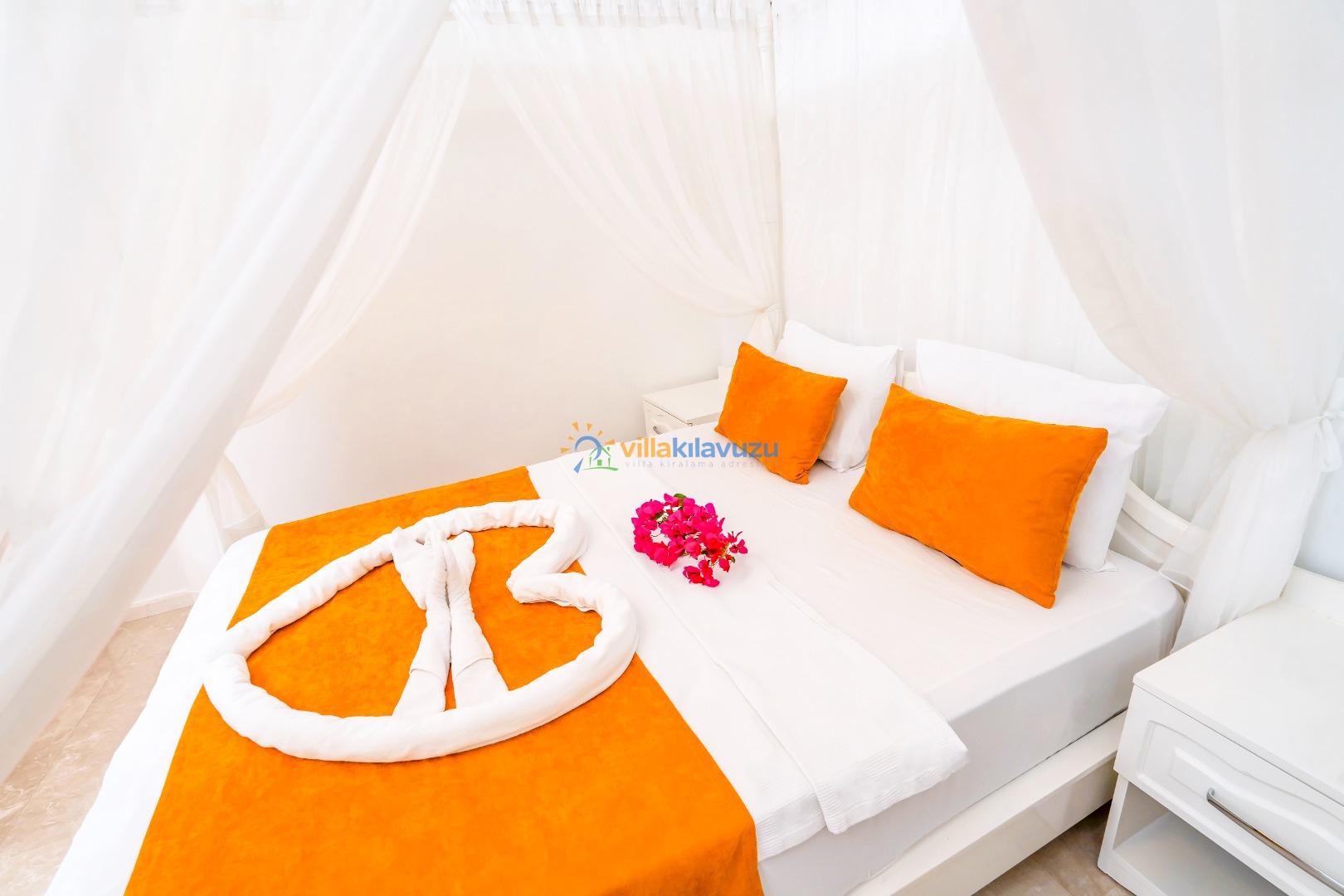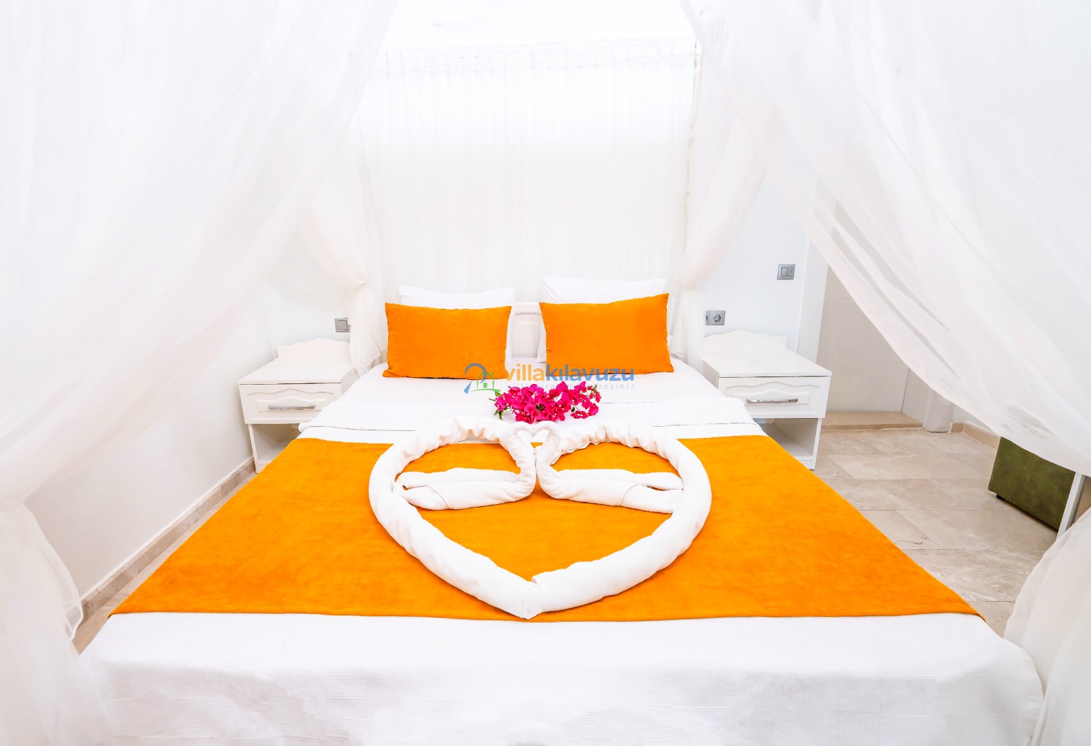 -Villamız 1 yatak odasına sahip olup 2 kişilik konaklama kapasitesine sahiptir.