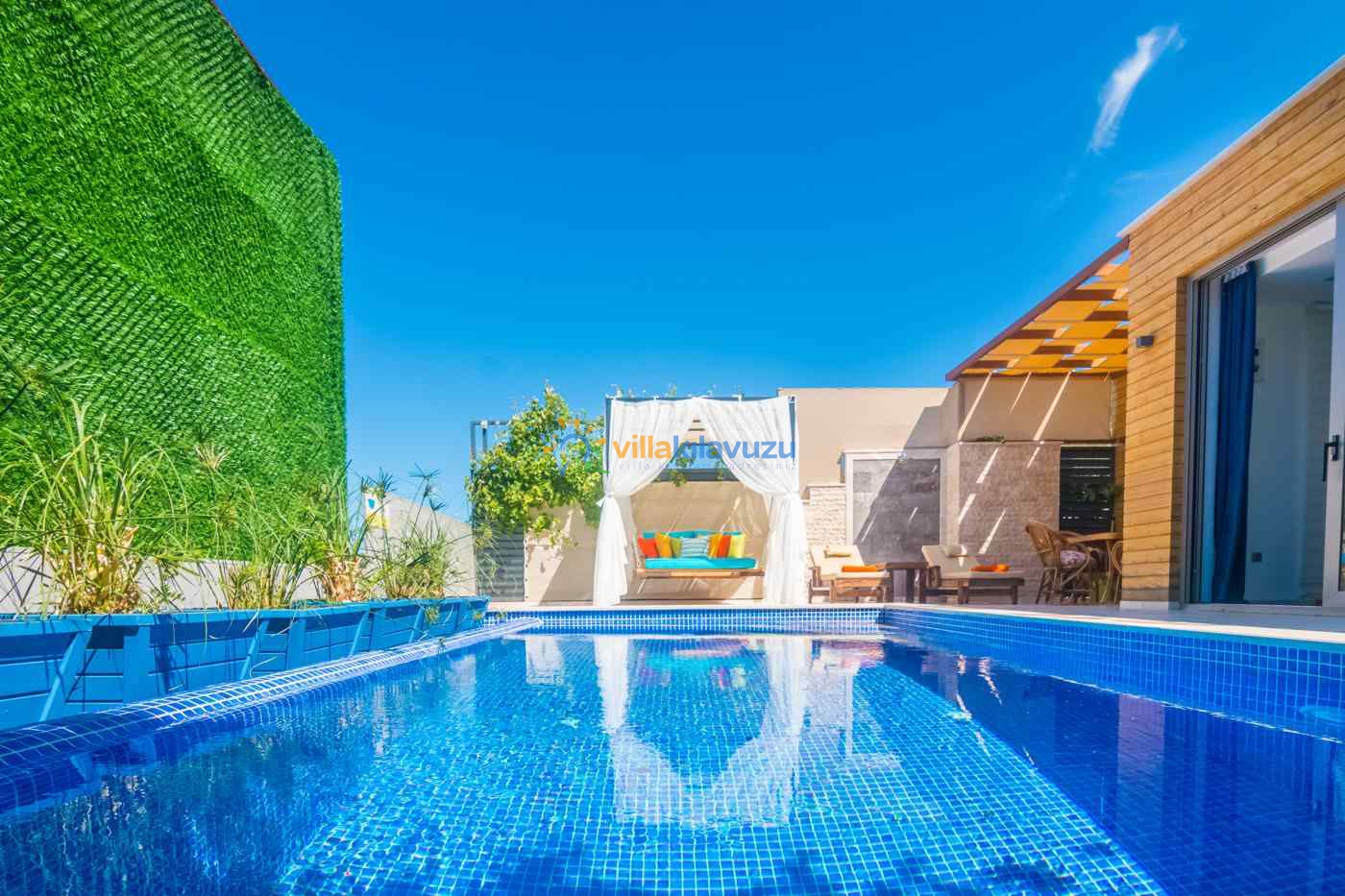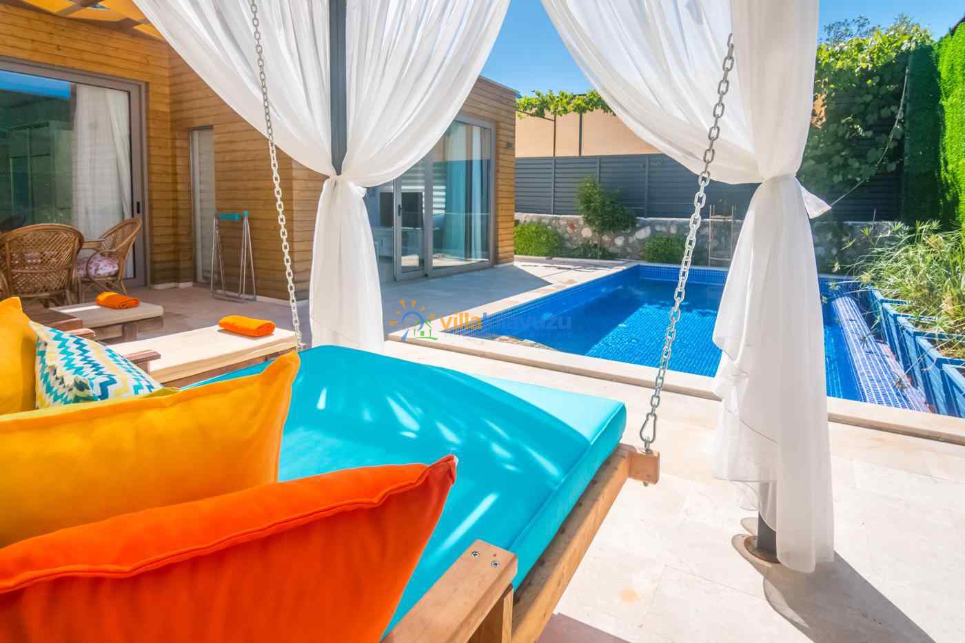 -Villamızın havuz terası korunaklıdır.