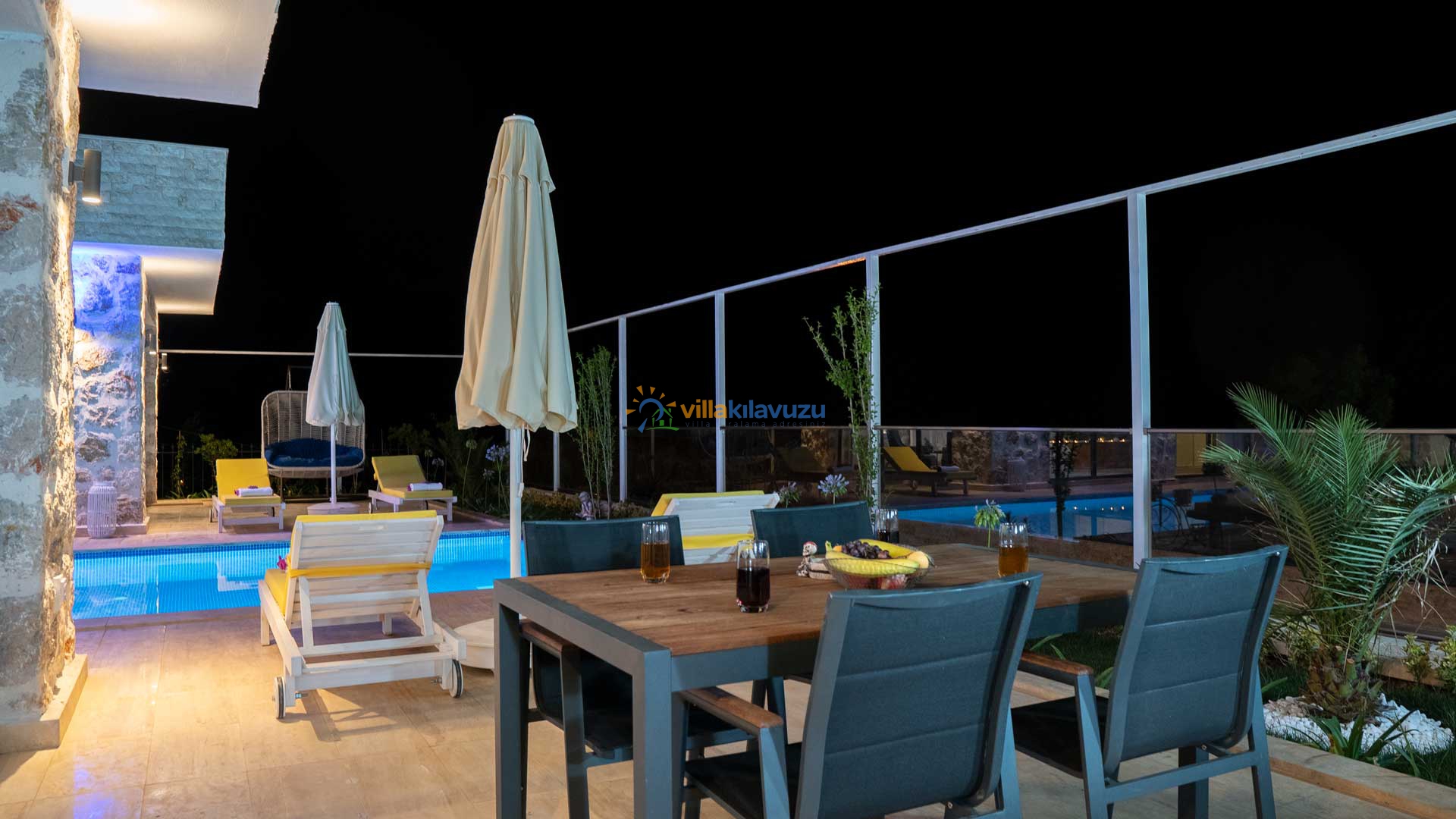 -Villamızın havuz terası korunaklıdır.