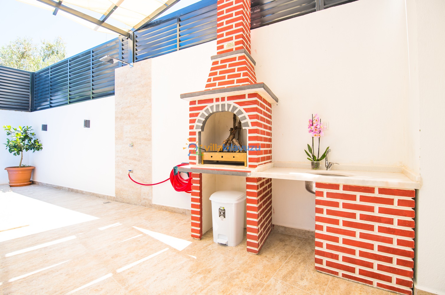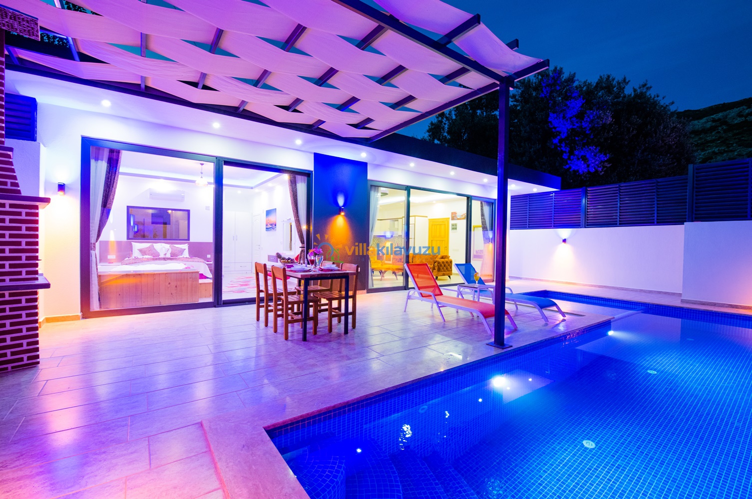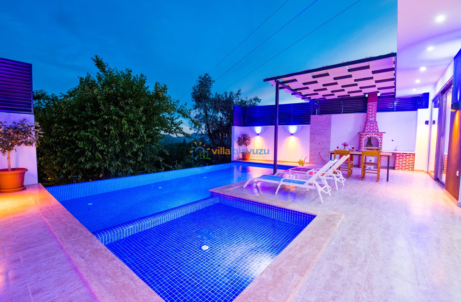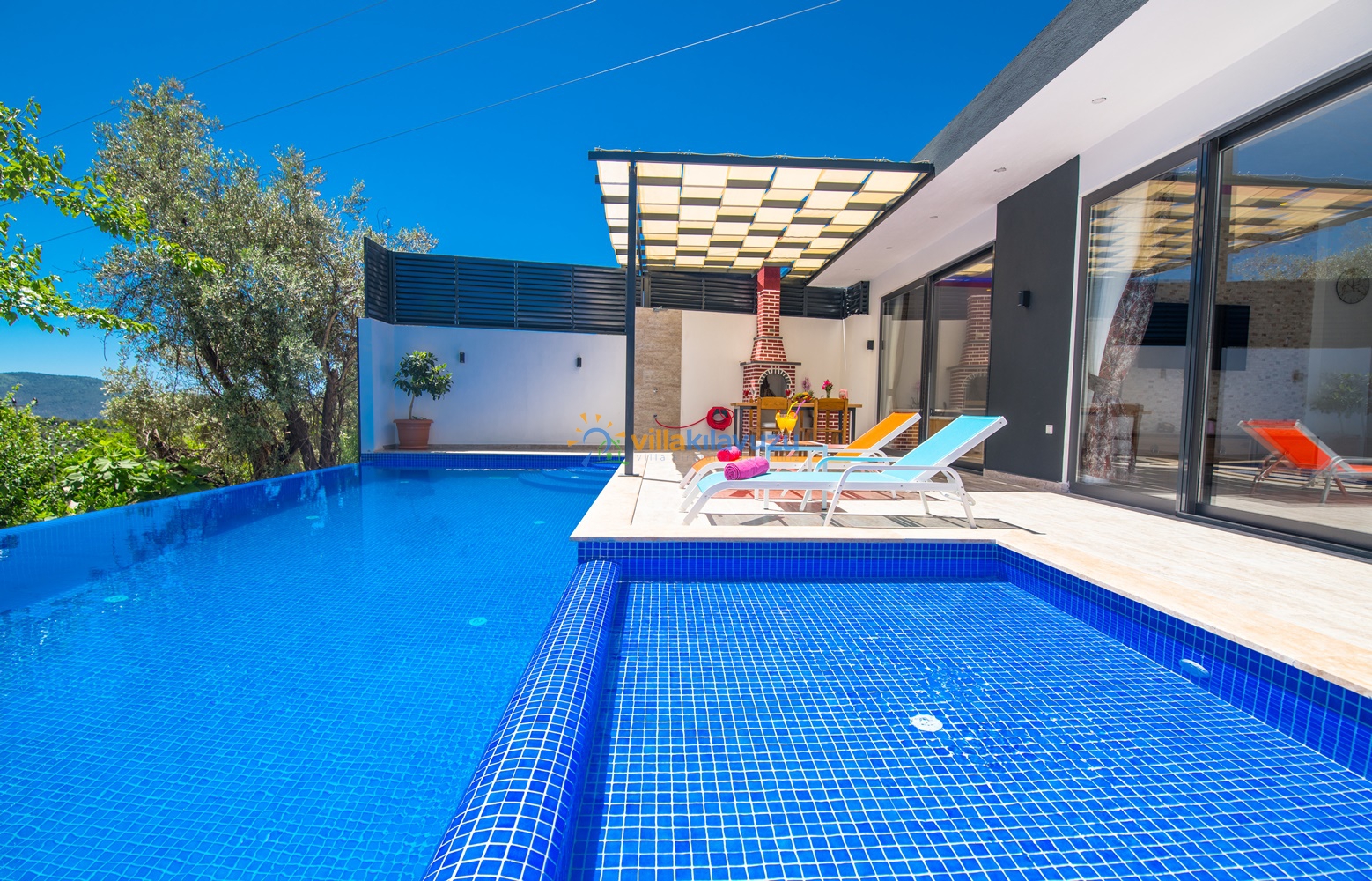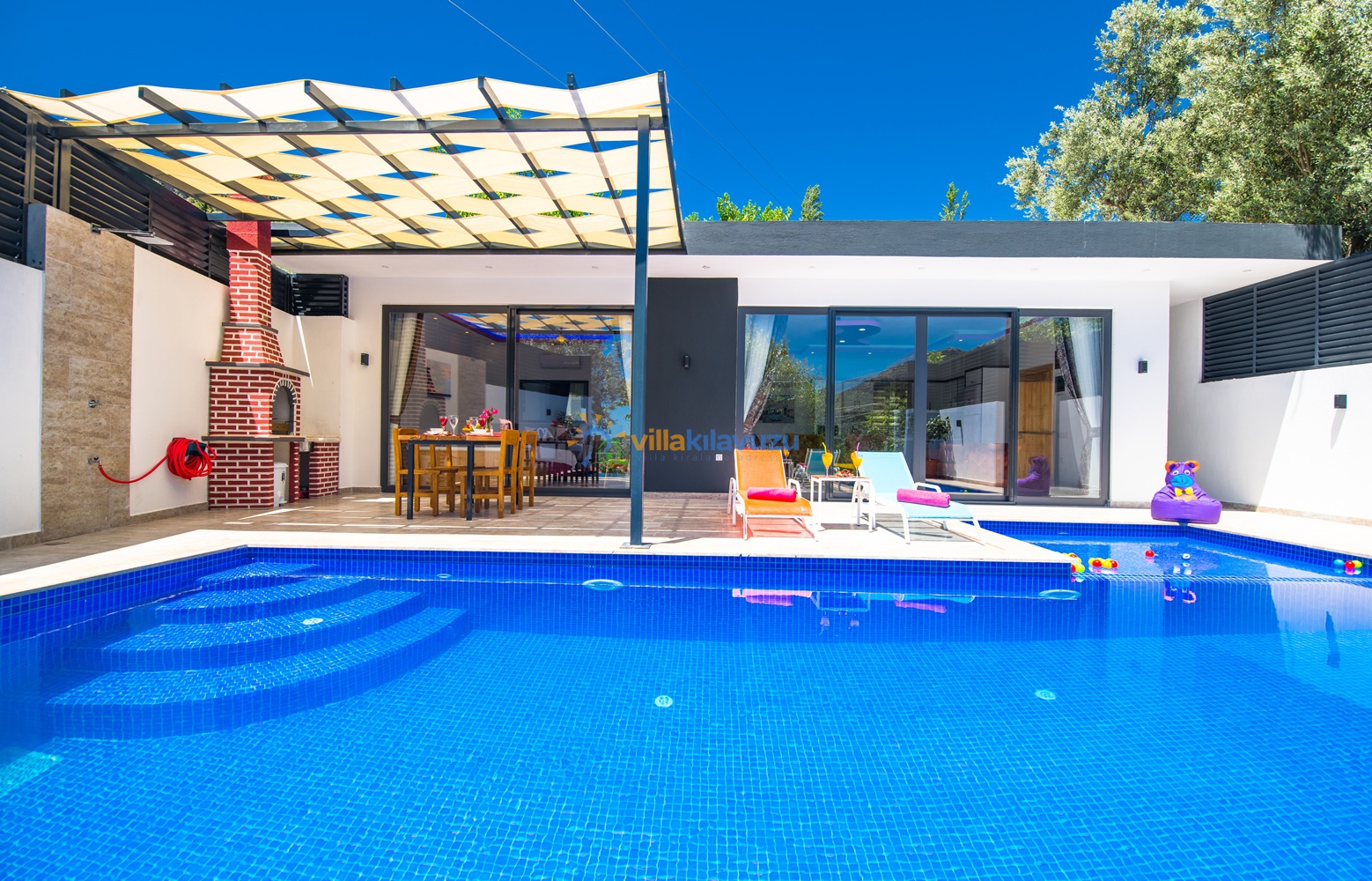 -Villamızın havuz terası korunaklıdır.