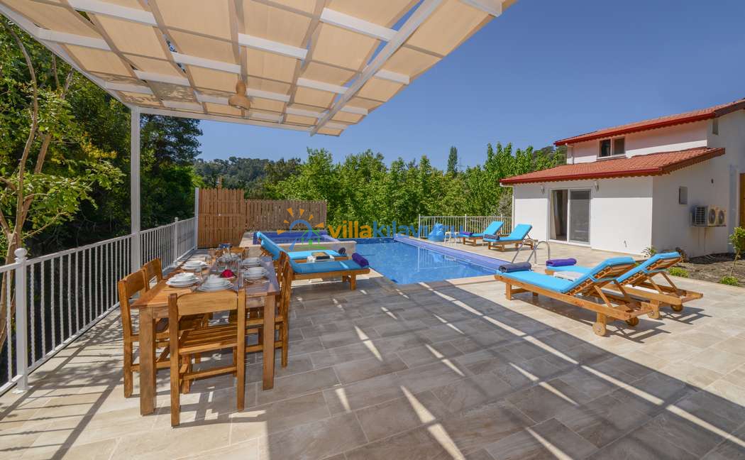 -Villamızın havuz terası korunaklıdır.
