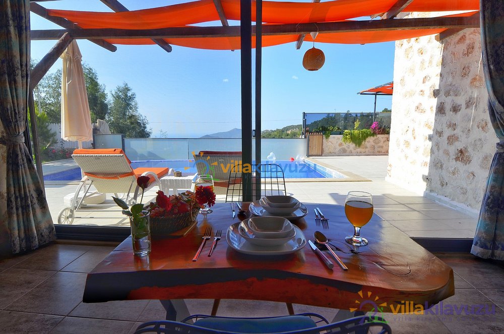 -Villamızın havuz terası korunaklıdır.