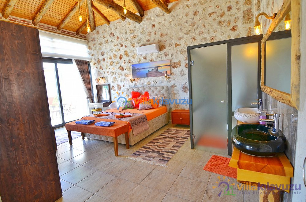 -Villamız 1 yatak odasına sahip olup 2 kişilik konaklama kapasitesine sahiptir.