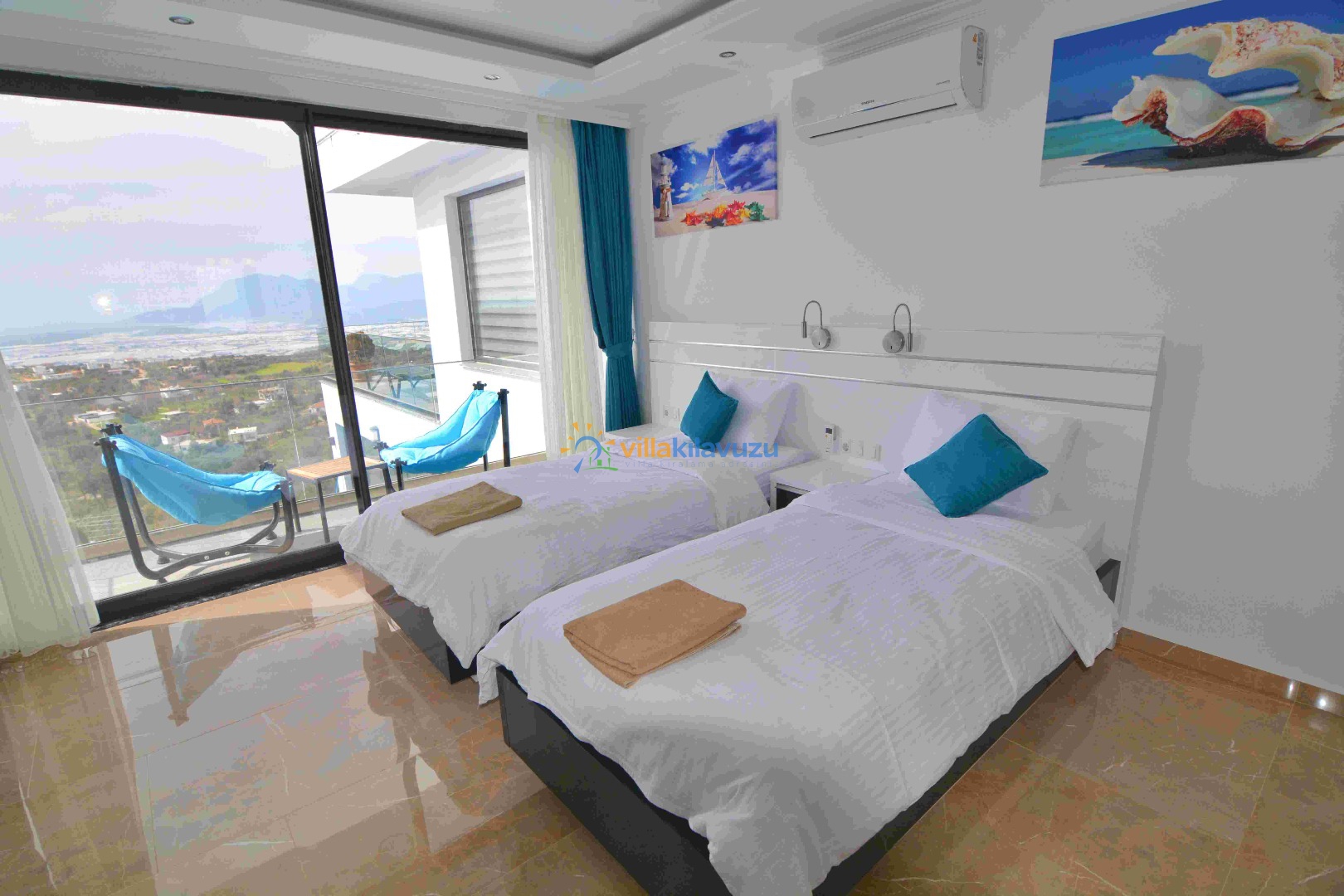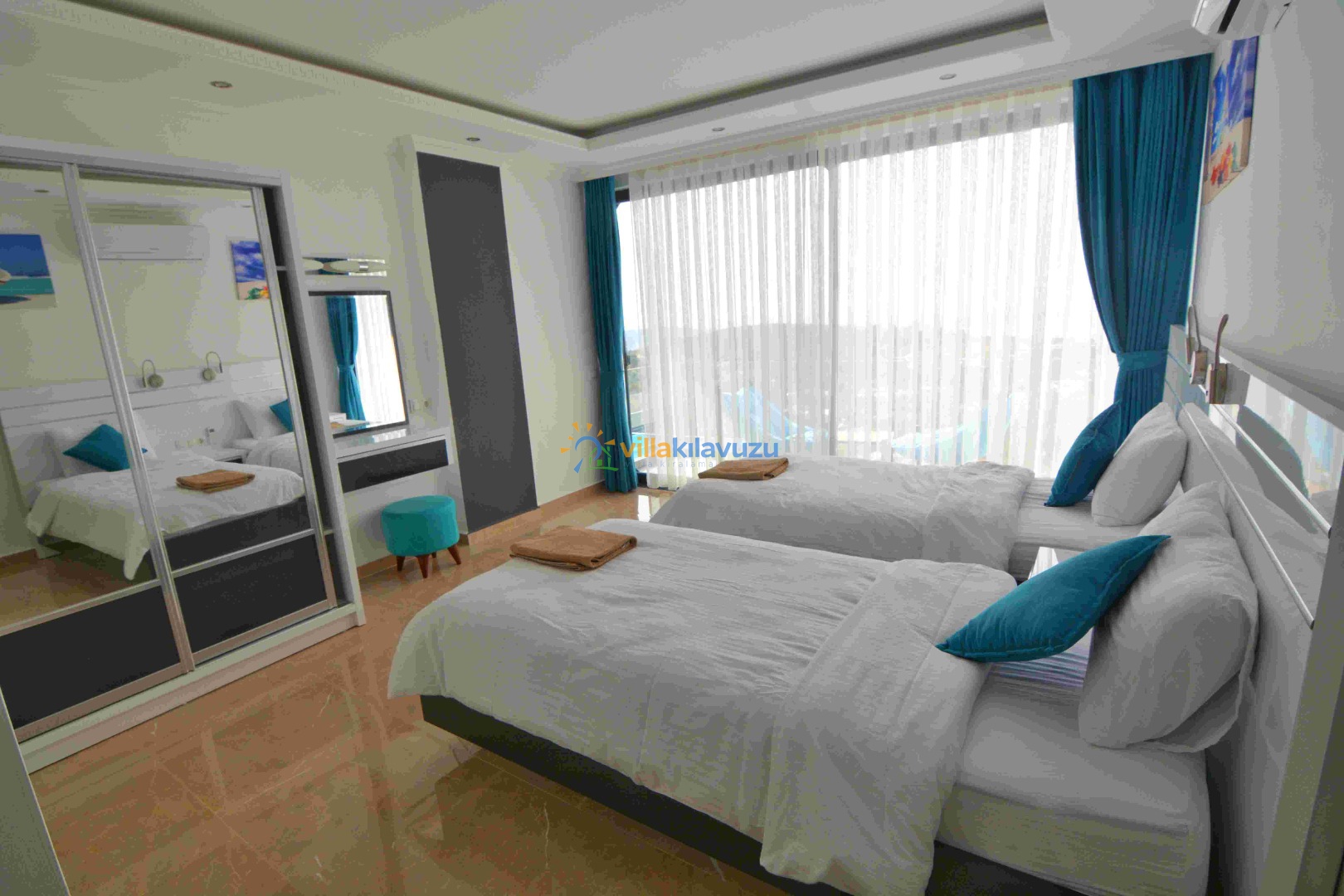 -Villamız 3 yatak odasına sahip olup 6 kişilik konaklama kapasitesine sahiptir.