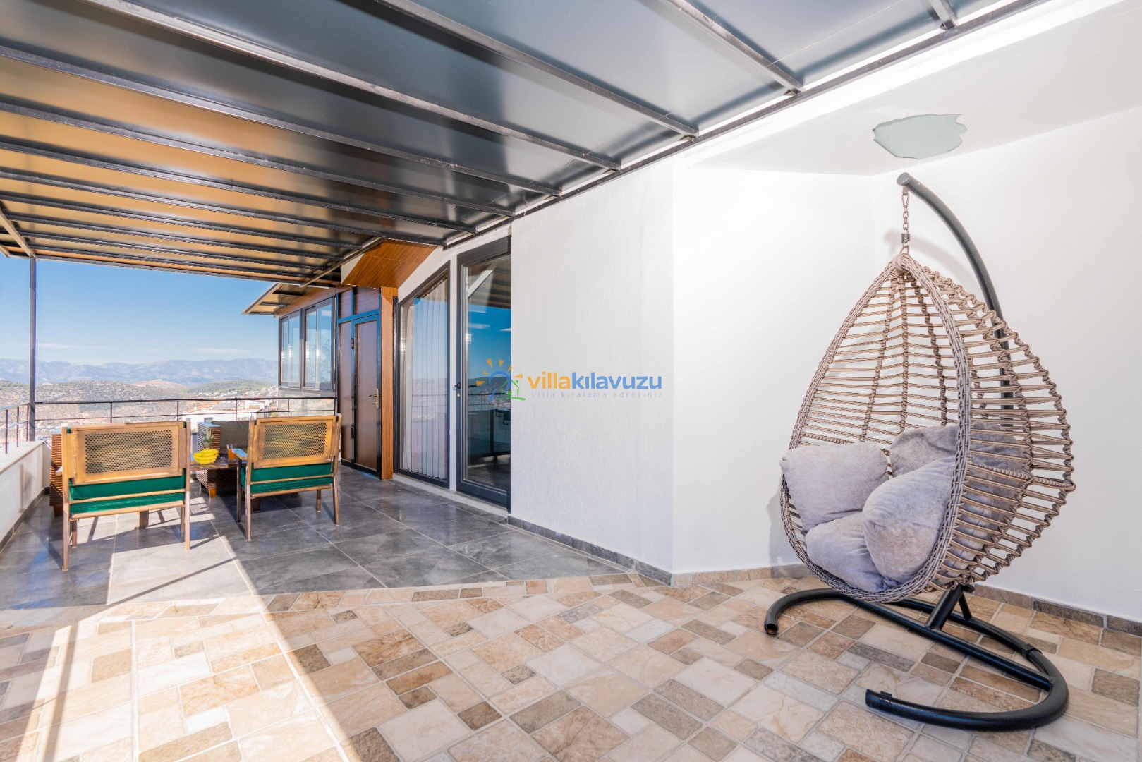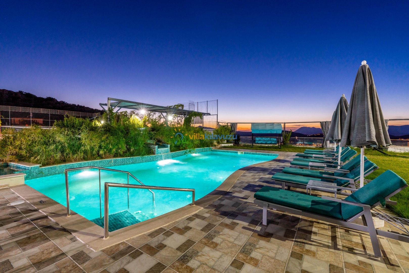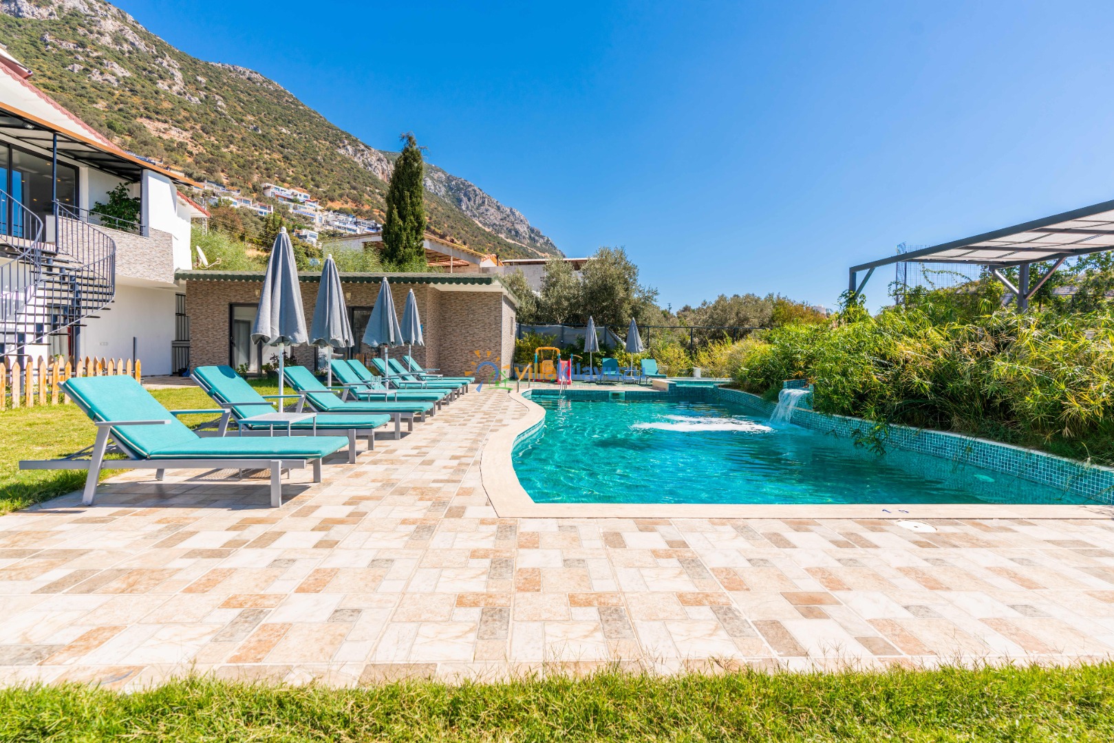 -Villamızın havuz terası korunaklıdır.