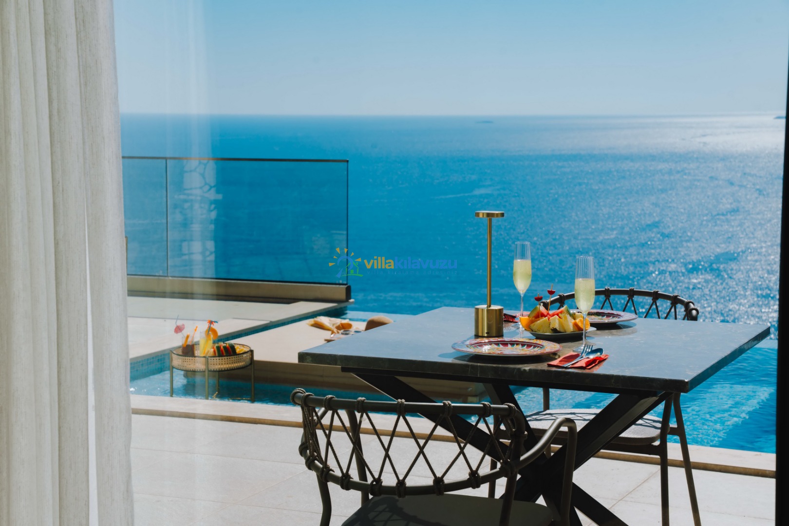 -Villamızın havuz terası korunaklıdır.