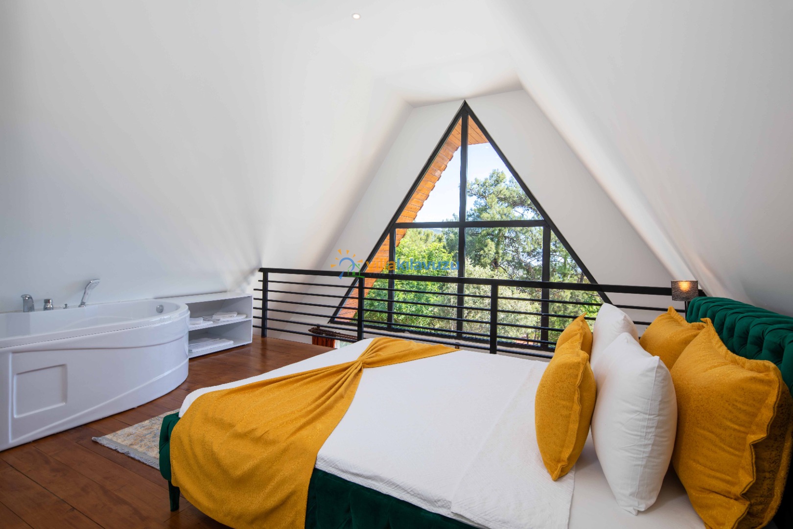 -Villamız 1 yatak odasına sahip olup 2 kişilik konaklama kapasitesine sahiptir.