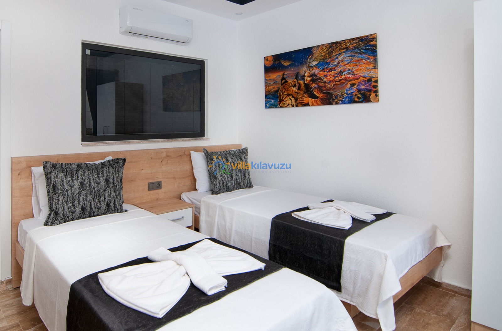 -Villamız 2 yatak odasına sahip olup 4 kişilik konaklama kapasitesine sahiptir.