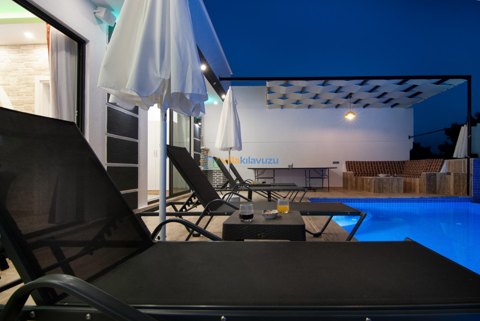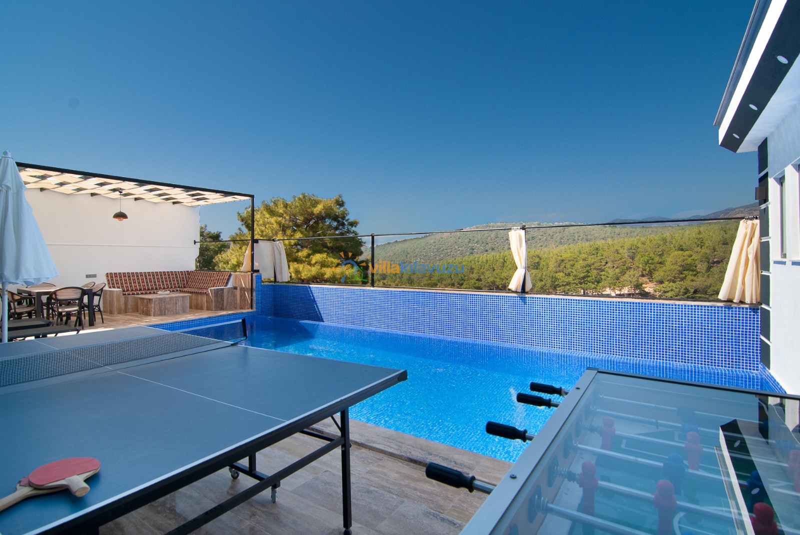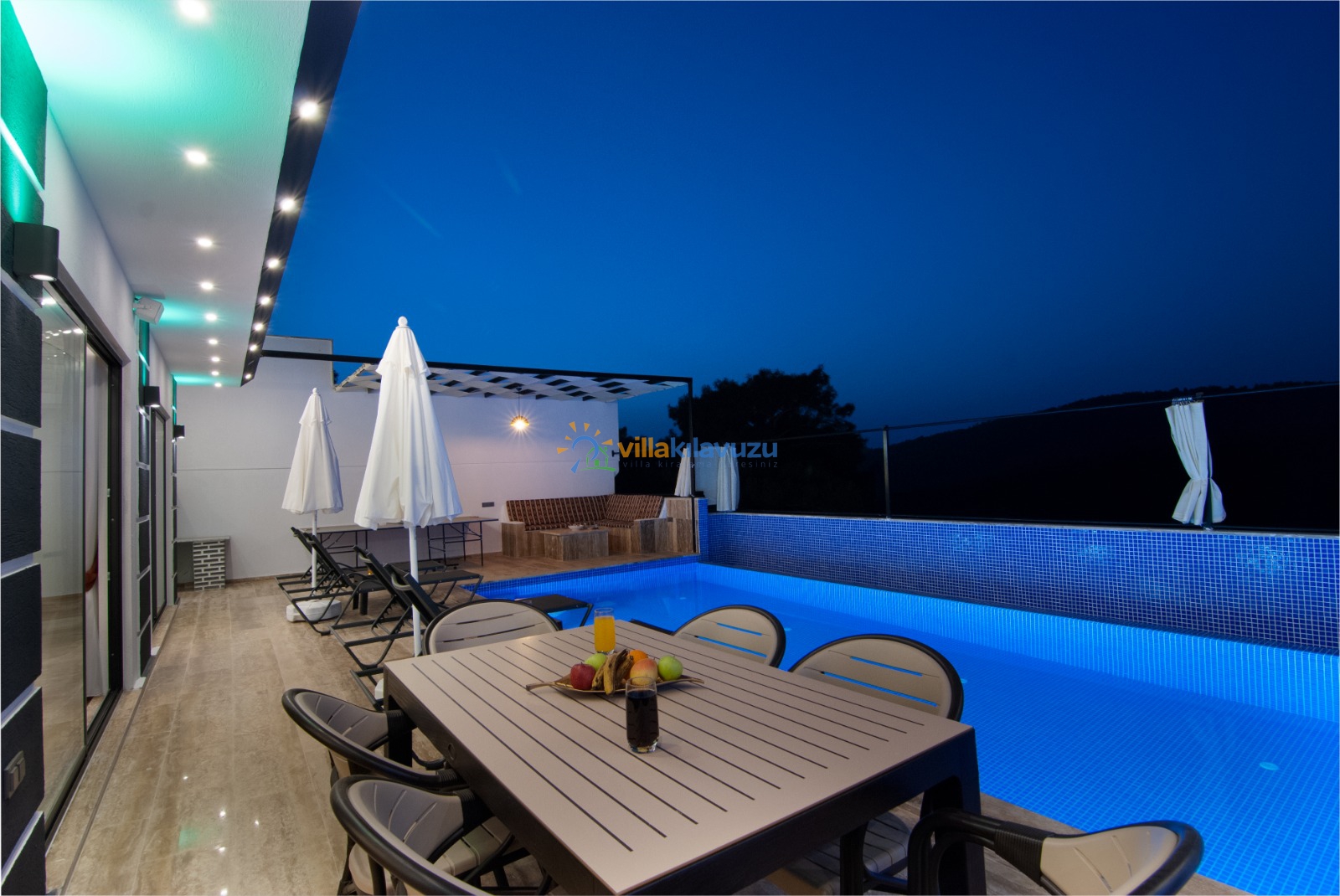-Villamızın havuz terası korunaklıdır.