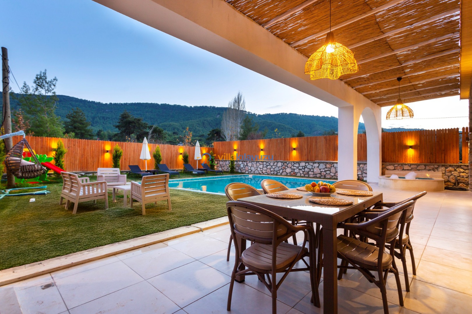 -Villamızın havuz terası korunaklıdır.
