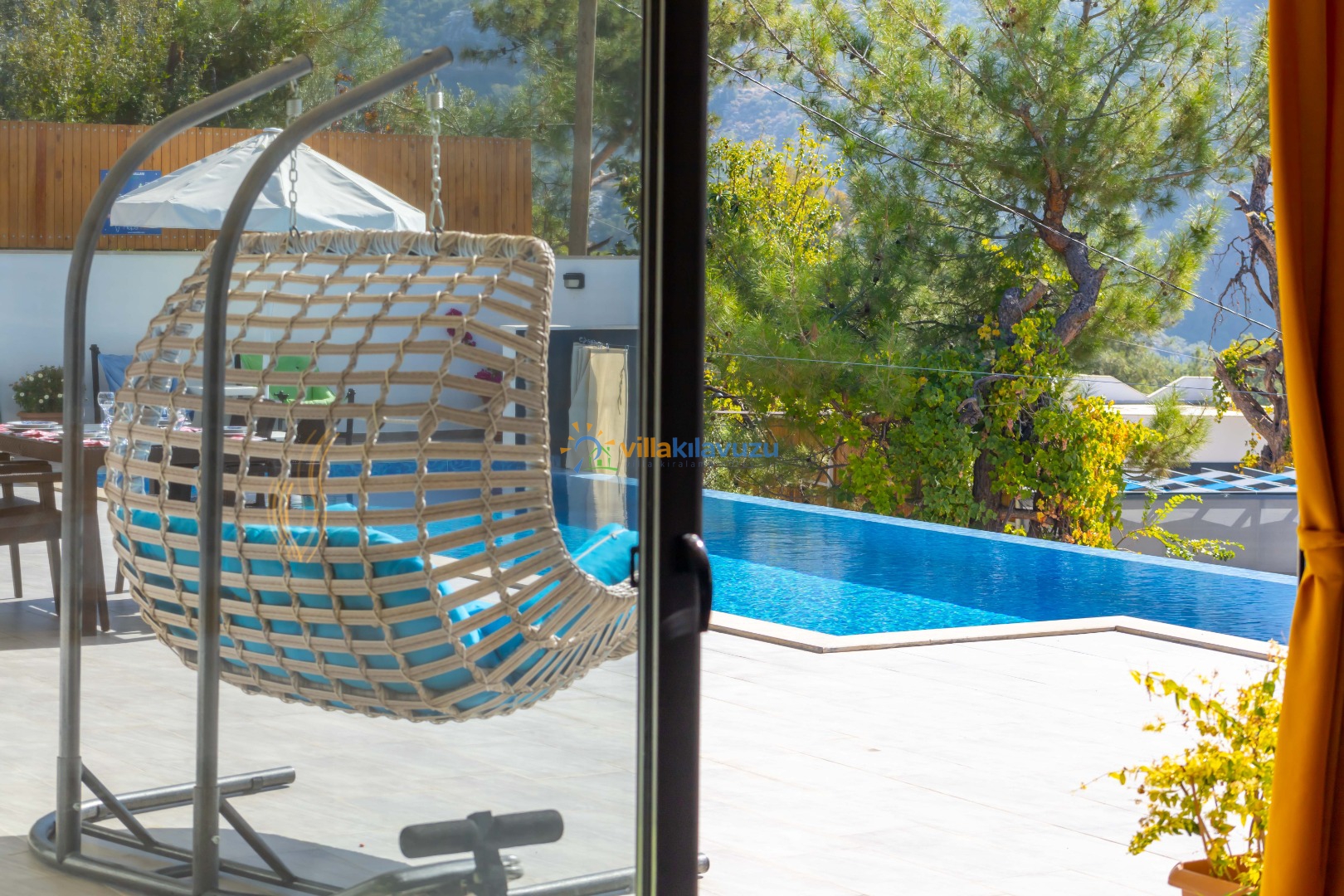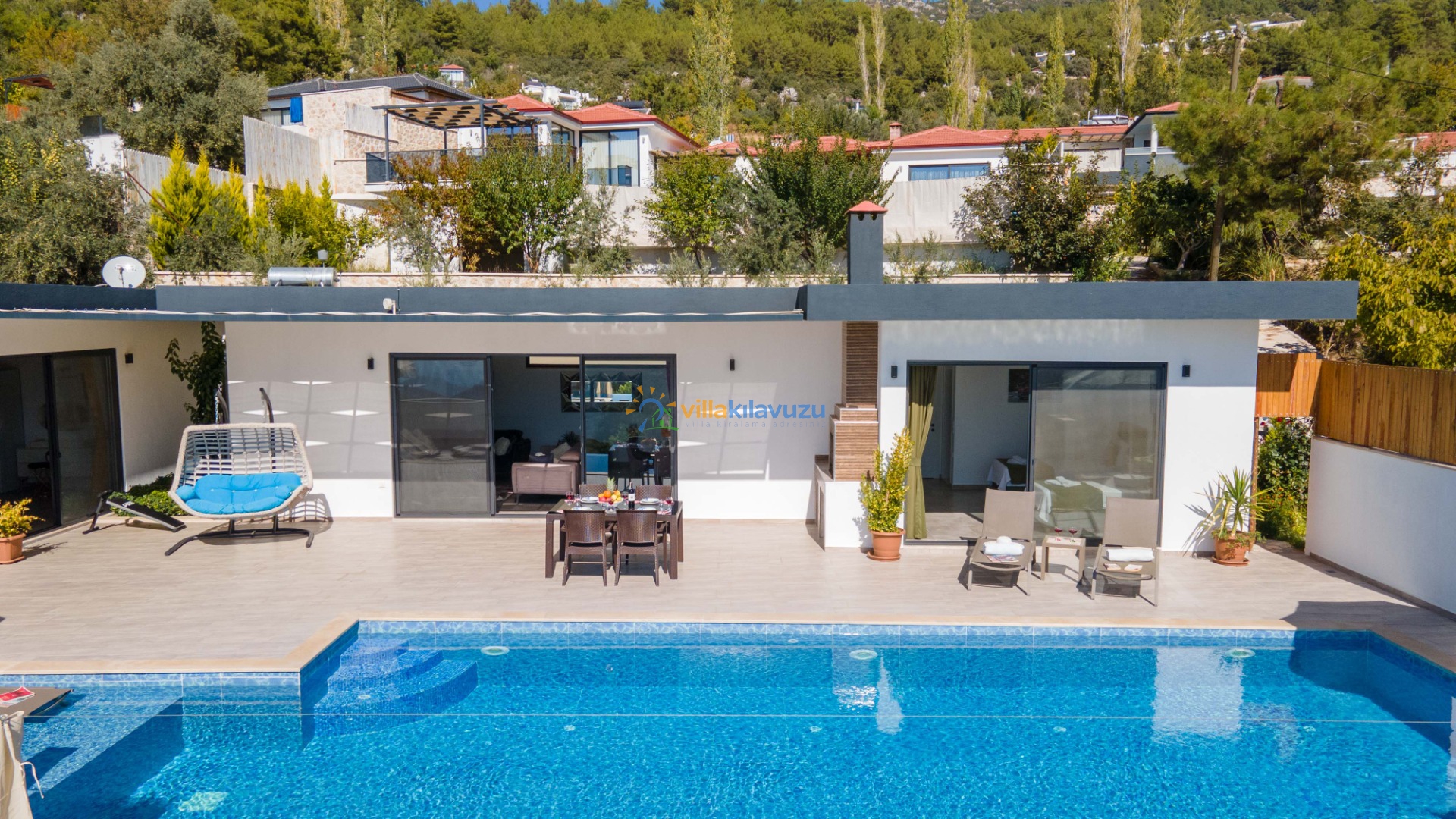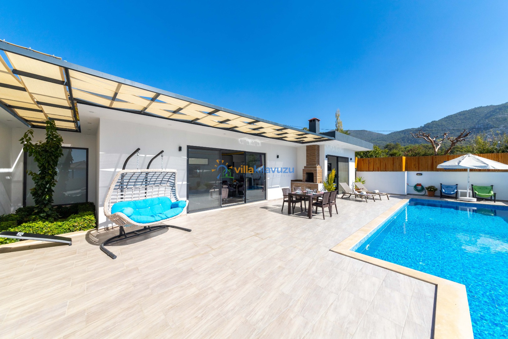 -Villamızın havuz terası korunaklıdır.