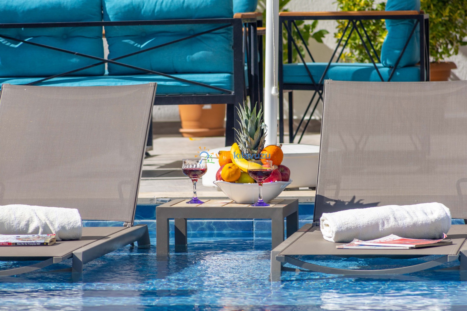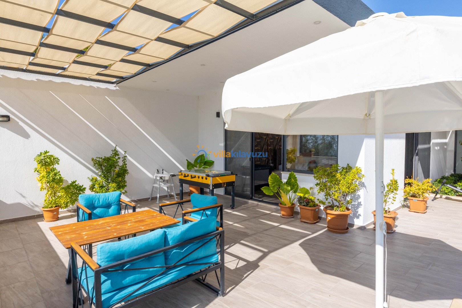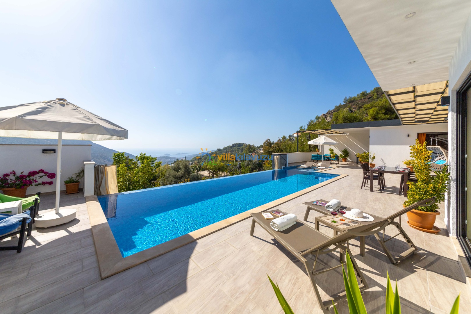 -Villamızın havuz terası korunaklıdır.