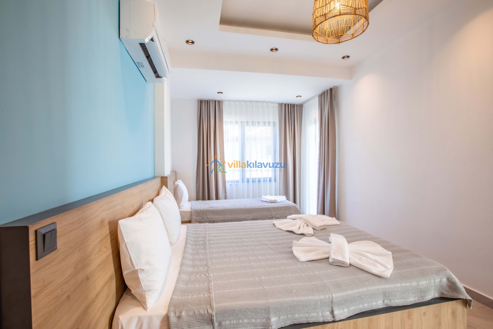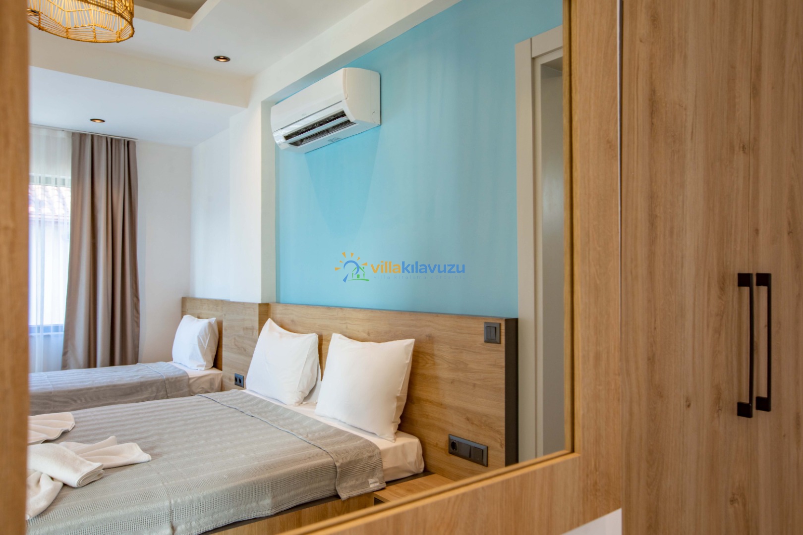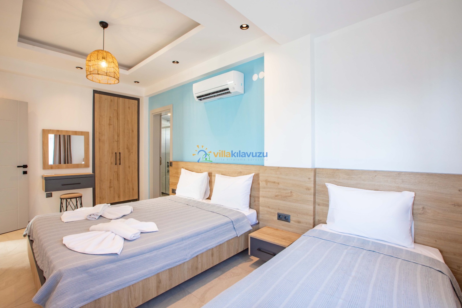 -Villamız 2 yatak odasına sahip olup 5 kişilik konaklama kapasitesine sahiptir.